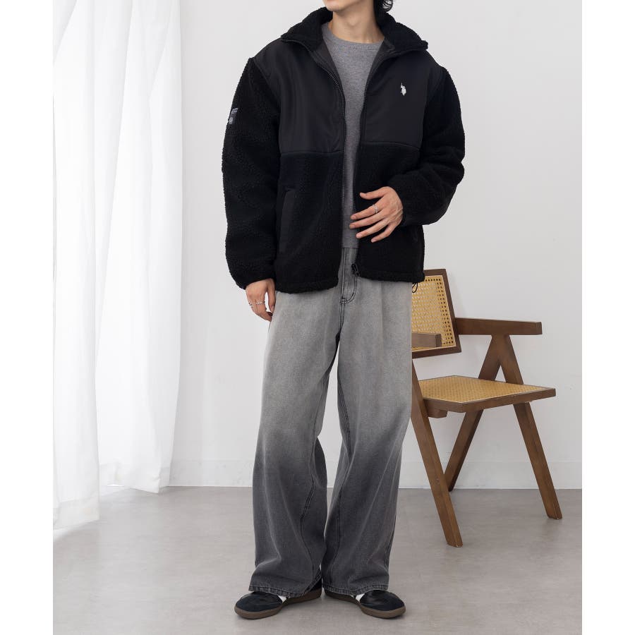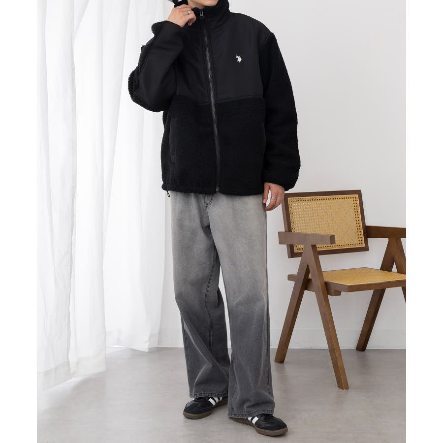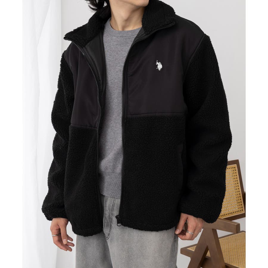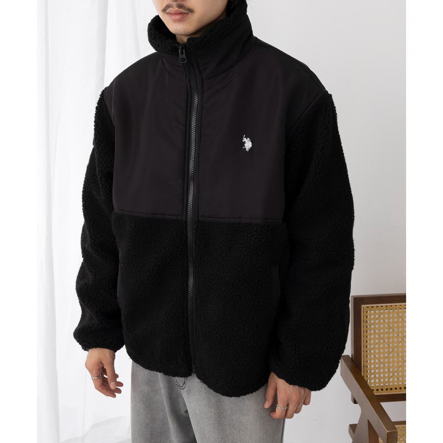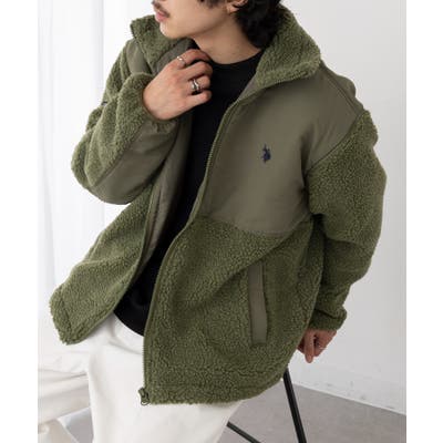 ワンポイントロゴ ポニー刺繍 ボアジャケット