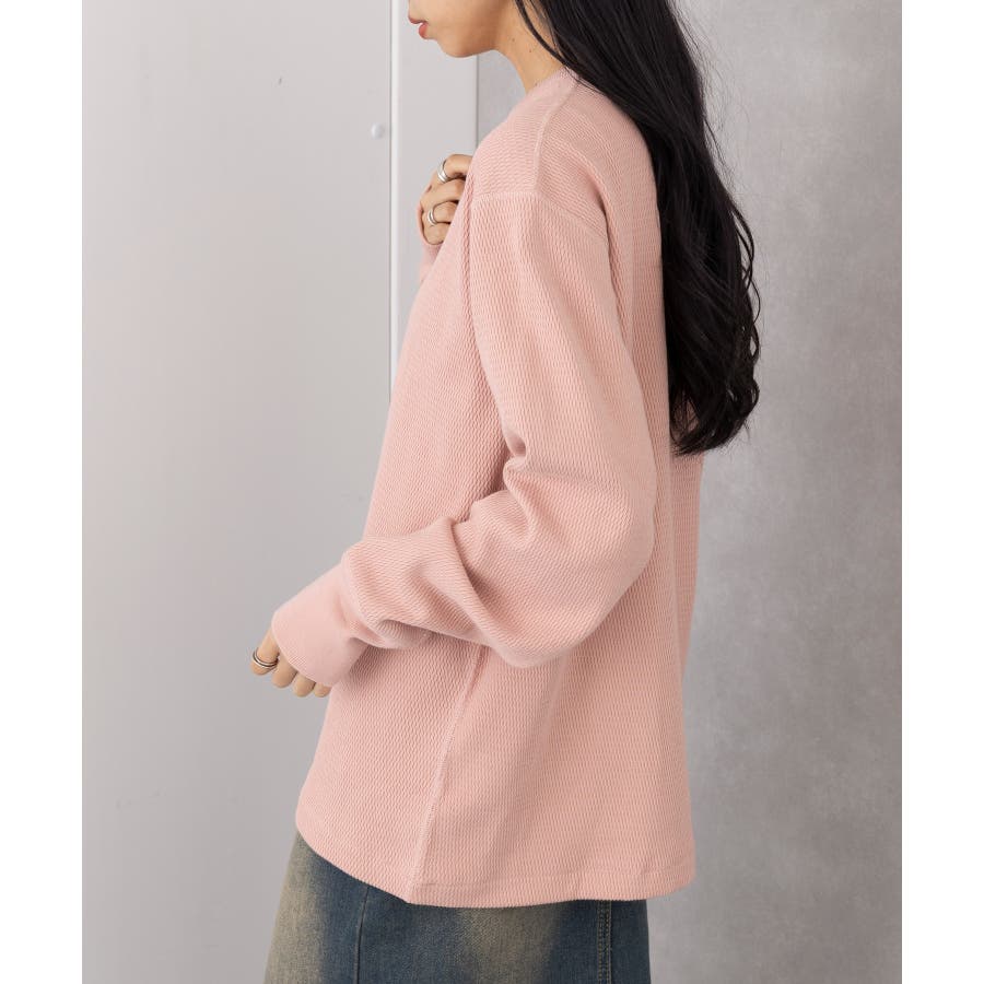 程よくゆとりがあり、インナーとしてもトップスとしても着回しできるサイズ感です。