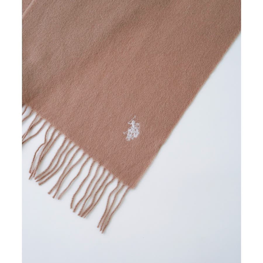 裾のフリンジがクラシックな雰囲気をプラス。一端には、ブランドの象徴であるポニーロゴの刺繍が施されており、さりげないアクセントと上品さを添えます。