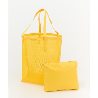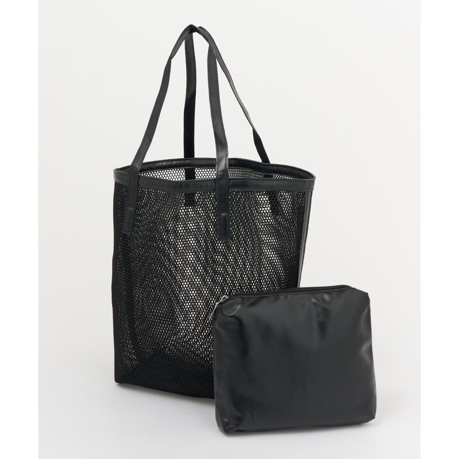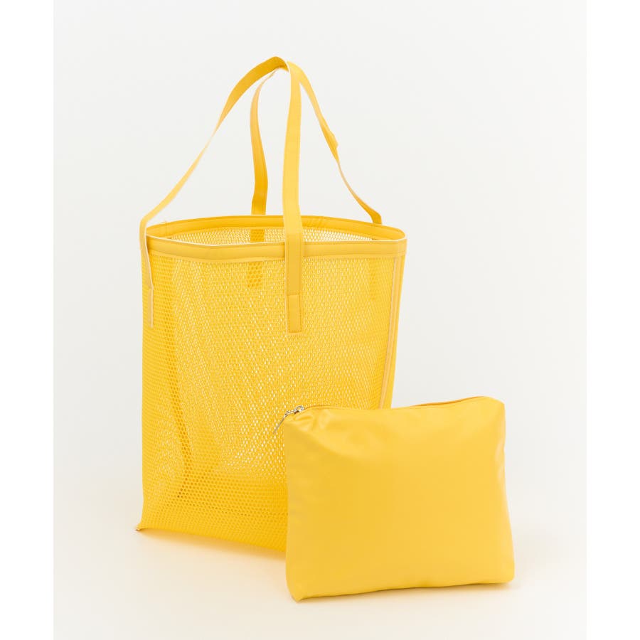 同系色のポーチがセットになったメッシュトートバッグ。