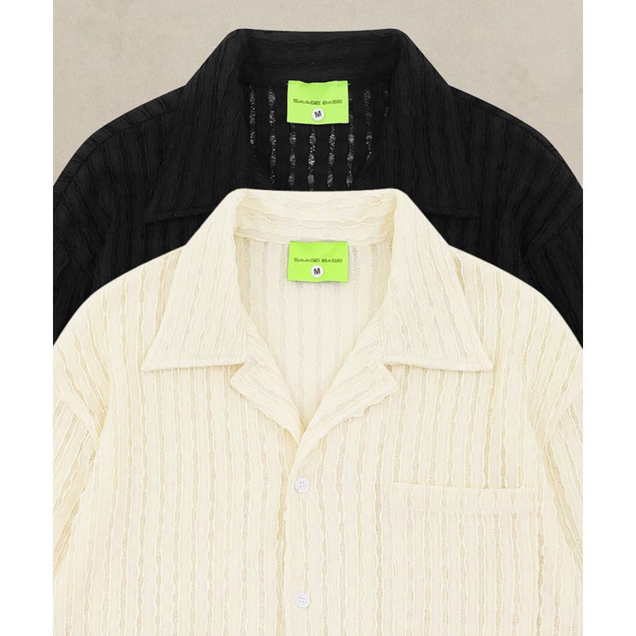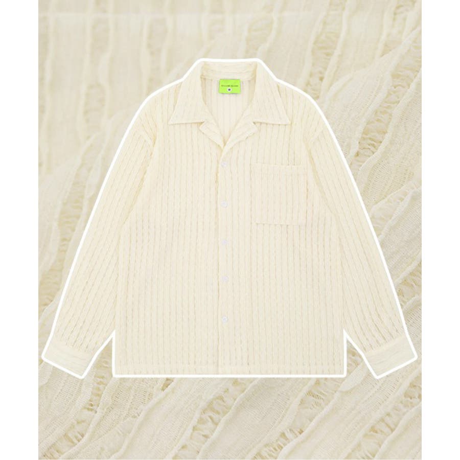 立体感のある凹凸素材が印象的なラフに着こなせる肌ざわり柔らかなルーズシャツ