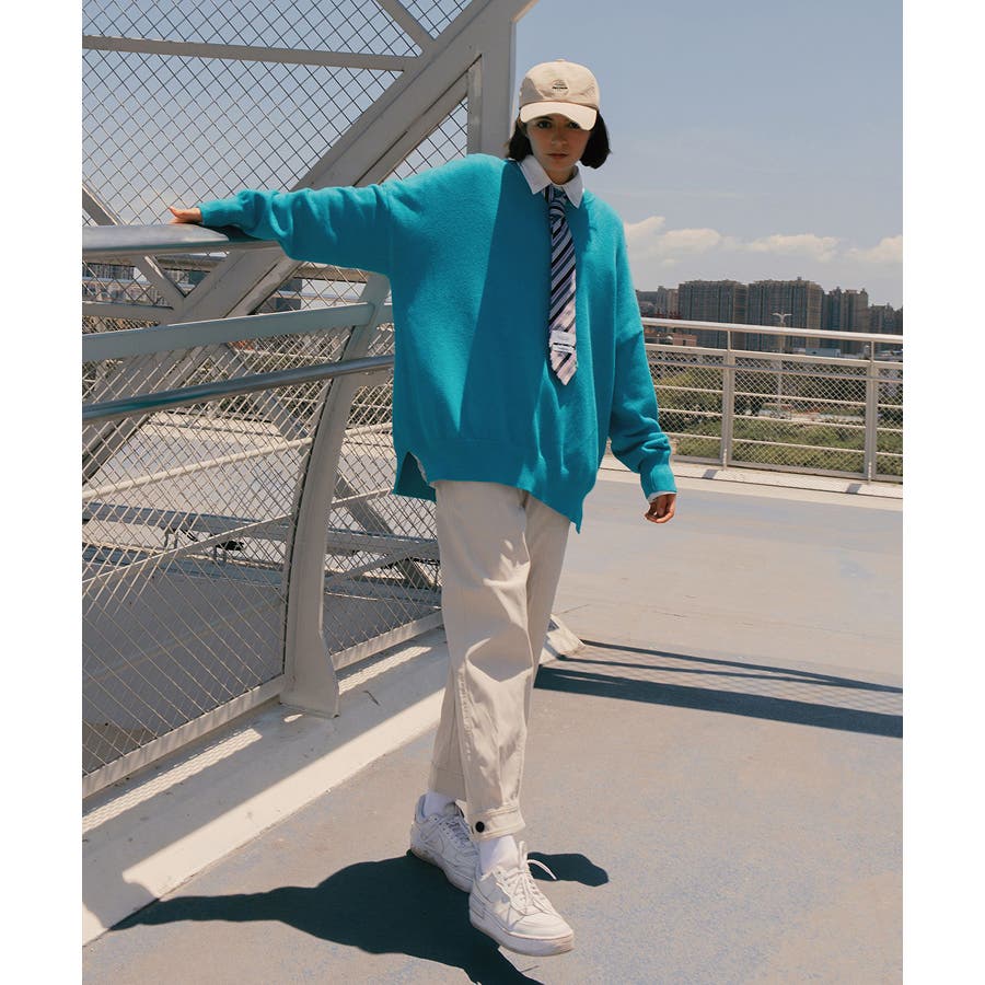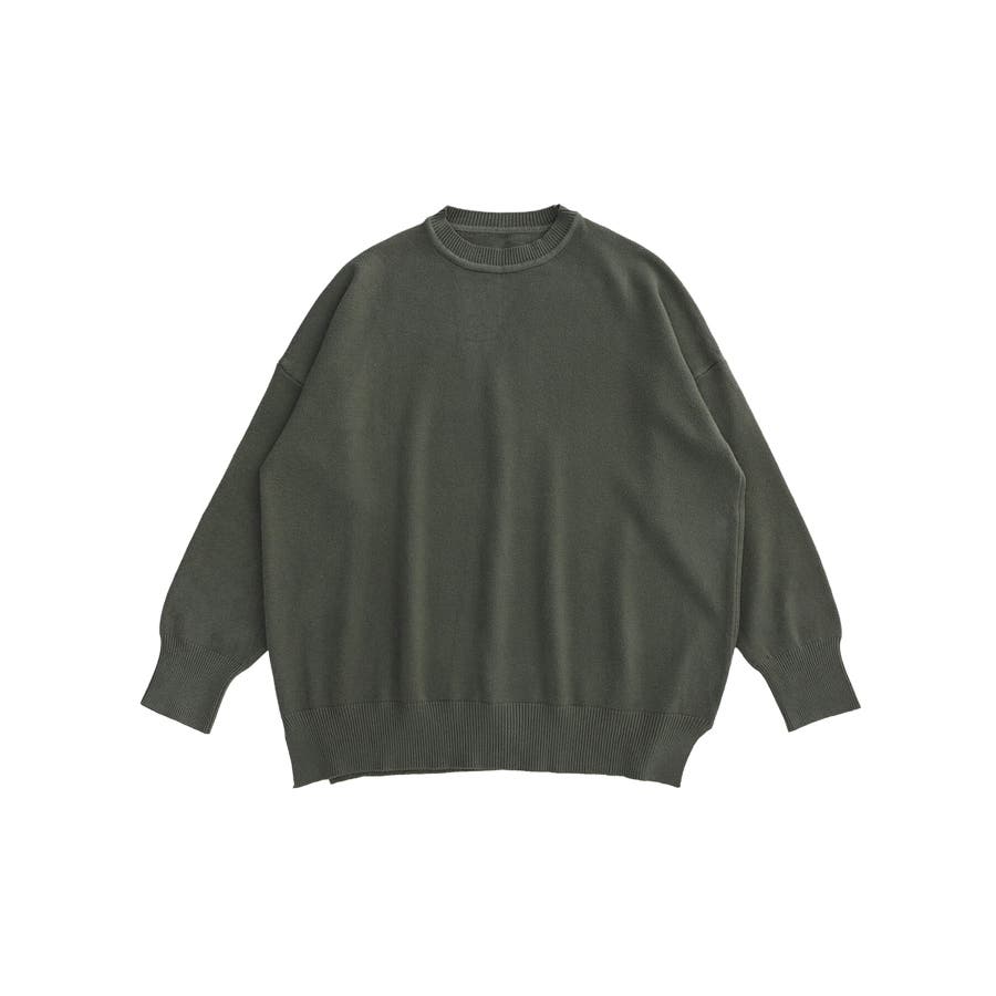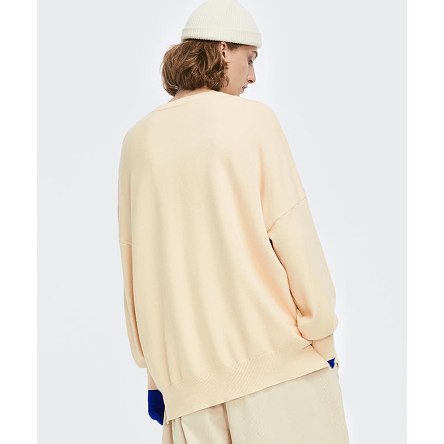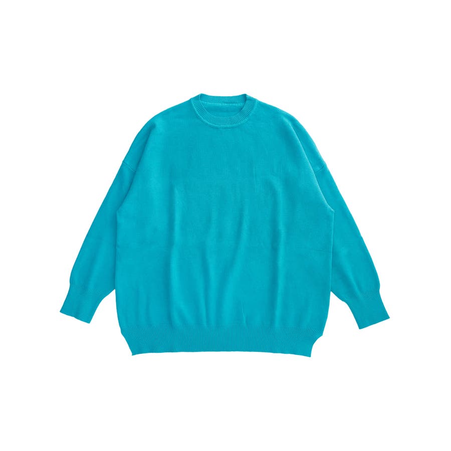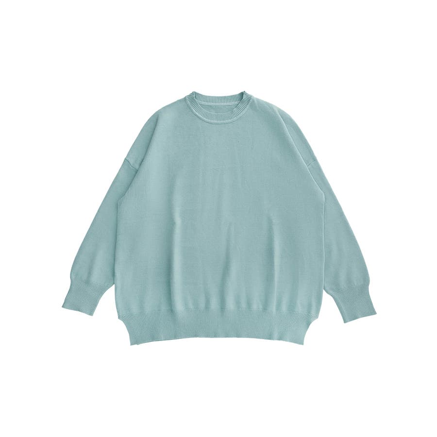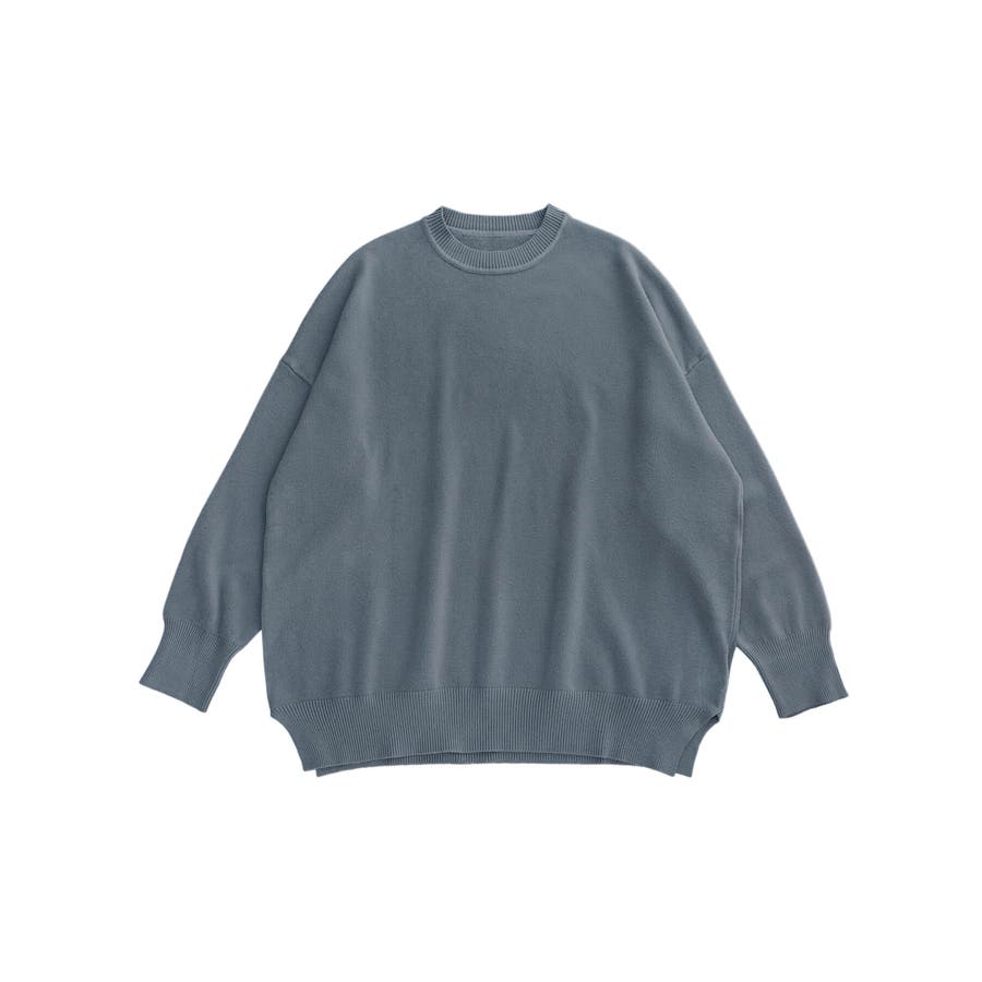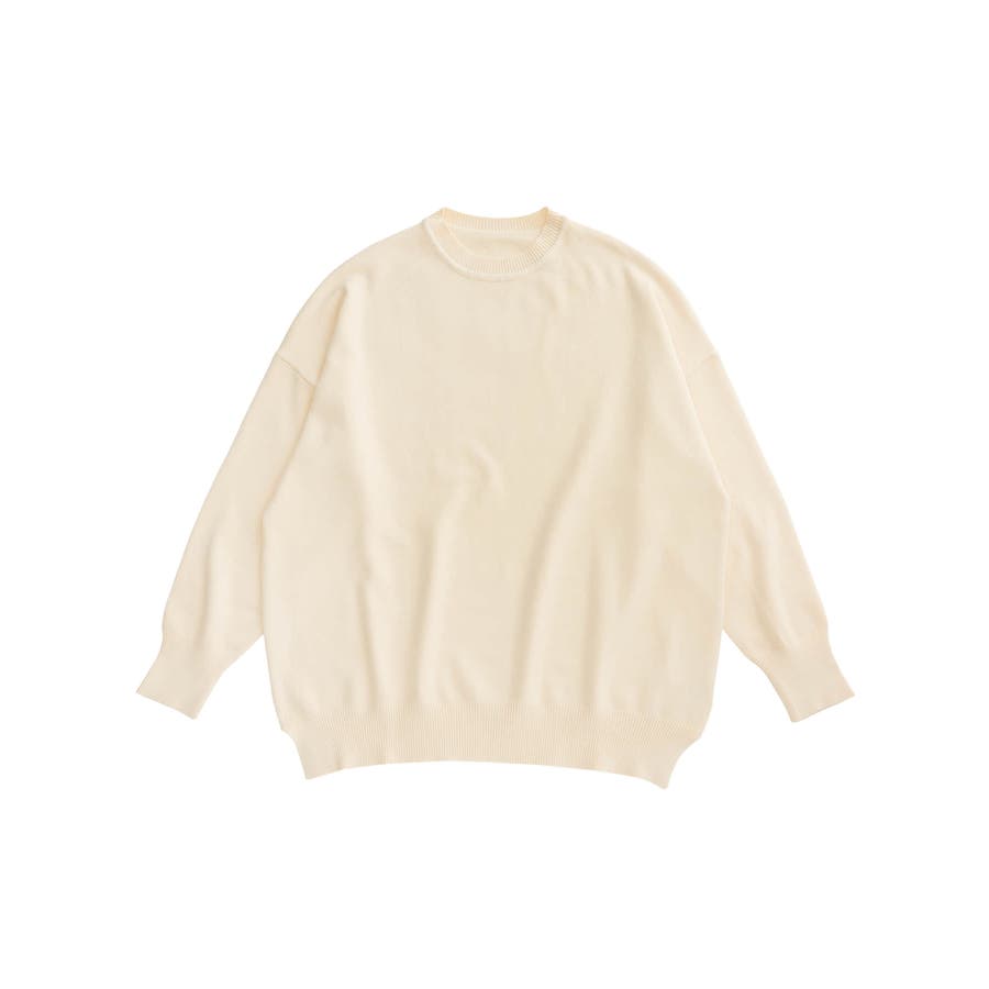 ドロップショルダーでトレンドライクな面持ちながら、ライトゲージできれいめな雰囲気を演出。