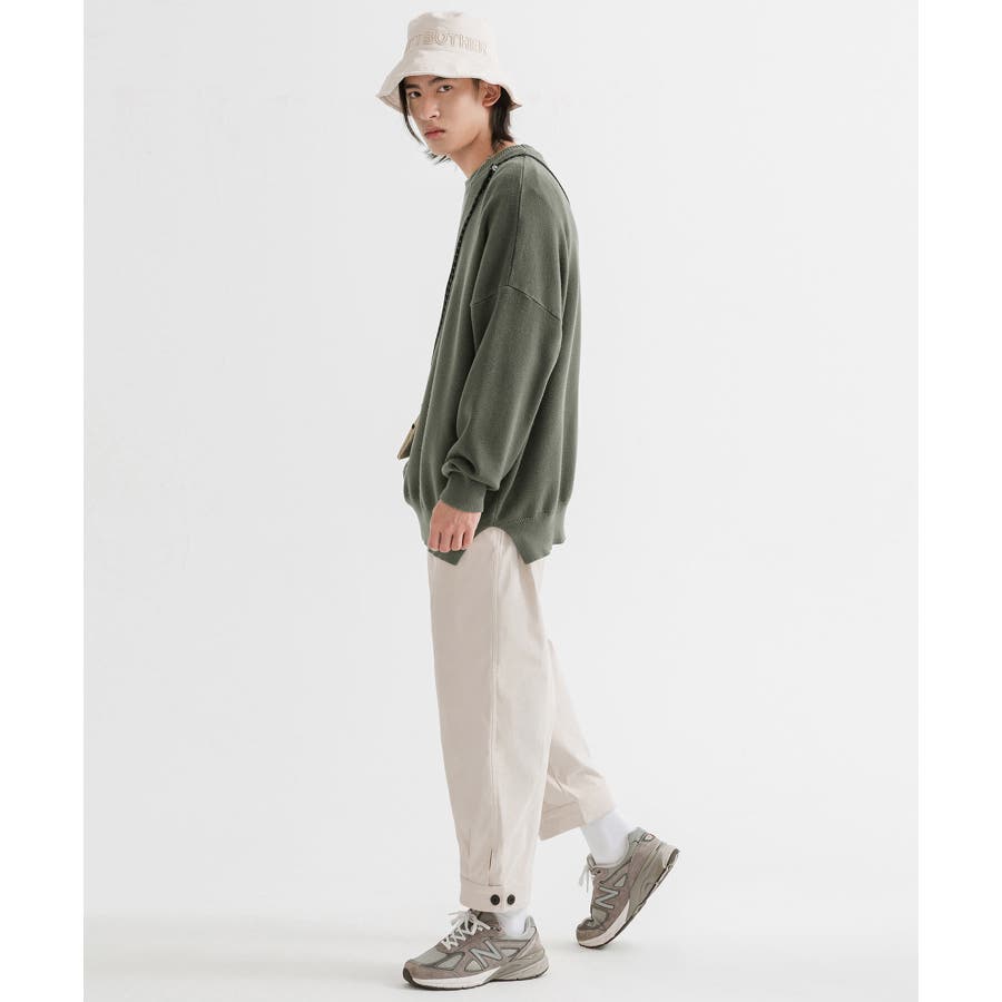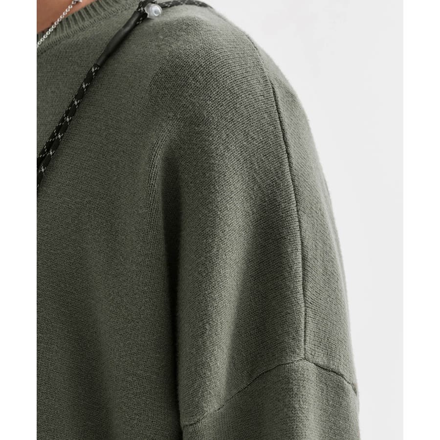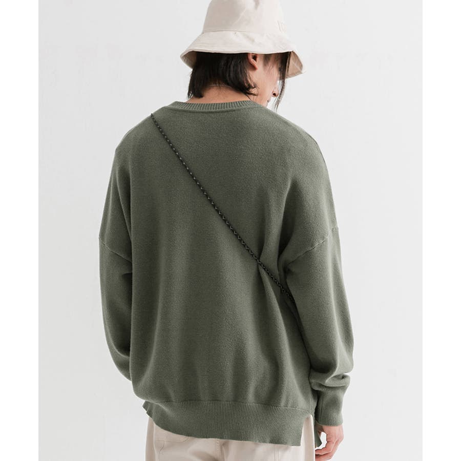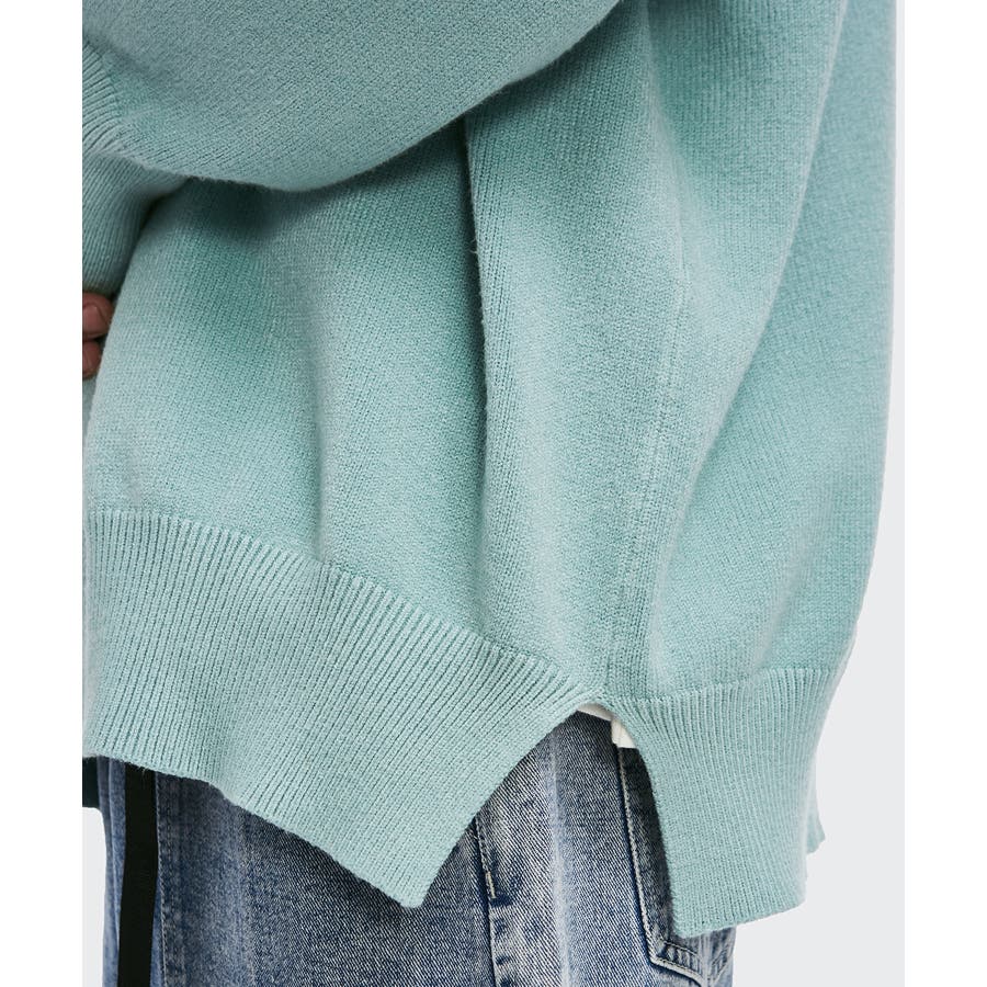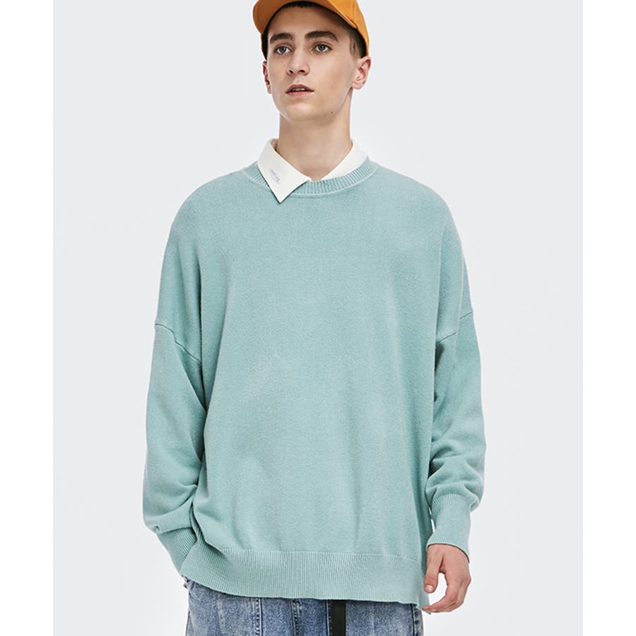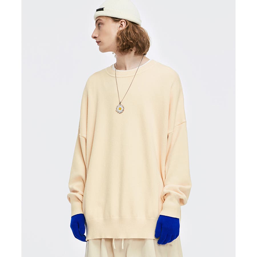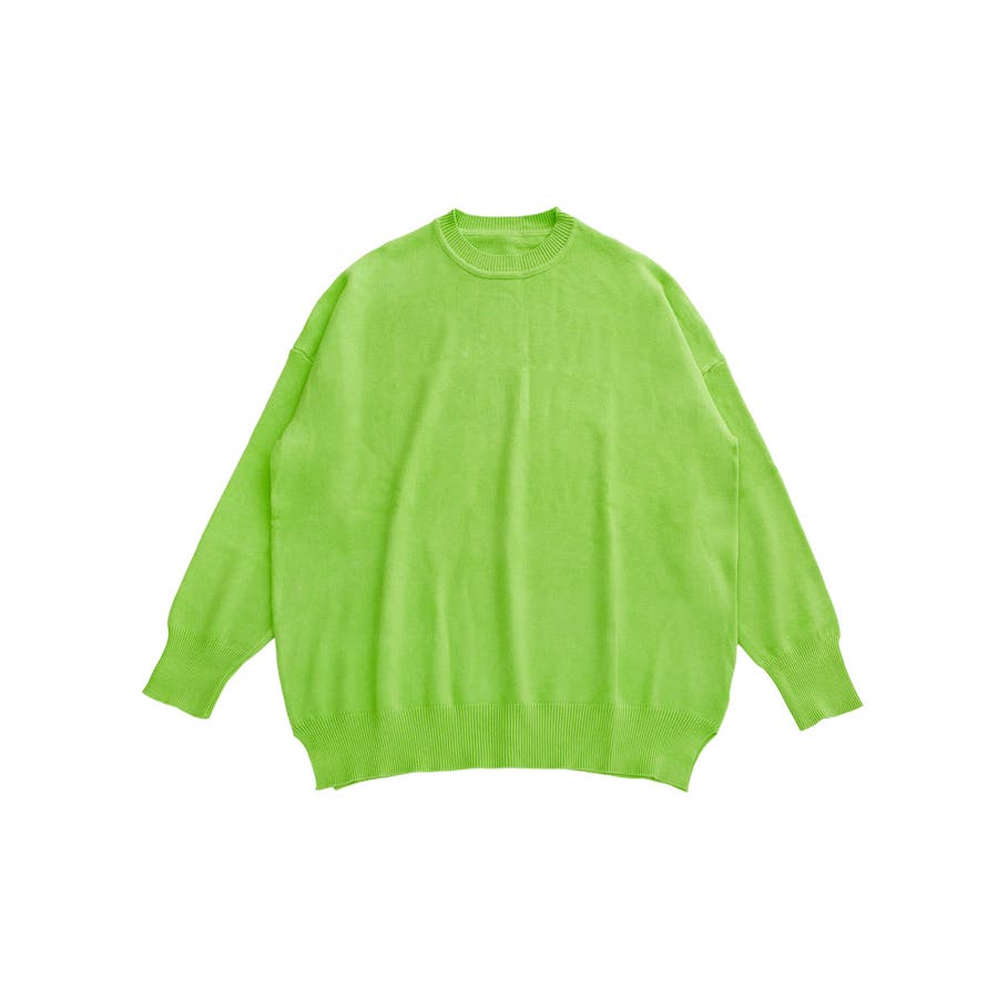 ドロップショルダーでトレンドライクな面持ちながら、ライトゲージできれいめな雰囲気を演出。