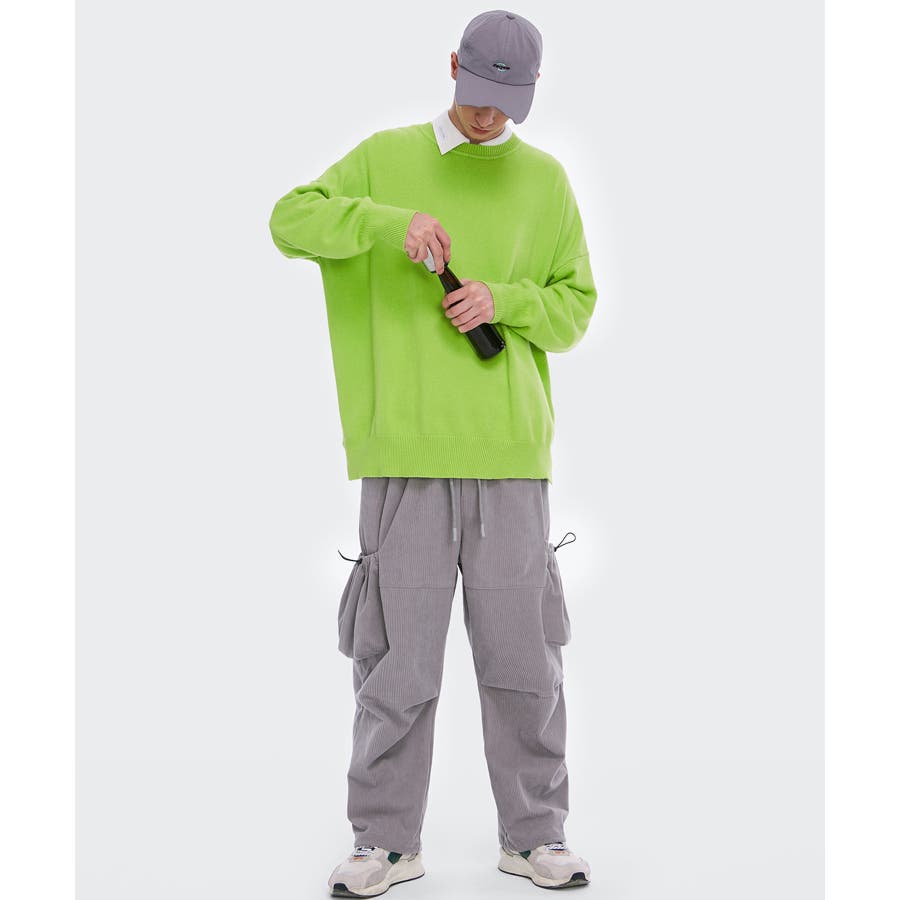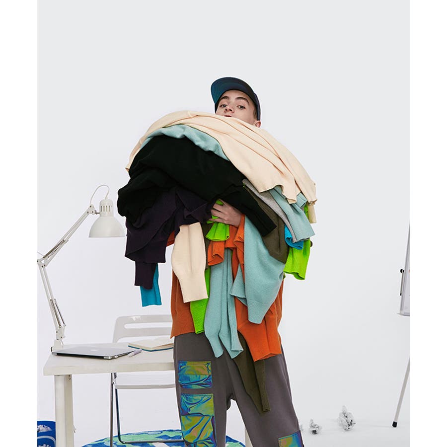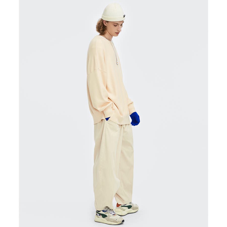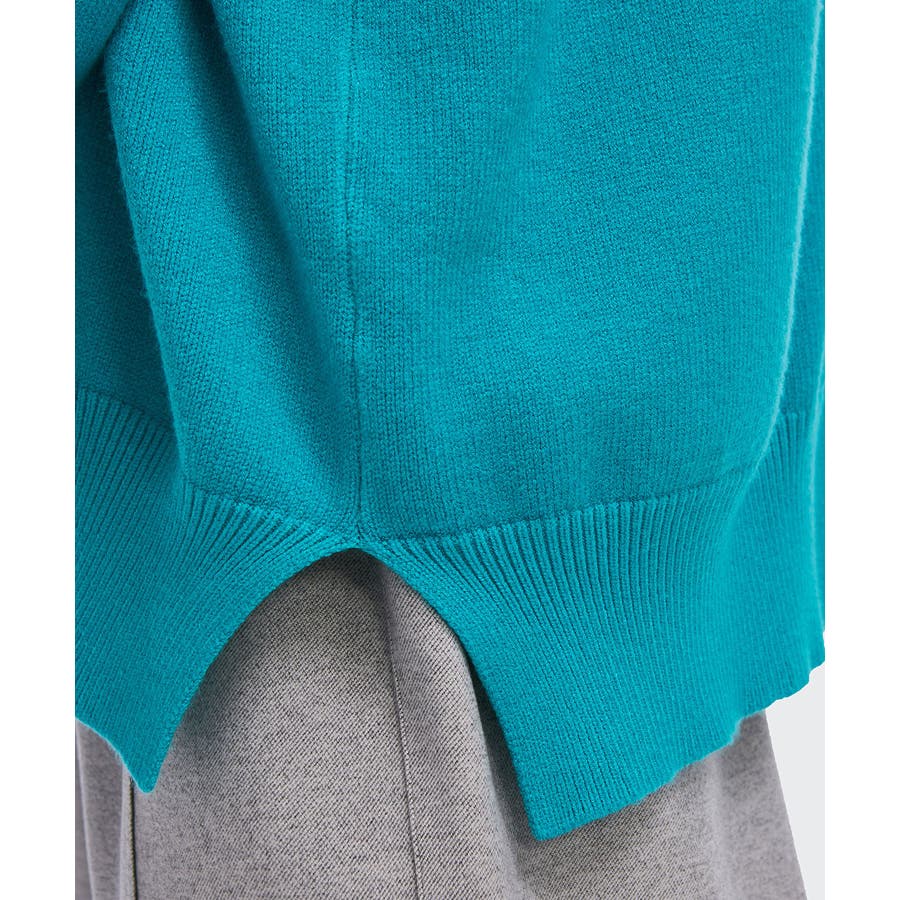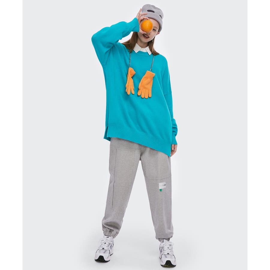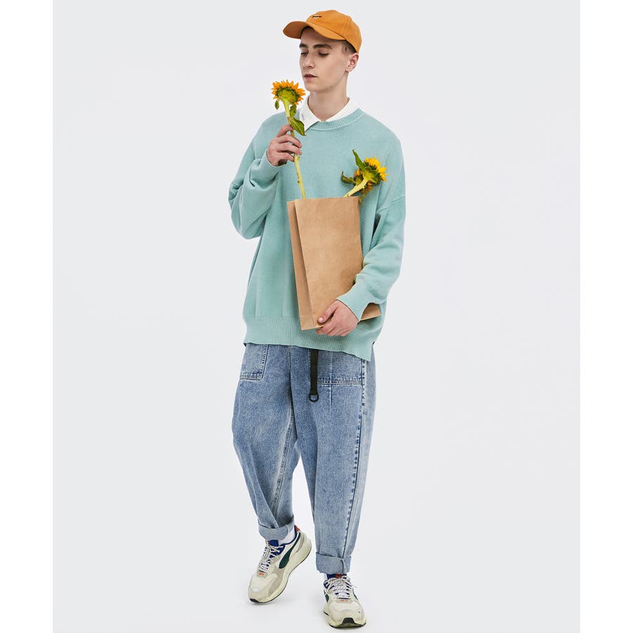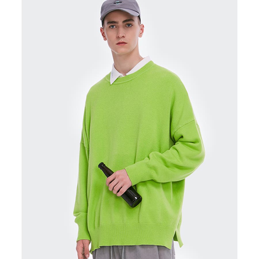 ドロップショルダーでトレンドライクな面持ちながら、ライトゲージできれいめな雰囲気を演出。