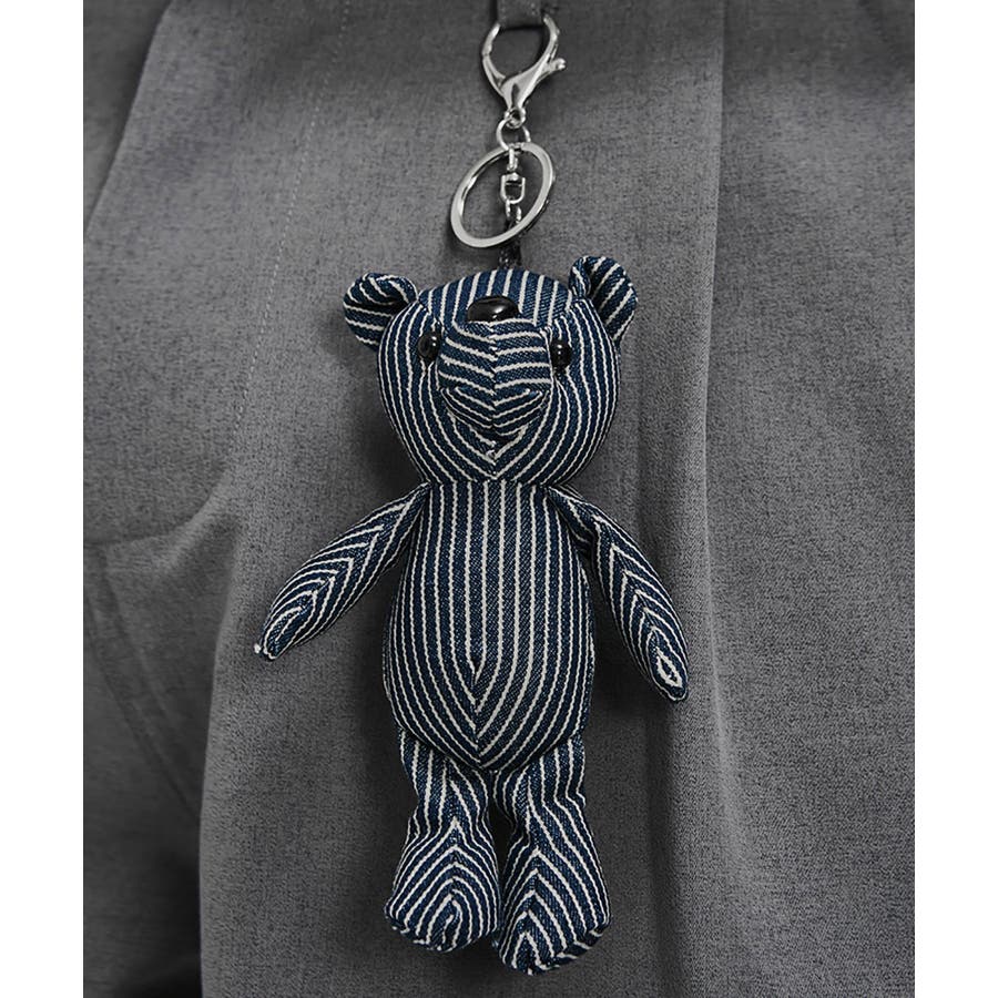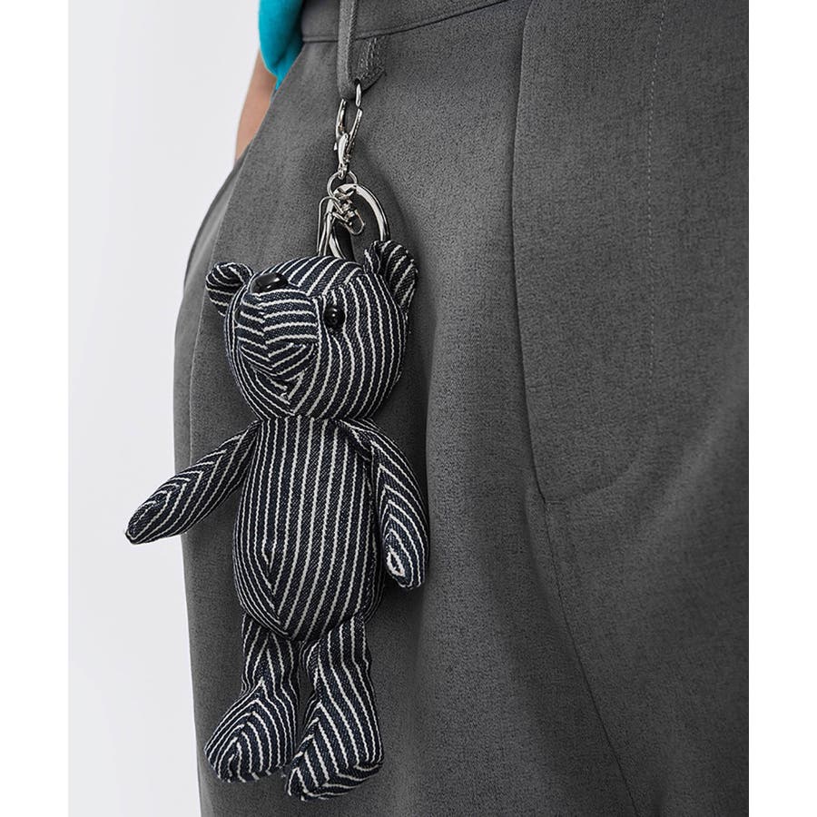 ベルトループにぶら下がるクマのキーホルダーがシンプルなデザインにアクセントを添えます。