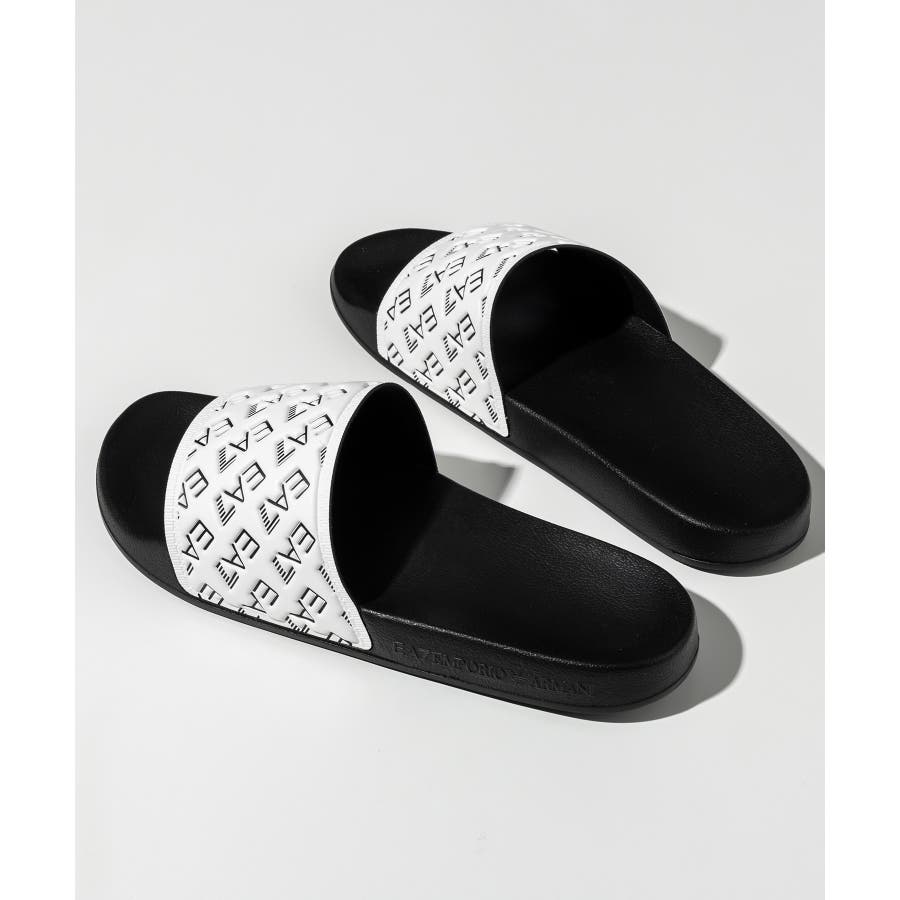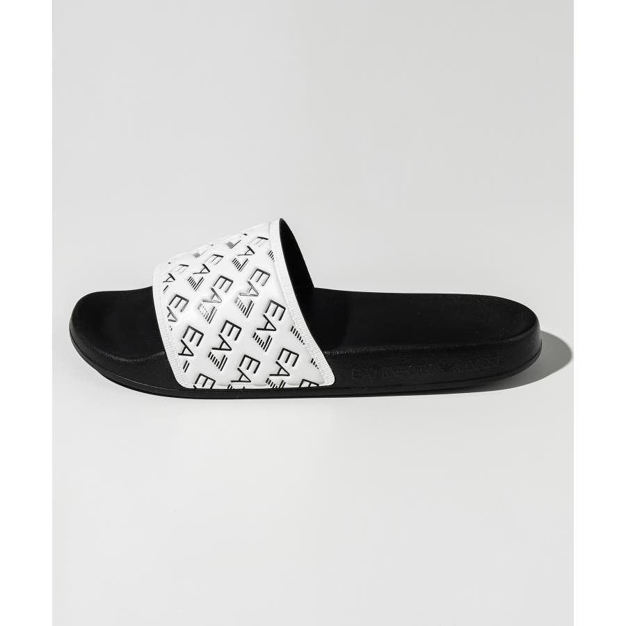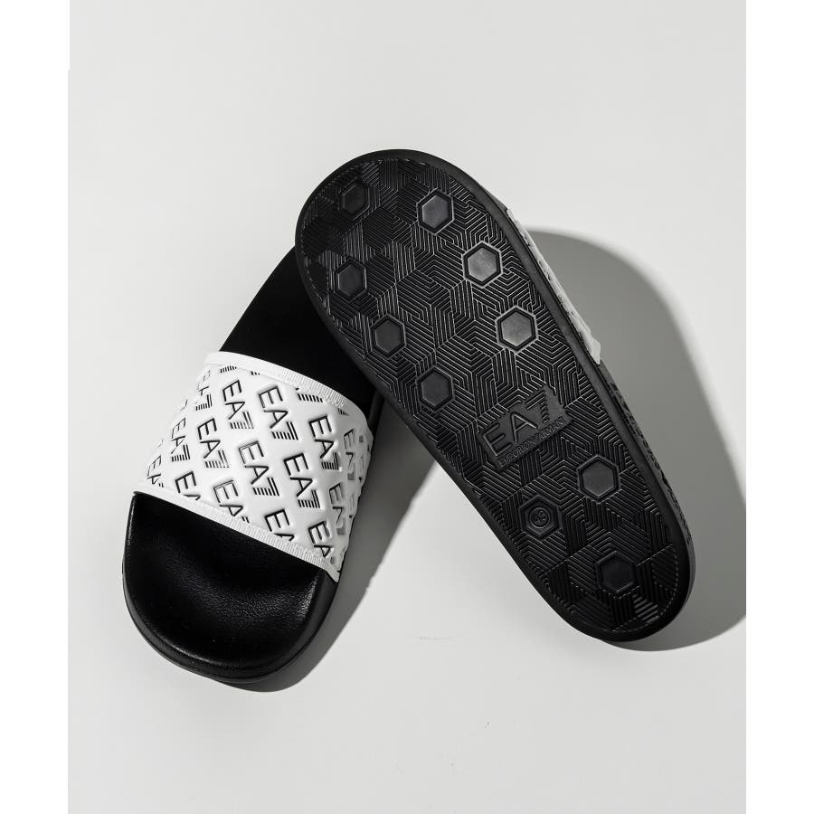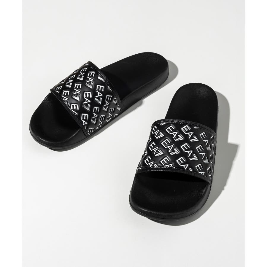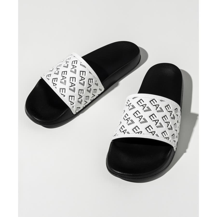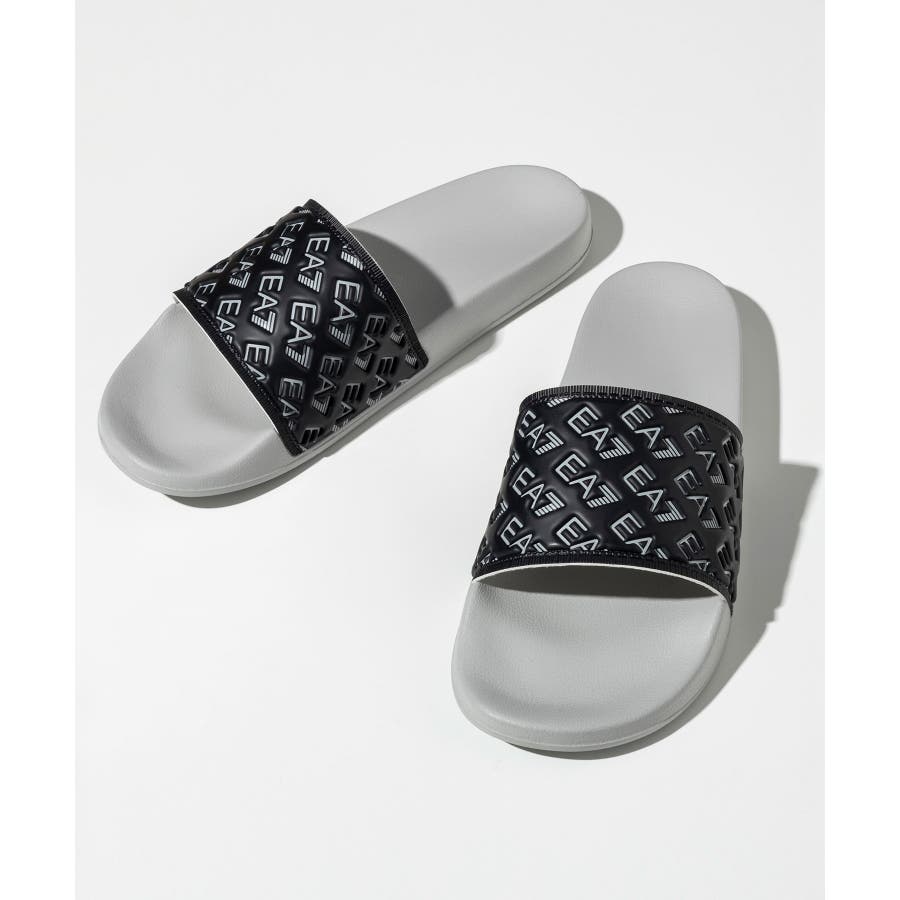 ワイドなバンドにEA7ロゴをあしらったスライドサンダル。