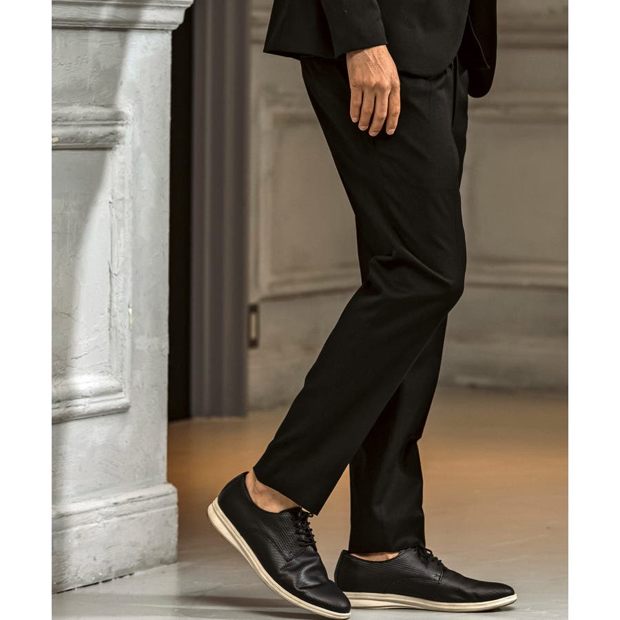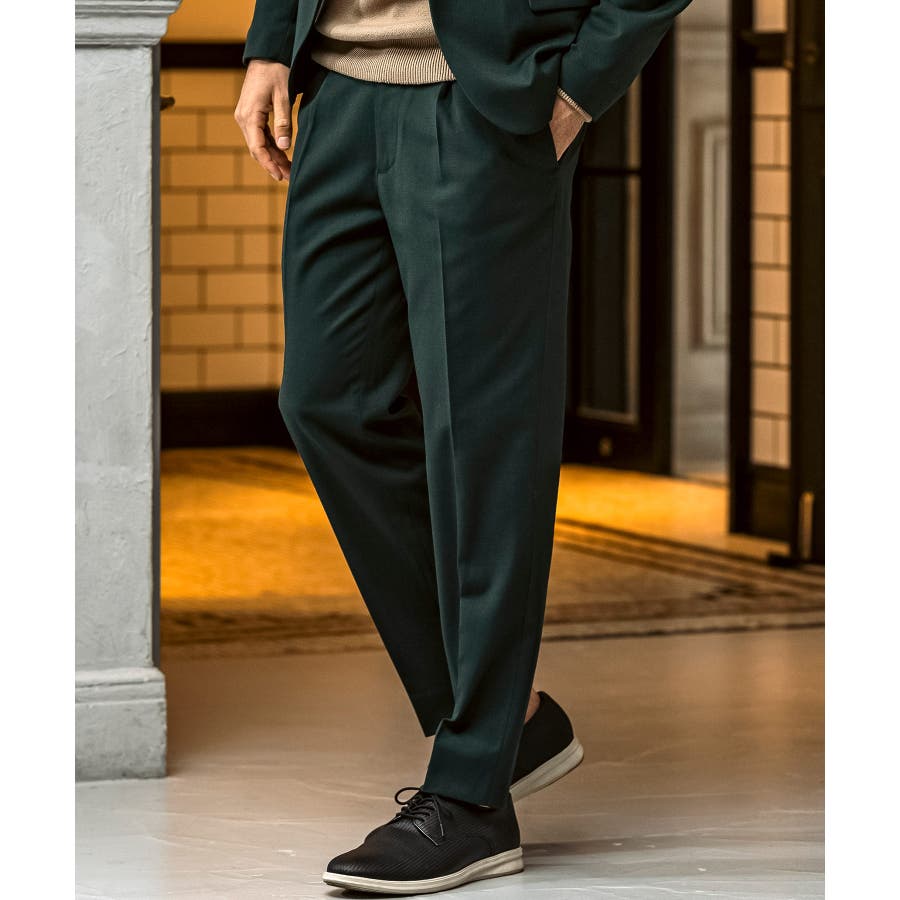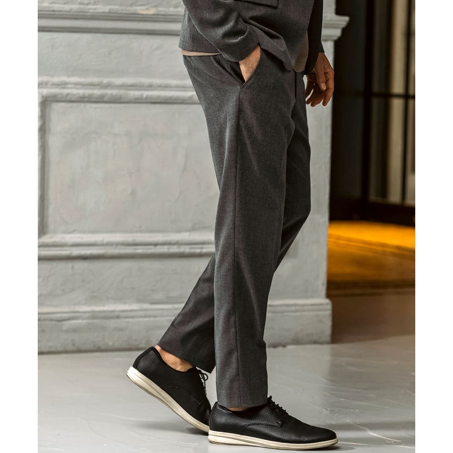 正統派の美しいテーパードシルエットが脚のラインをすっきりと見せ、品のある佇まいを演出。