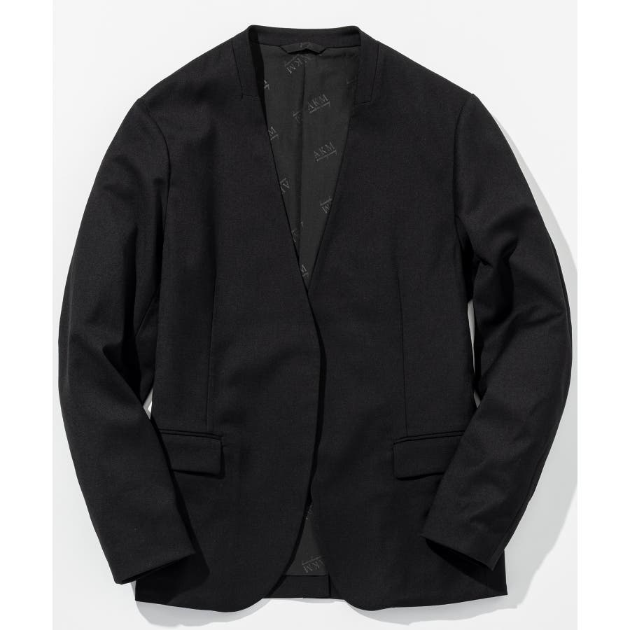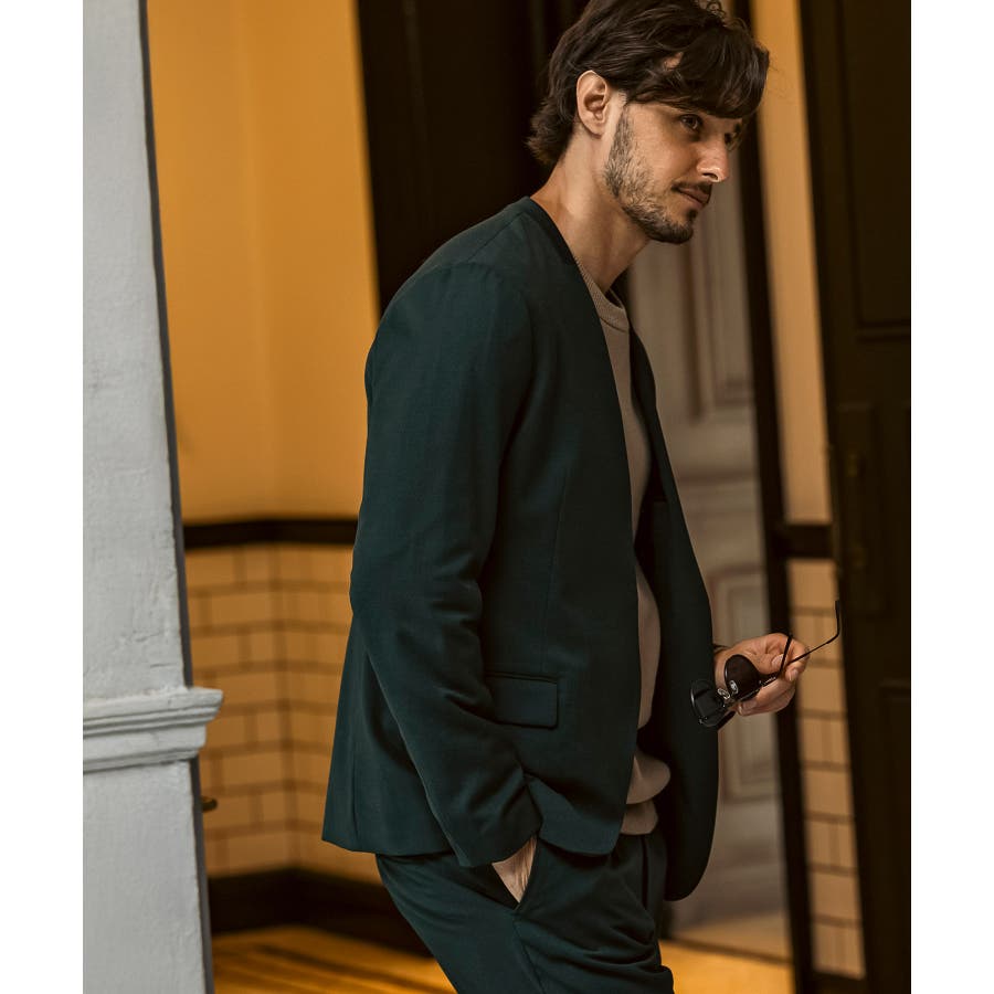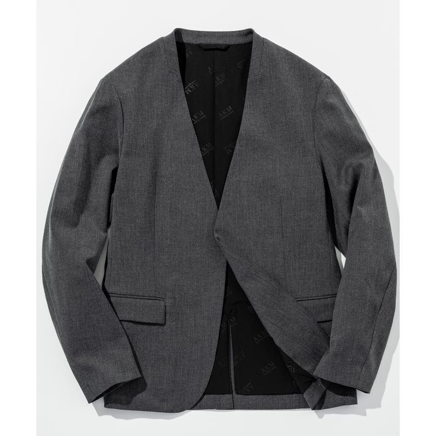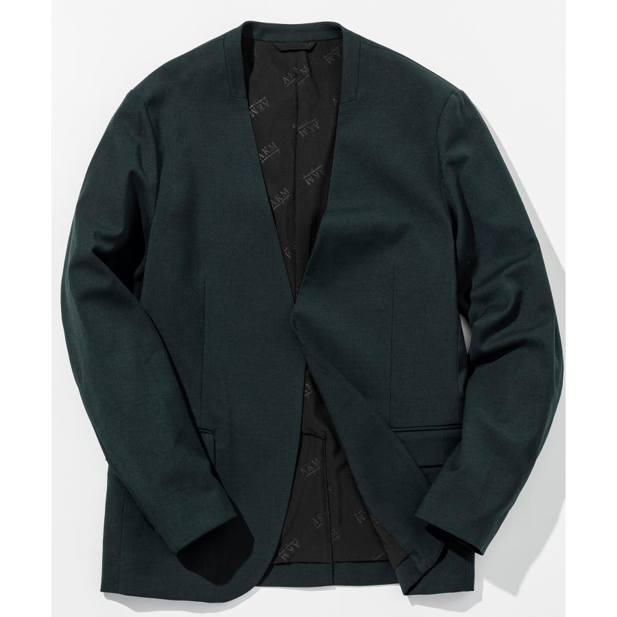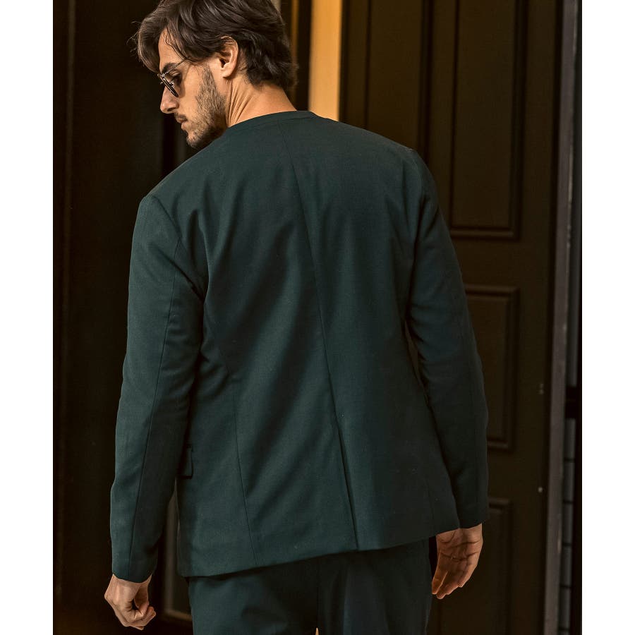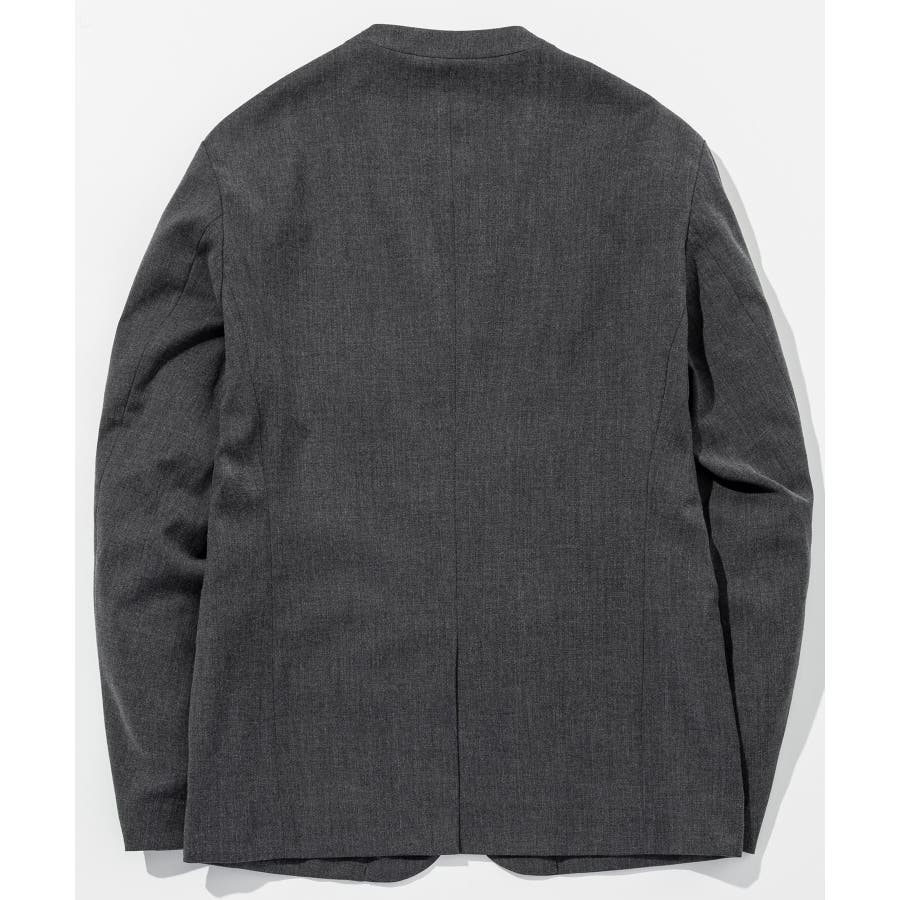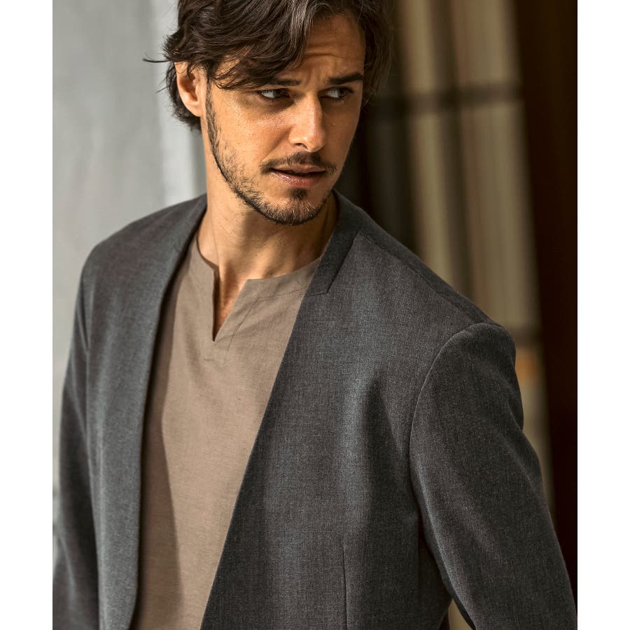 ウール混の生地を使用したノーカラージャケット。