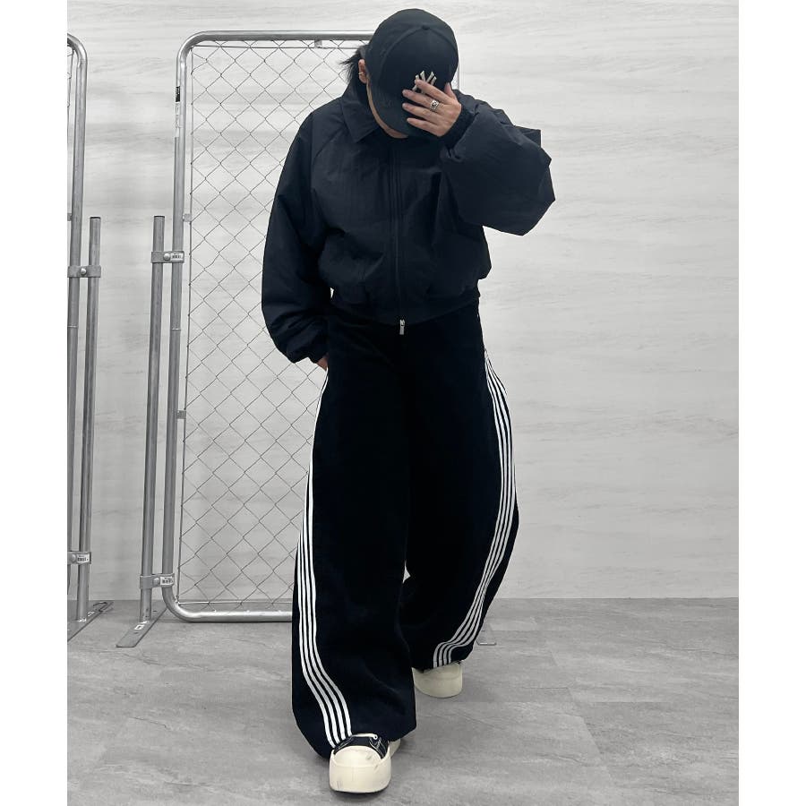 ゆったりとしたワイドシルエットが、カーブと相まってリラックスしつつもモダンなストリートスタイルを演出します。