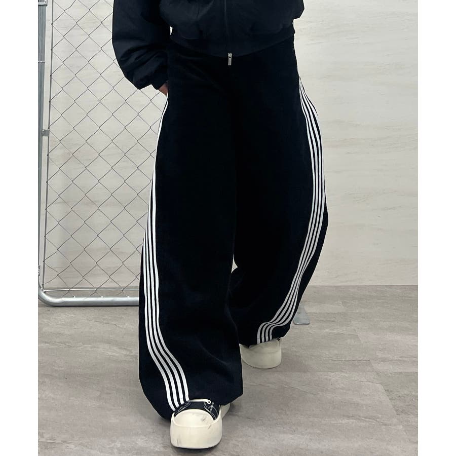 運動時の脚の動きに合わせて設計されたような曲線的なストライプが、動きのある立体的なシルエットを強調します。