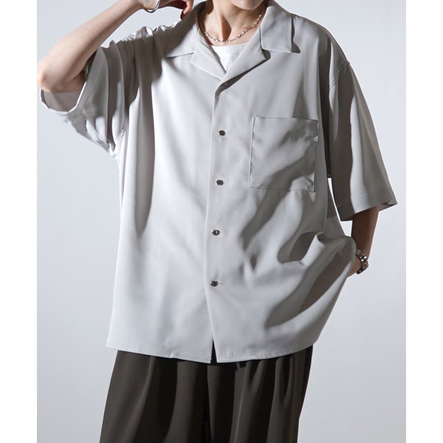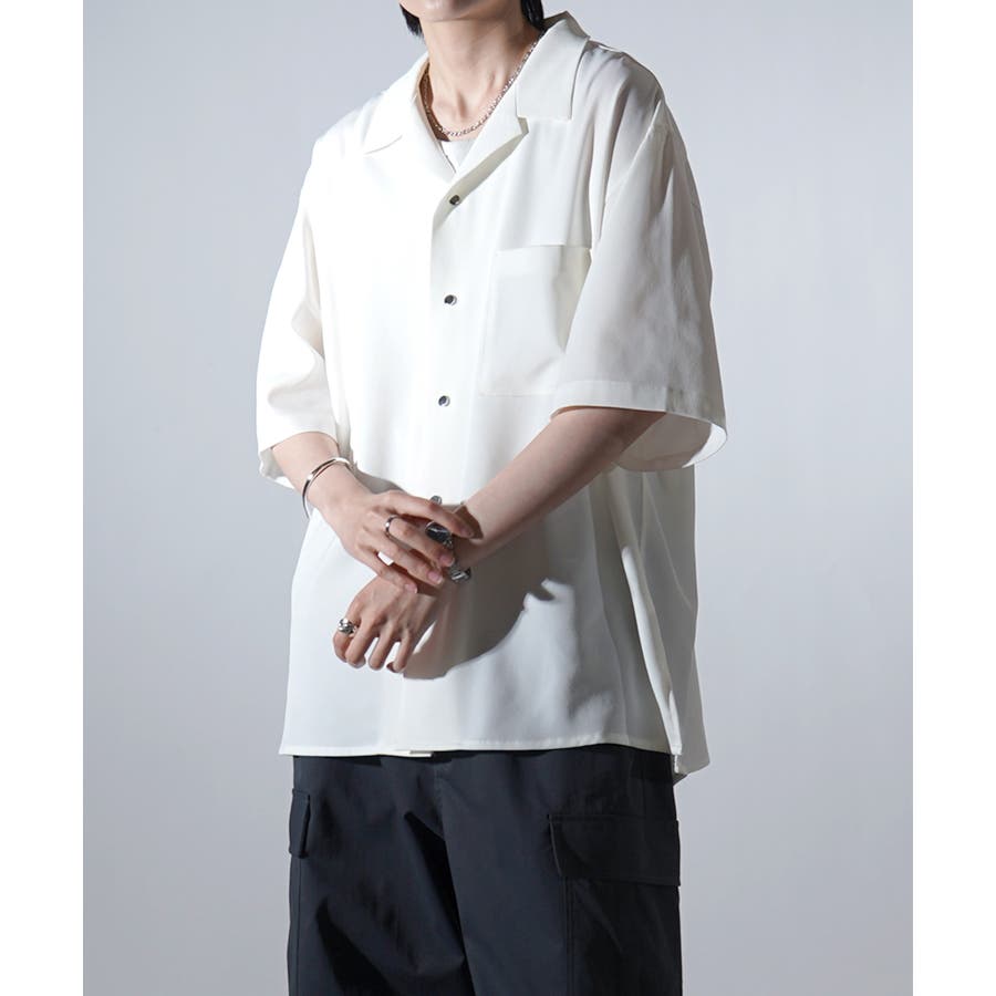 メタルボタンが特徴的なオープンカラーシャツが登場。