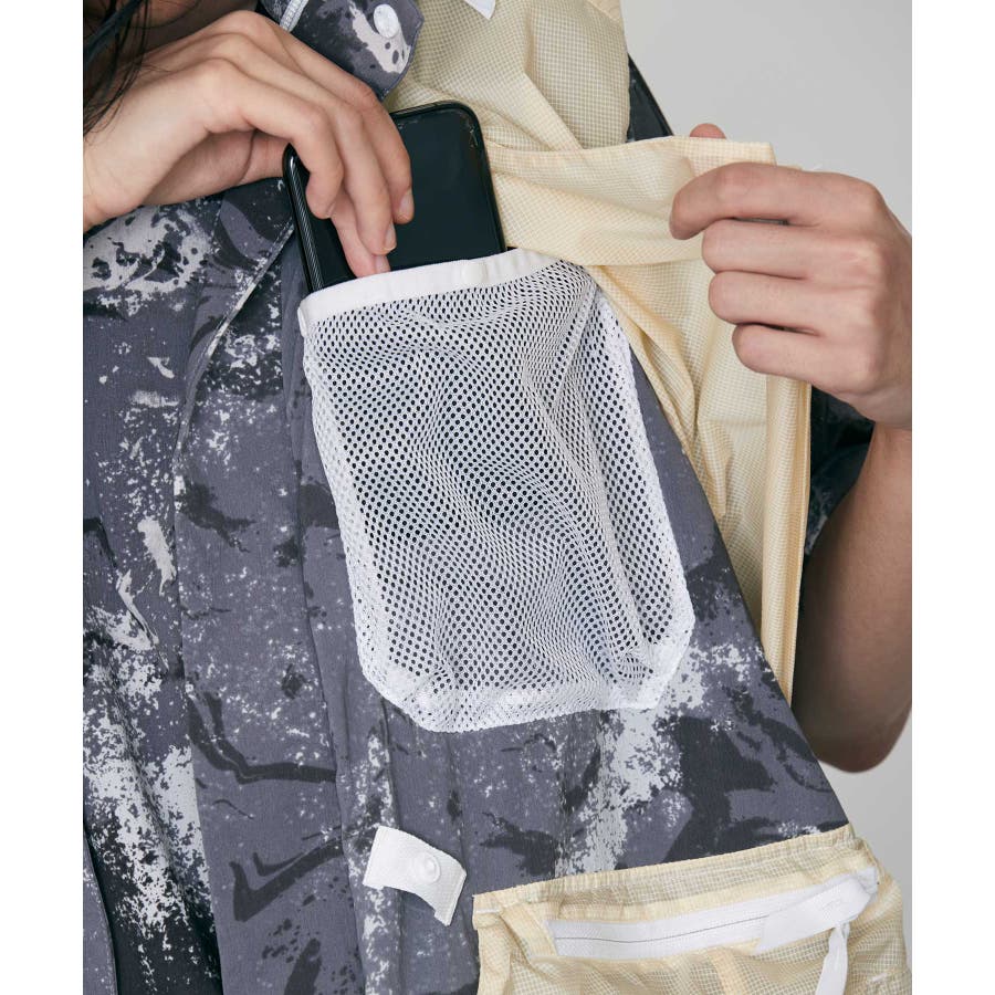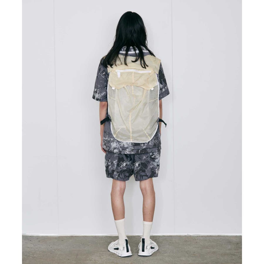 ボディには軽量でストレッチ性が高いナイロンベースの撥水素材“Karustretch II”(カルストレッチツー)を新たに開発。ストレッチ性の高いカルストレッチと部分的に超軽量撥水リップストップ素材を掛け合わせることで、より軽量で多機能なベストに仕上げています。