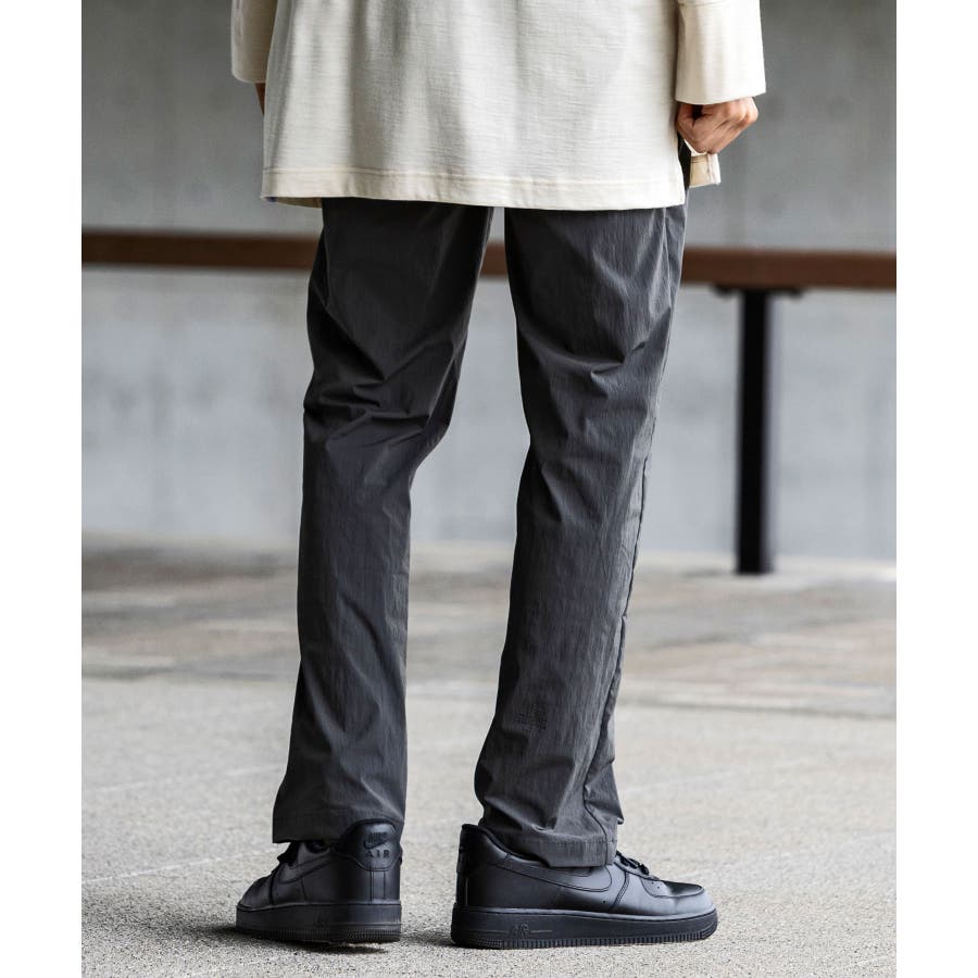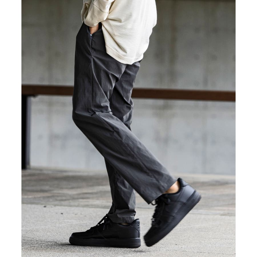 すっきりしたテーパードシルエットのパンツ。