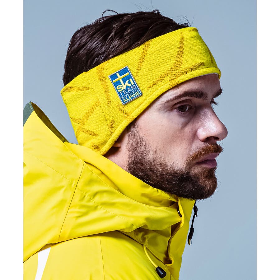 スウェーデン国旗カラーを基調に、クロスモチーフをジャガードで表現したデザイン。