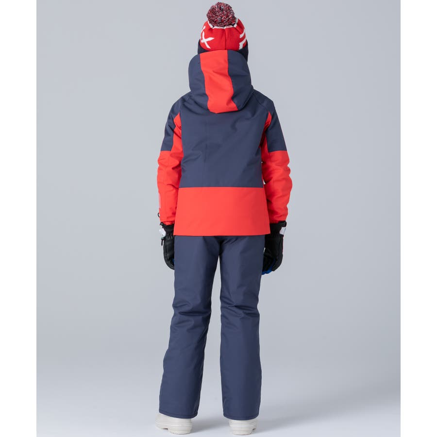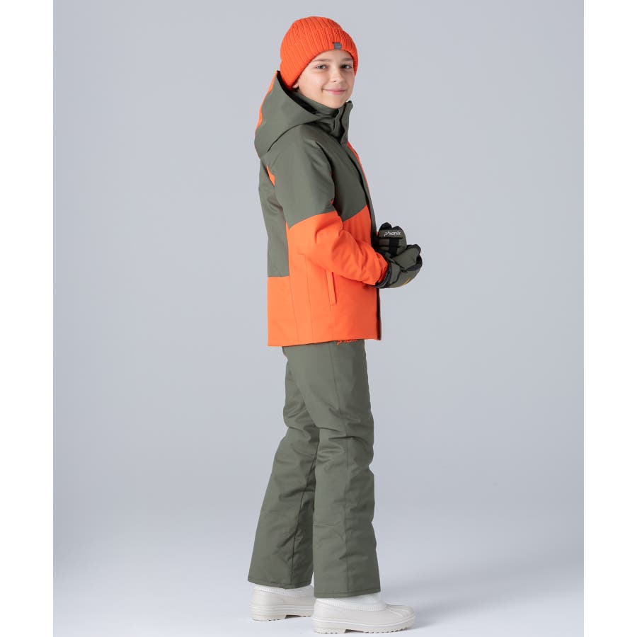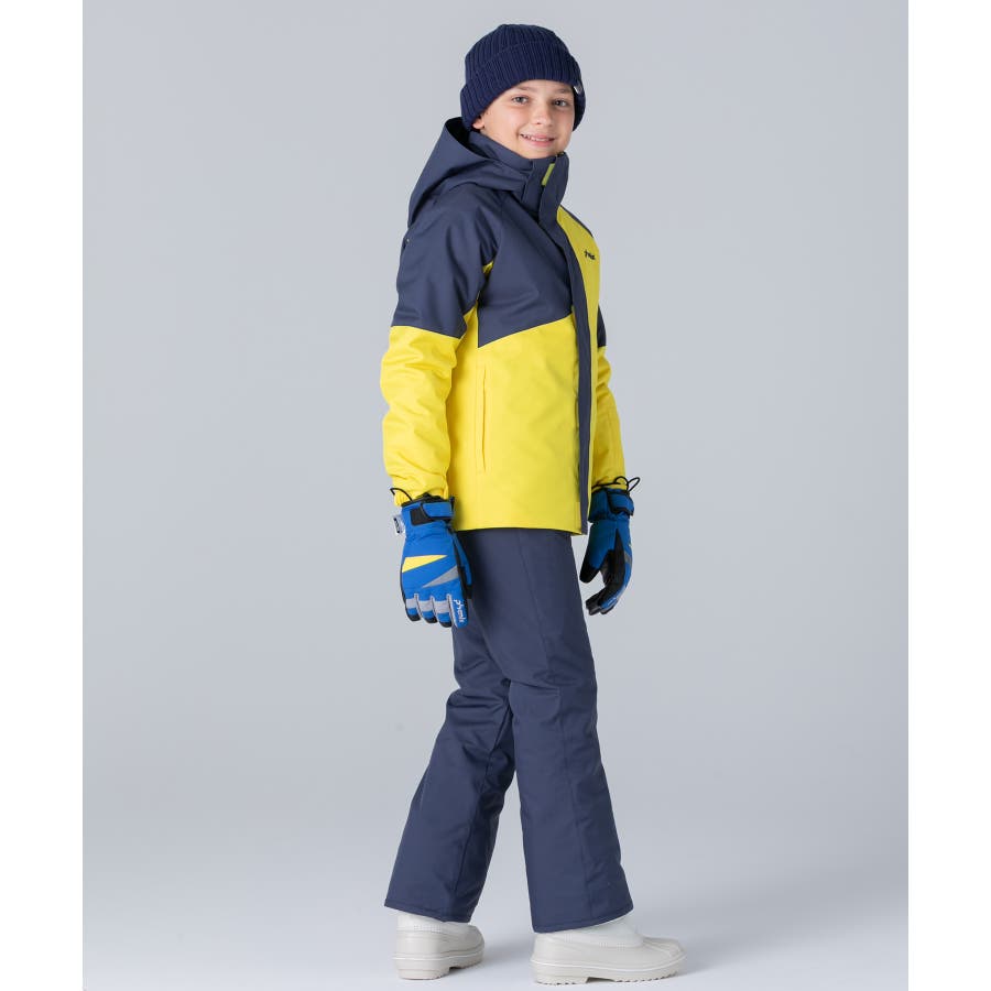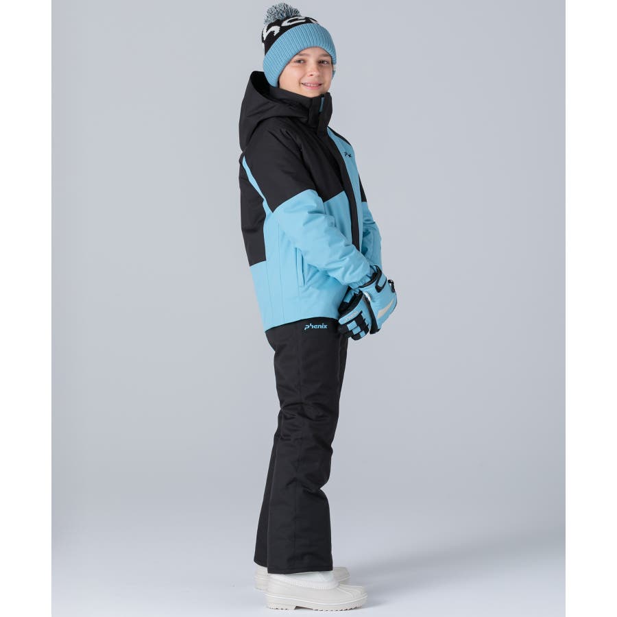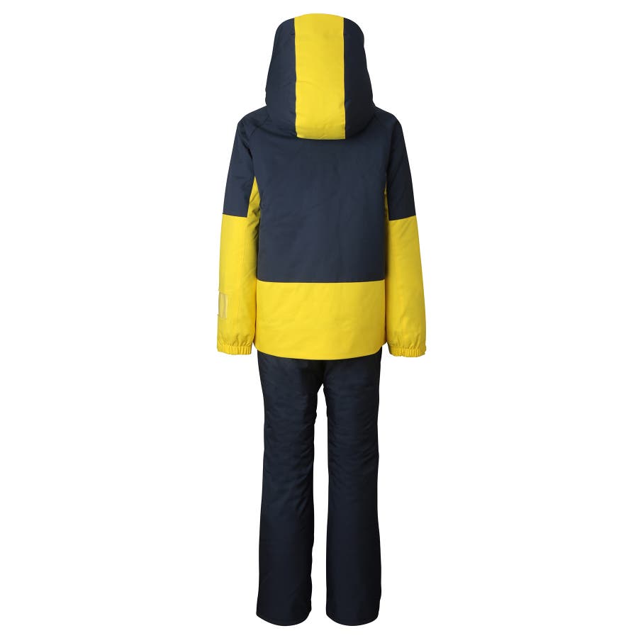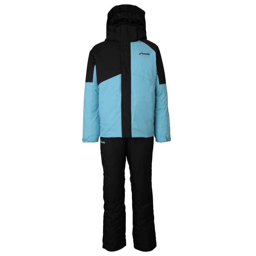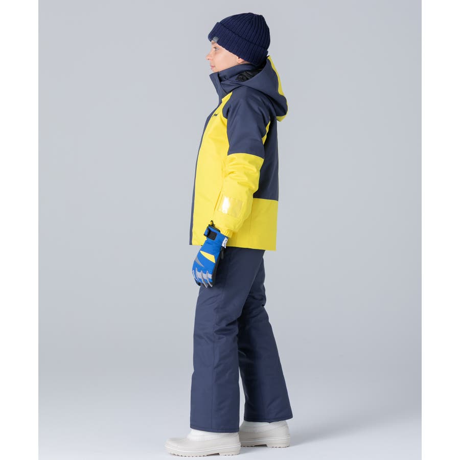 アシンメトリーな色使いが印象的な、個性あふれるジュニア用スキーウェア上下セット。