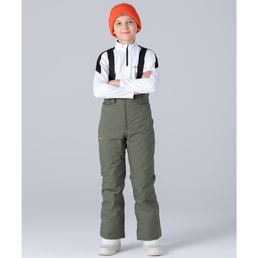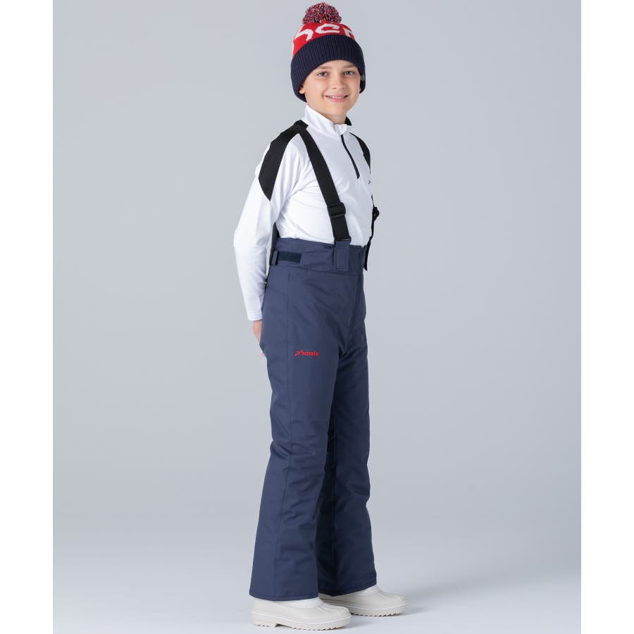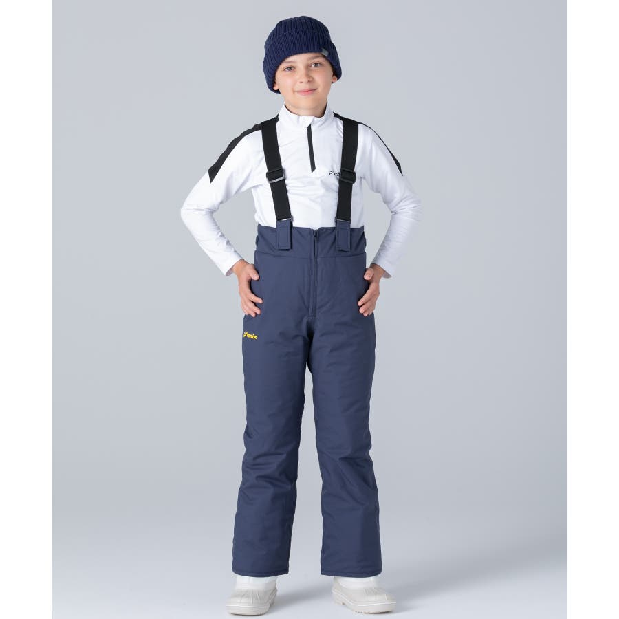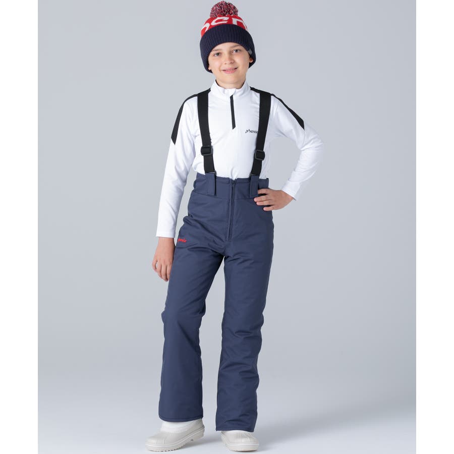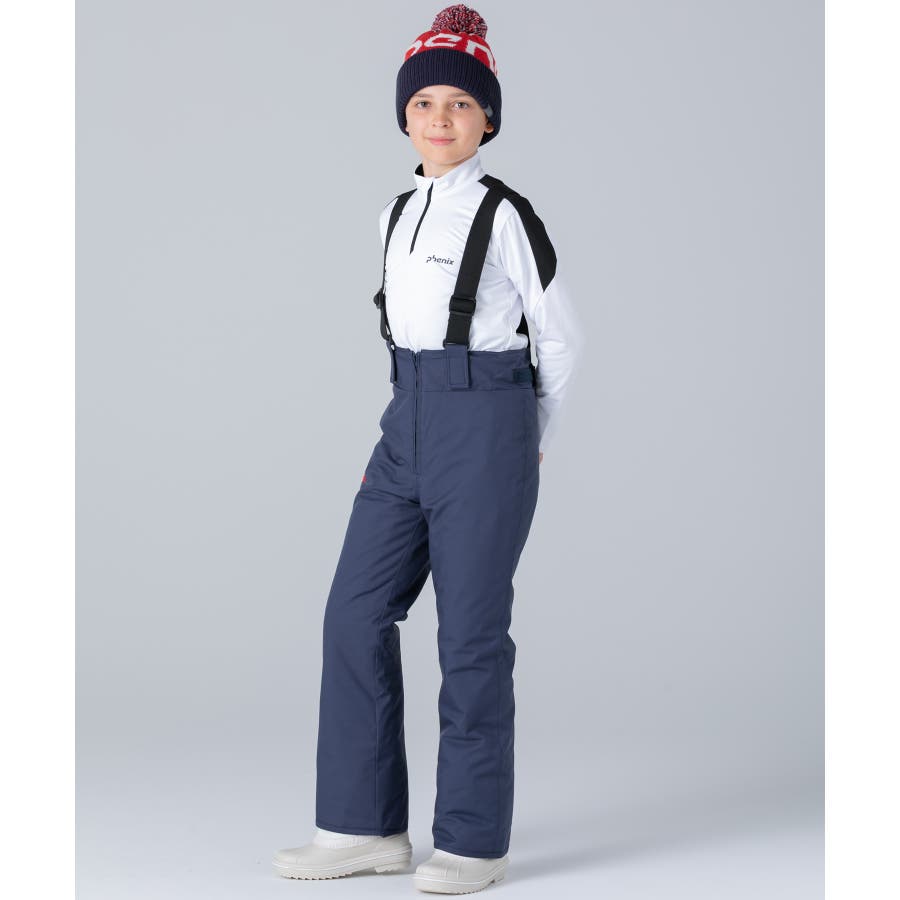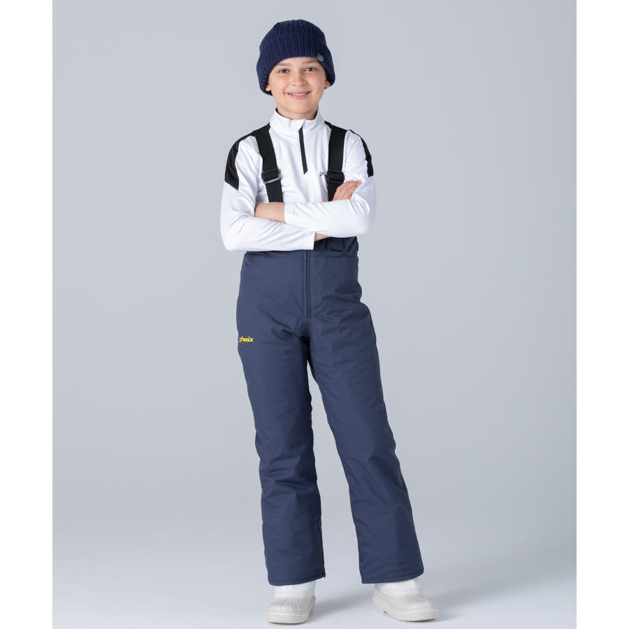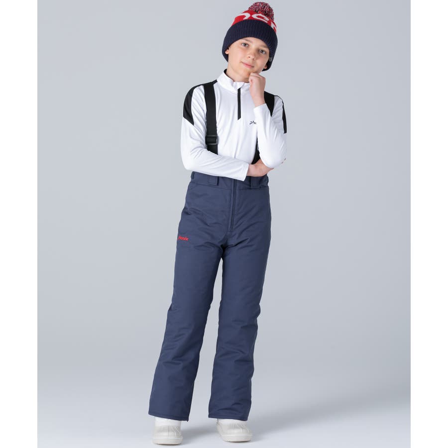 アシンメトリーな色使いが印象的な、個性あふれるジュニア用スキーウェア上下セット。