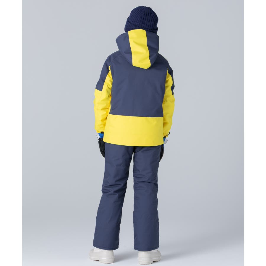 ベーシックなシルエットに遊び心のあるカラー切り替えを取り入れ、雪山でひときわ目を引くデザインに仕上げました。