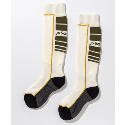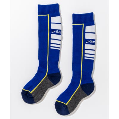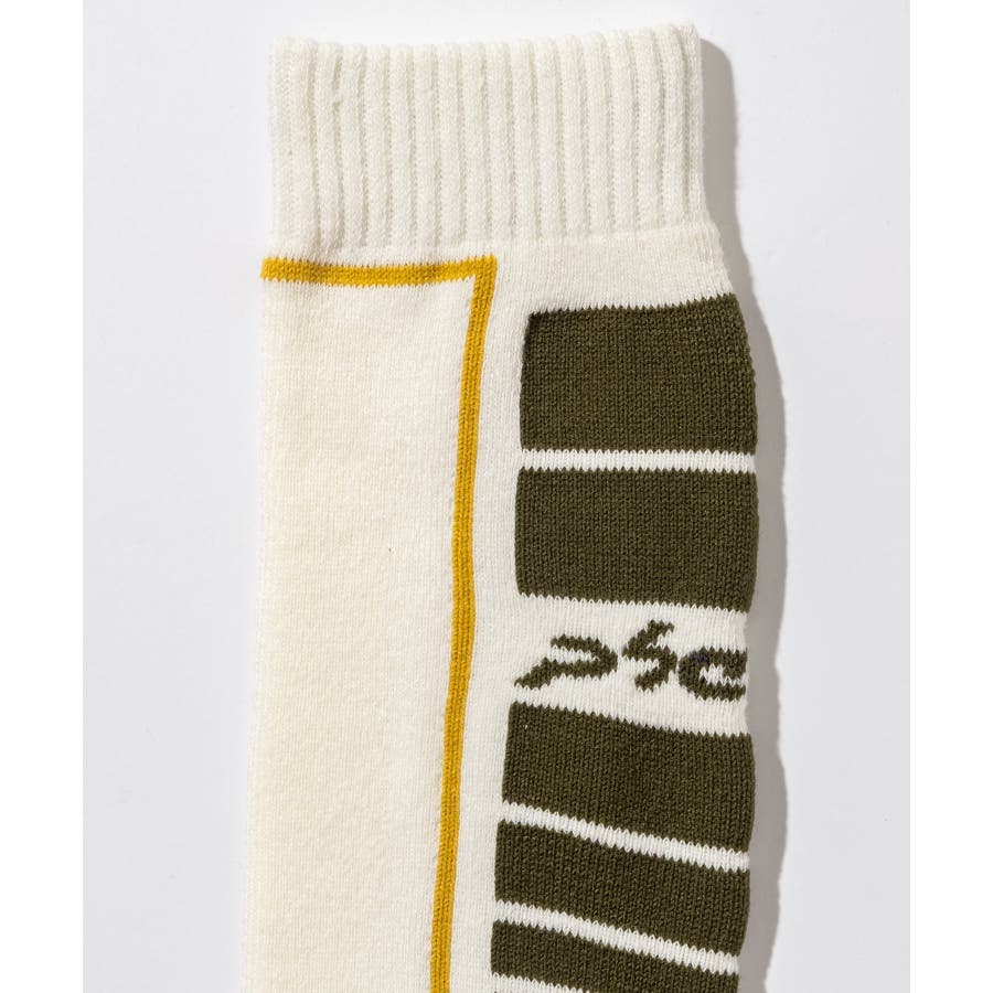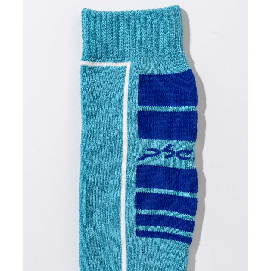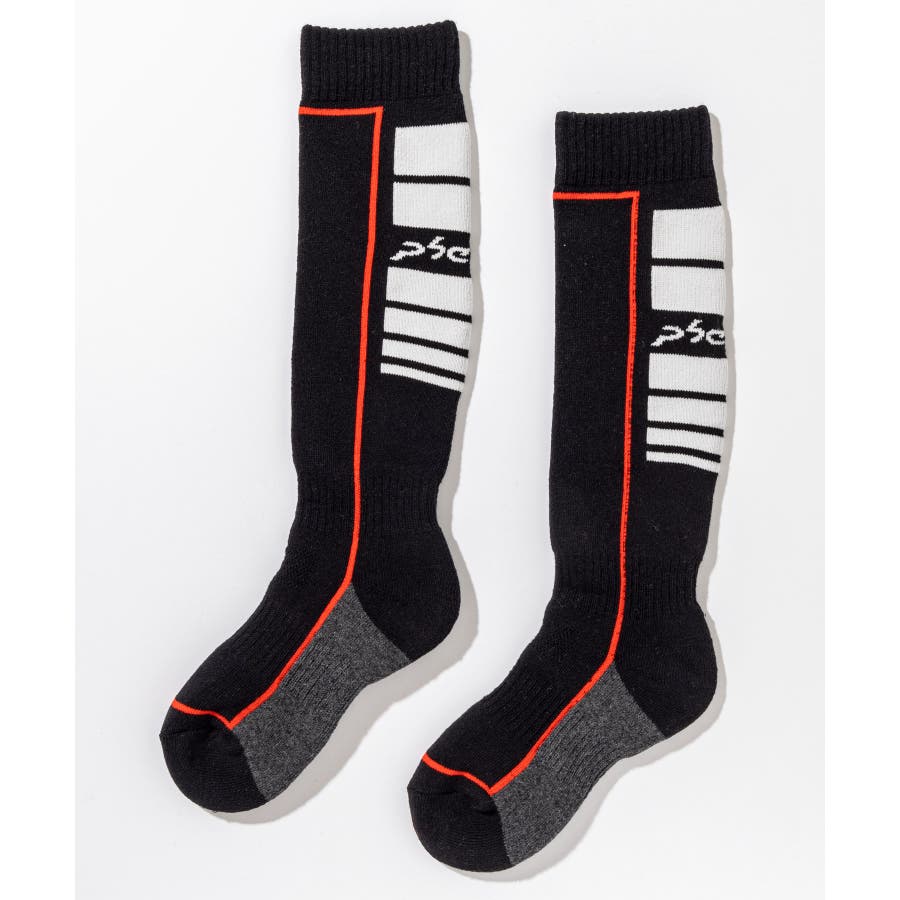 ロゴとカラーブロックデザインが印象的な、男の子用スキーソックス。
