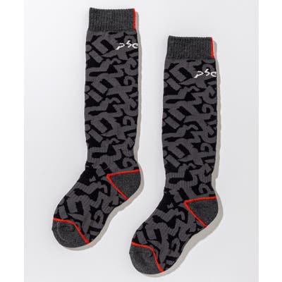 トーナルカラーでまとめたモノグラムデザインがオシャレな、男の子用スキーソックス。