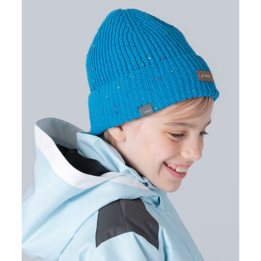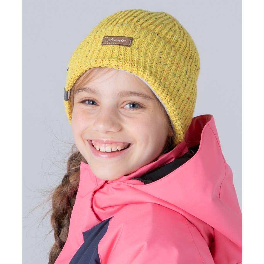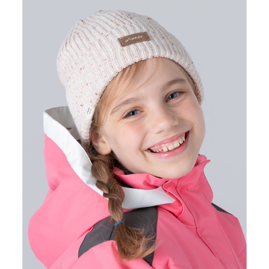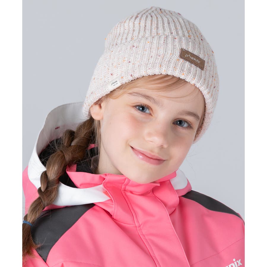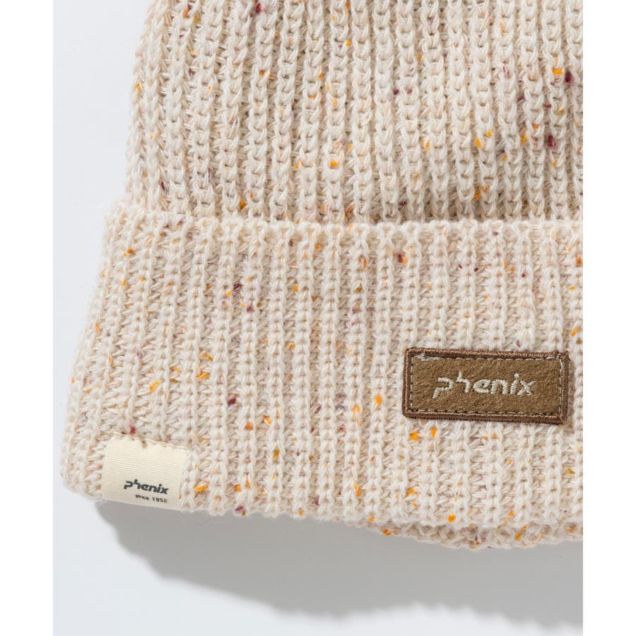 やさしい色合いと温かみのあるミックスネップ素材を使用した、女の子向けニットハット。前面にはphenixロゴのワッペンをあしらい、シンプルながらも可愛らしさを引き立てます。