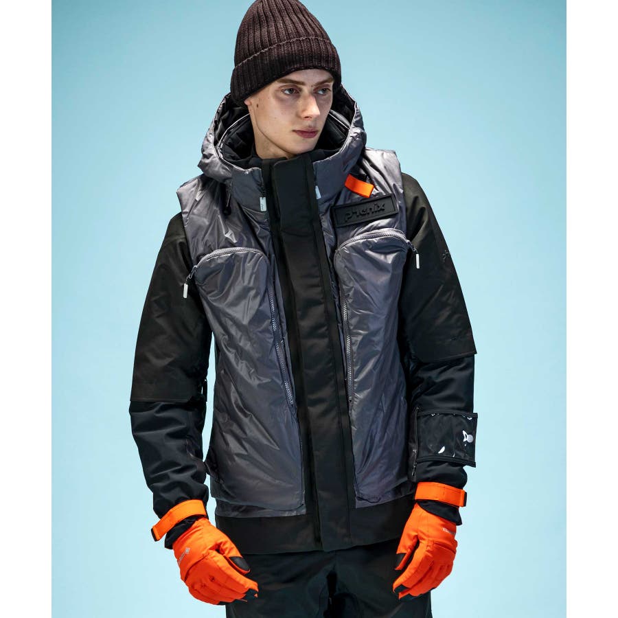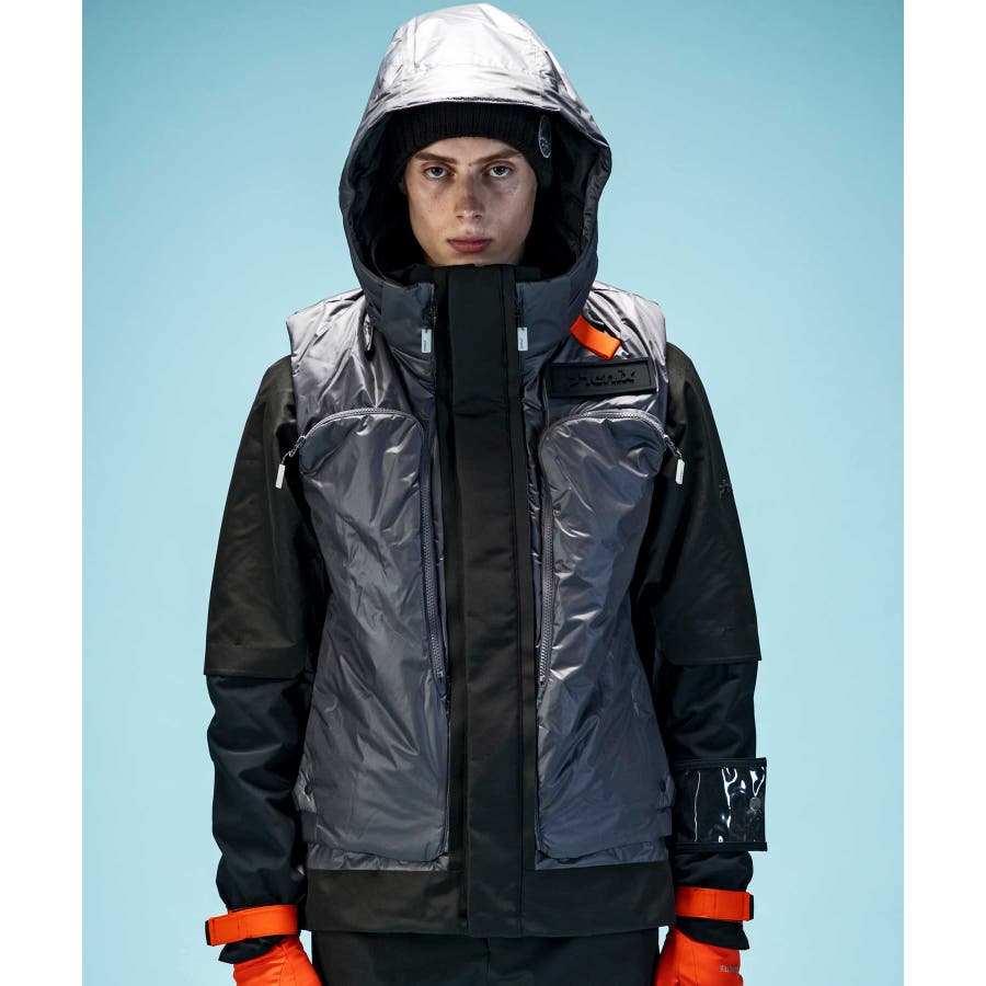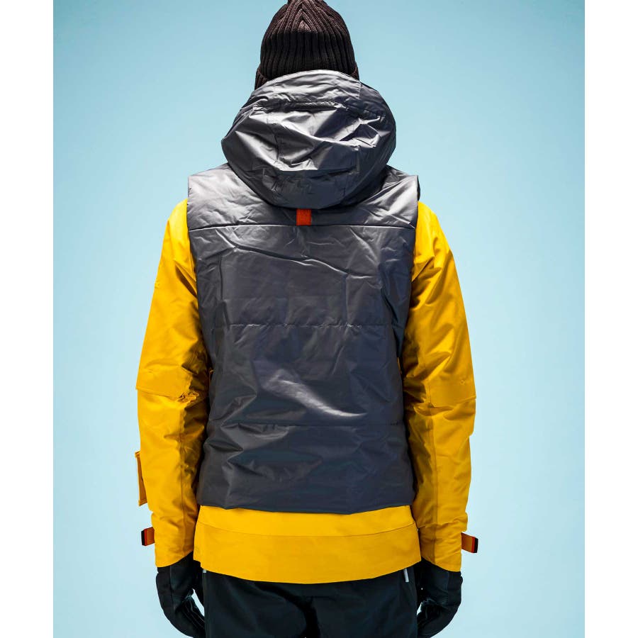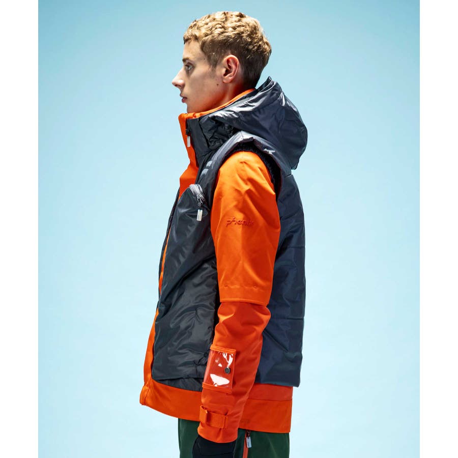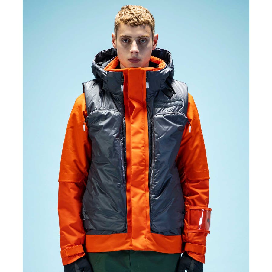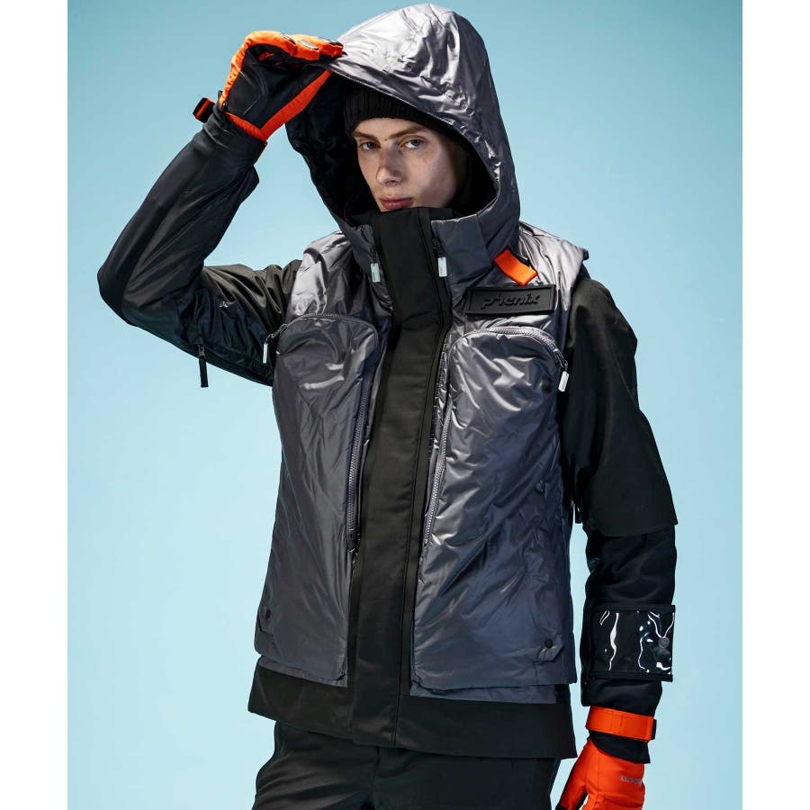 フードの取り外しが可能です。アウターとベストのどちらにも接続することができます。