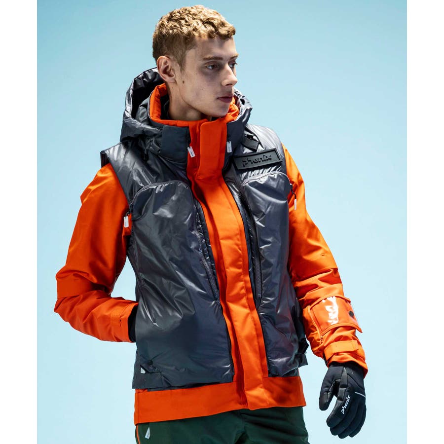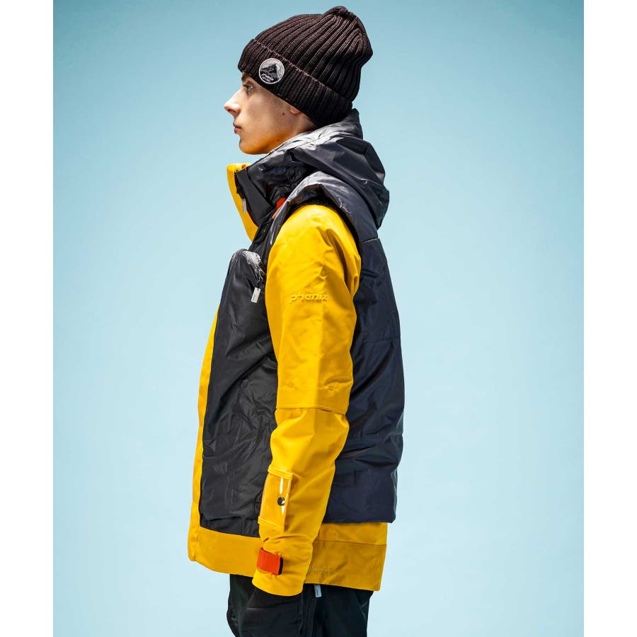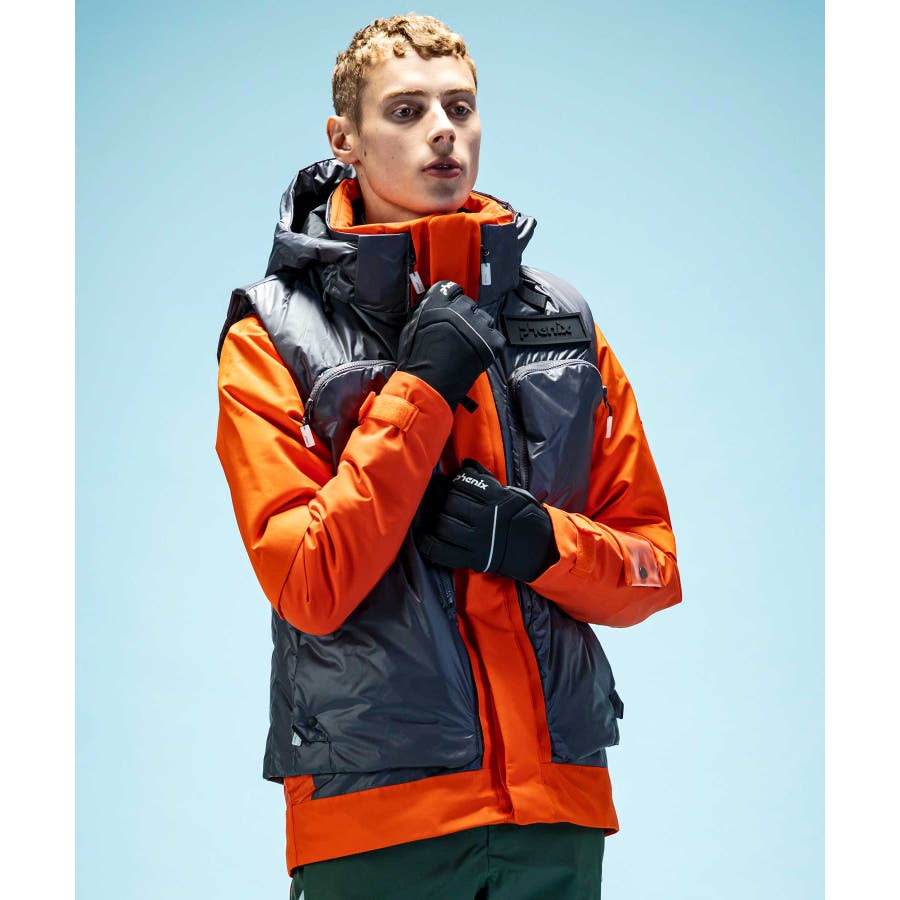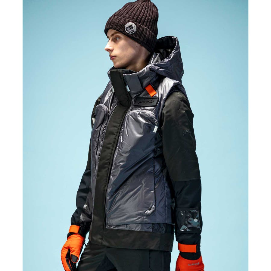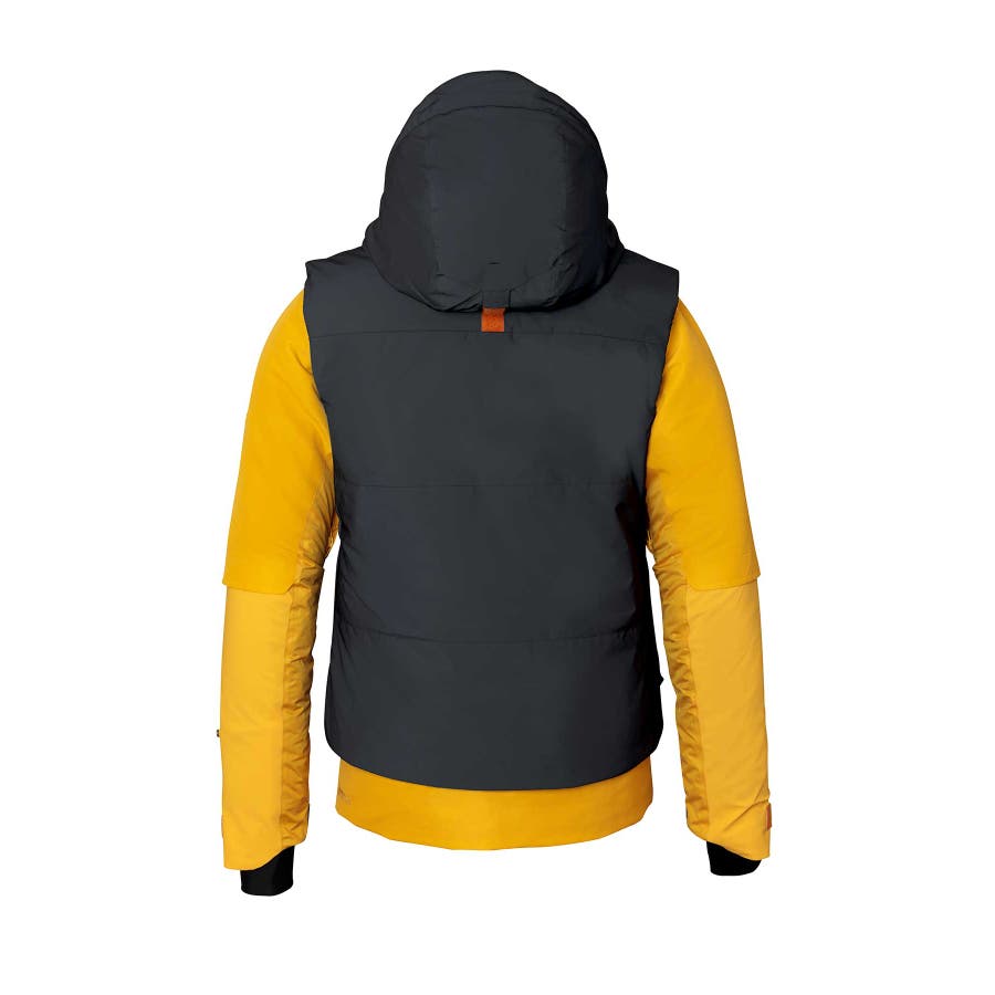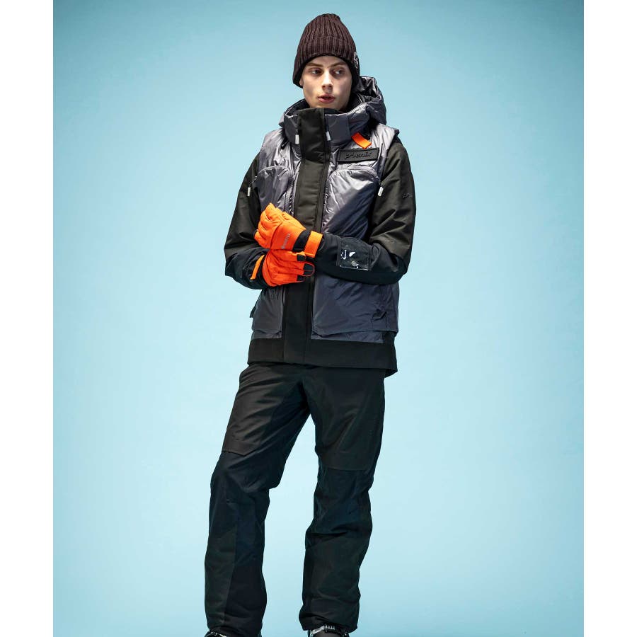 フードの取り外しが可能です。アウターとベストのどちらにも接続することができます。
