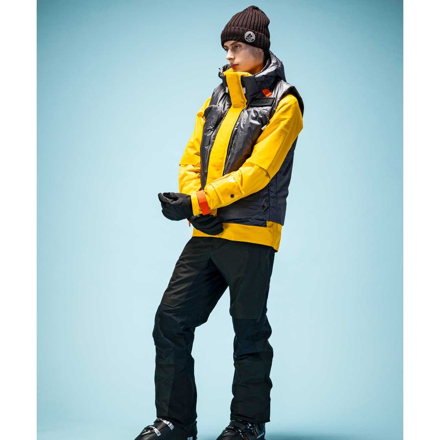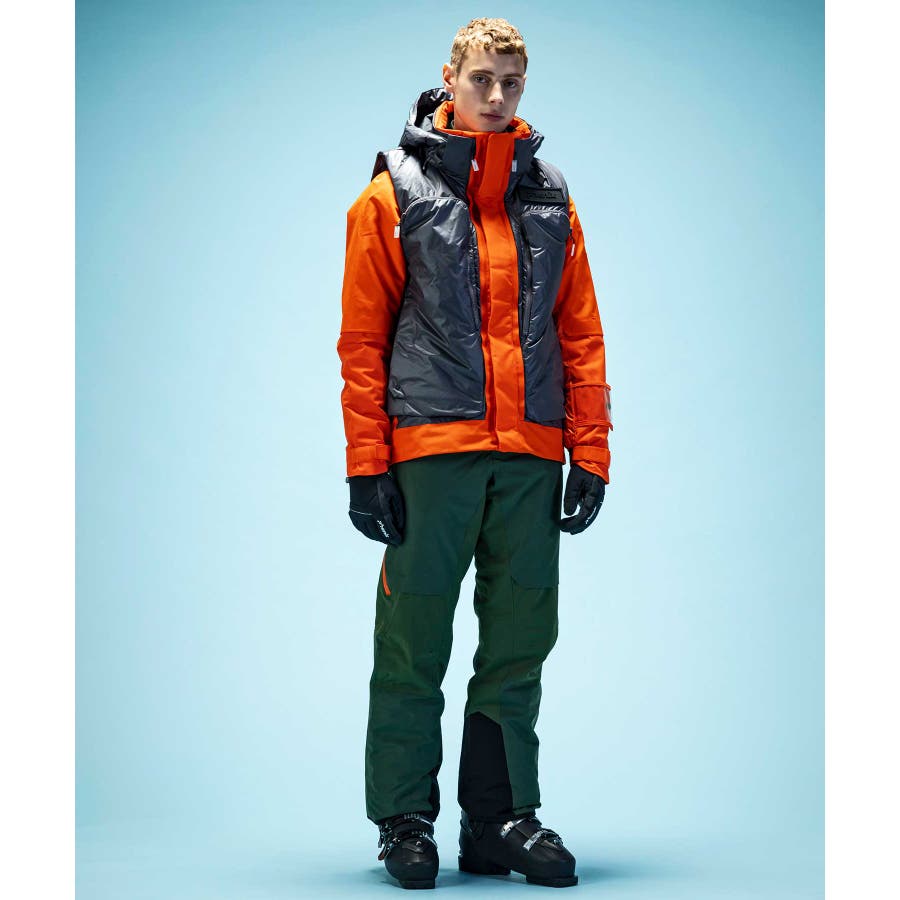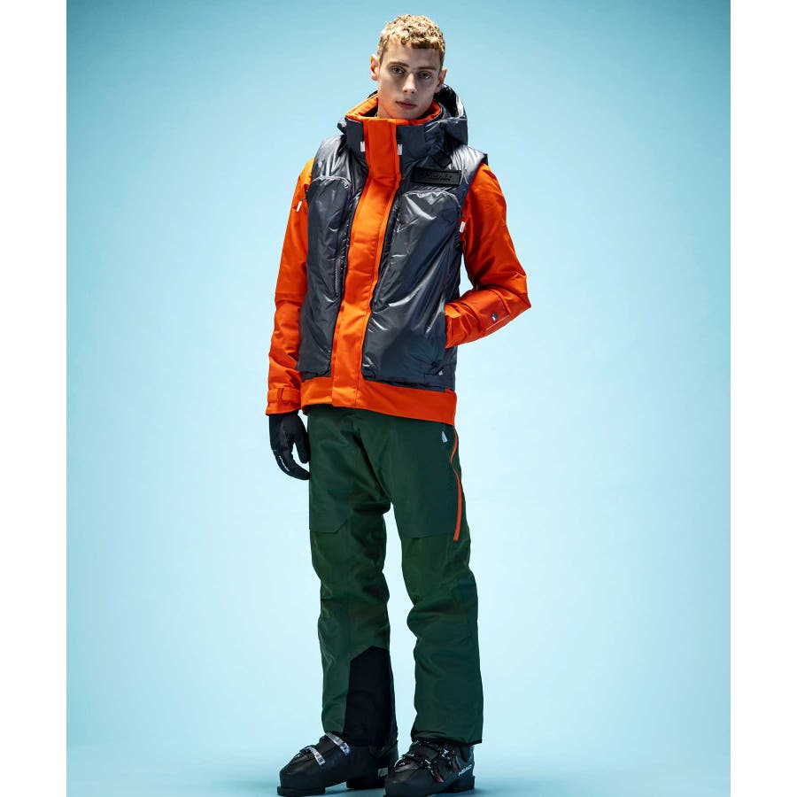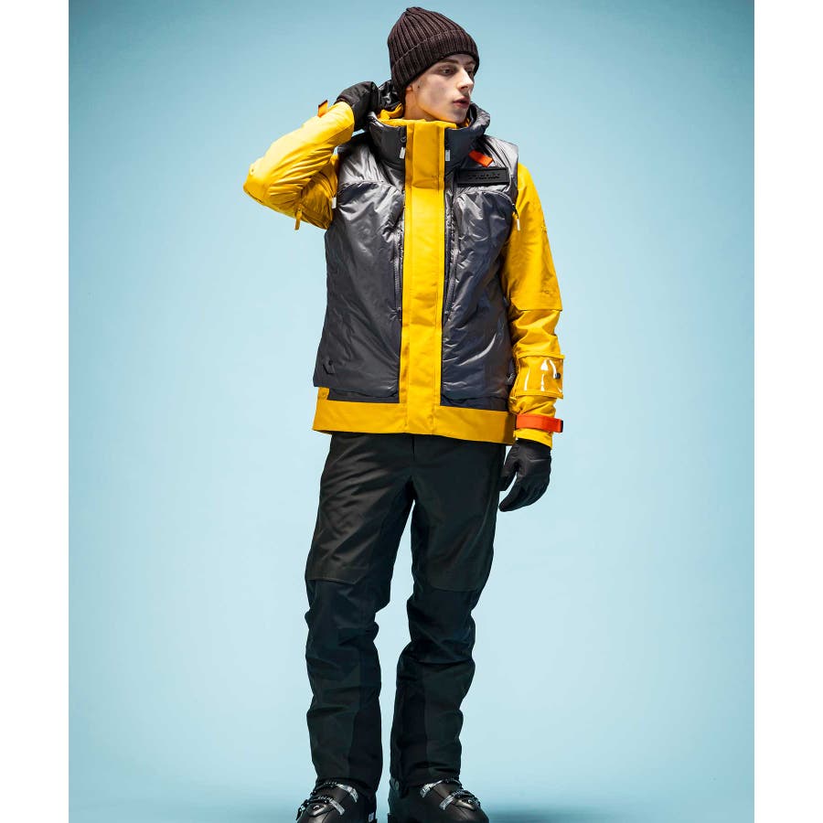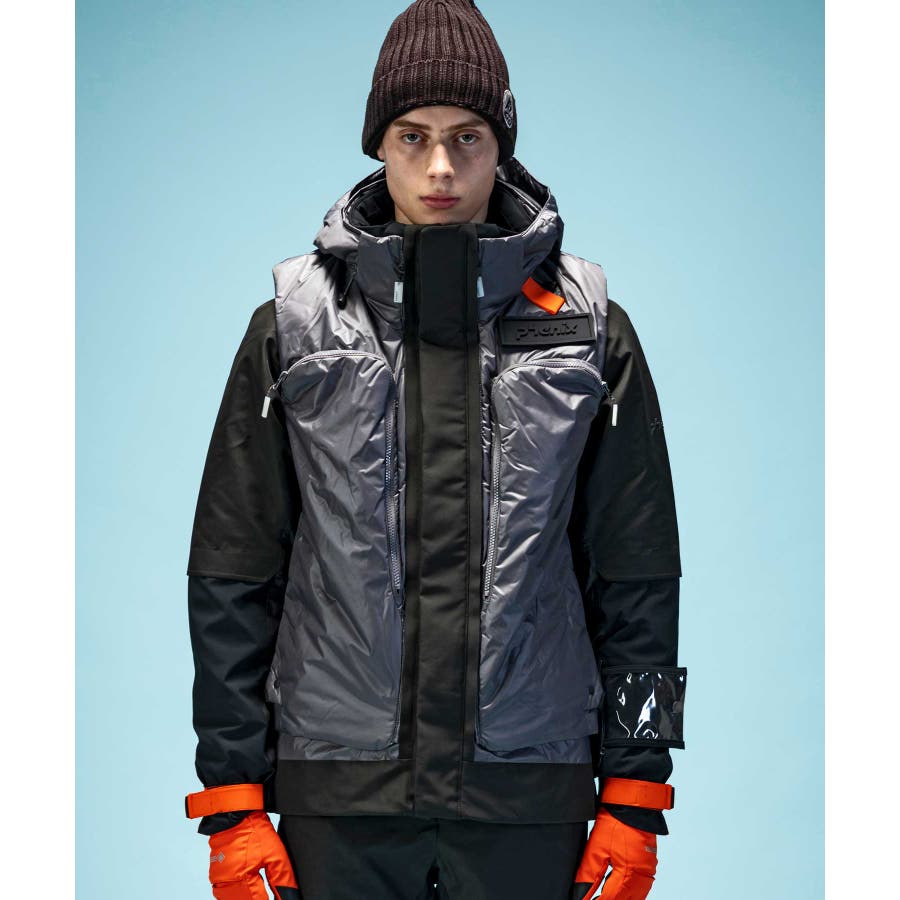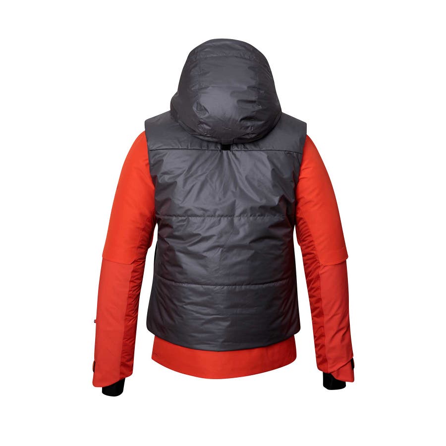 フードの取り外しが可能です。アウターとベストのどちらにも接続することができます。