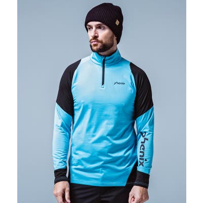 大胆な2トーンのカラーブロックが印象的なハーフジップインナー。
