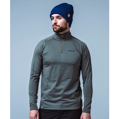 どのアイテムにも合わせやすい、シンプルで汎用性の高いハーフジップインナー。