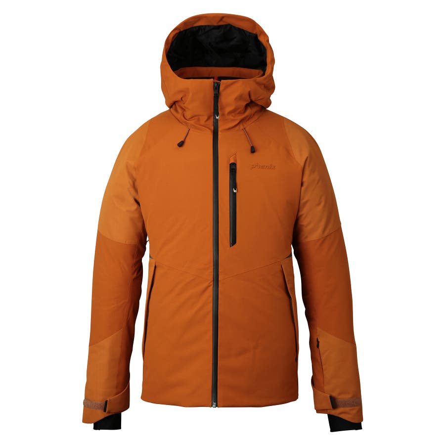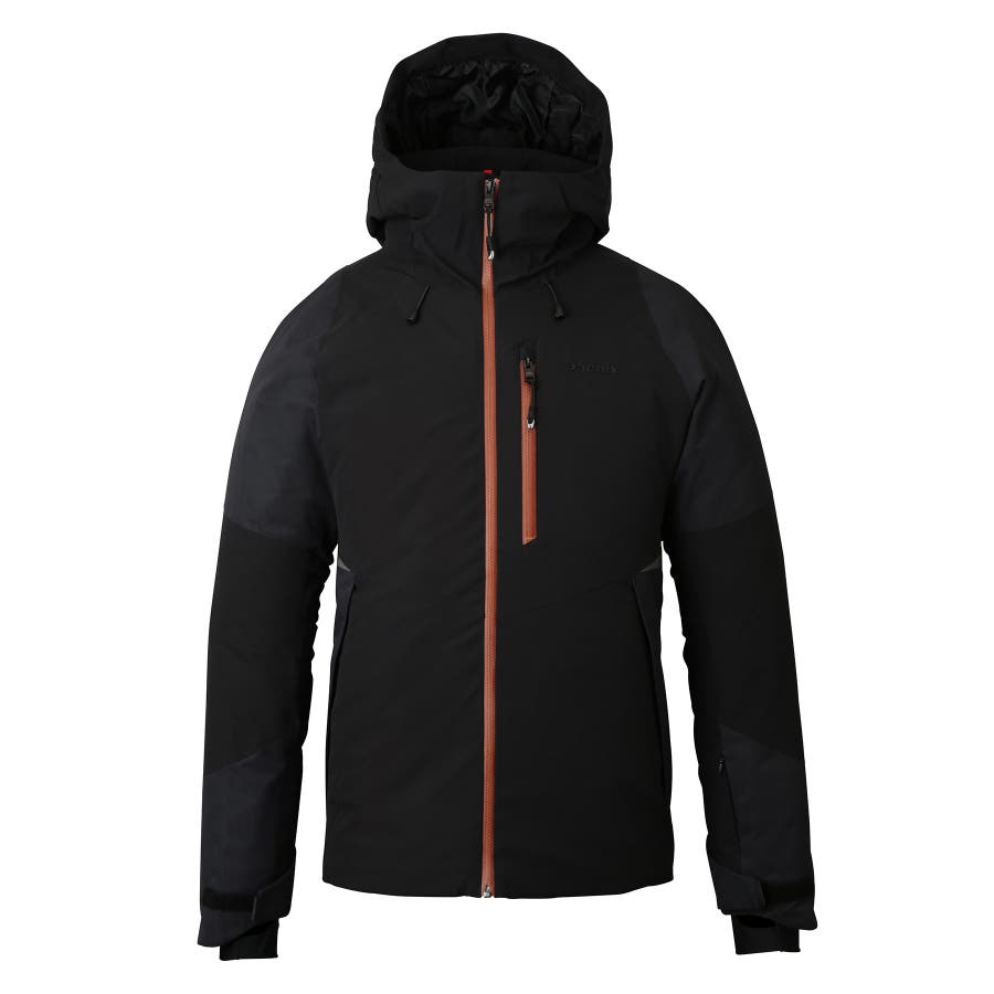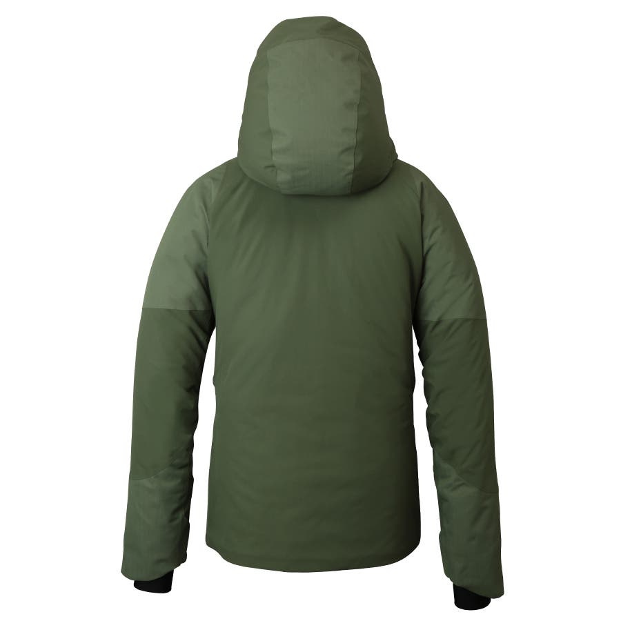 4wayストレッチタフタ2Lとヘリンボン2Lを組み合わせたボディ素材を使用し、動きやすさと上質な風合いを兼ね備えたスキージャケット。