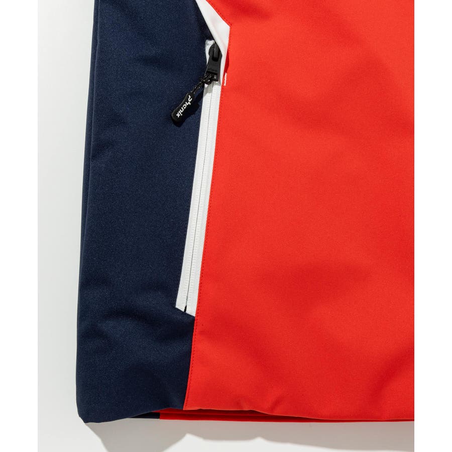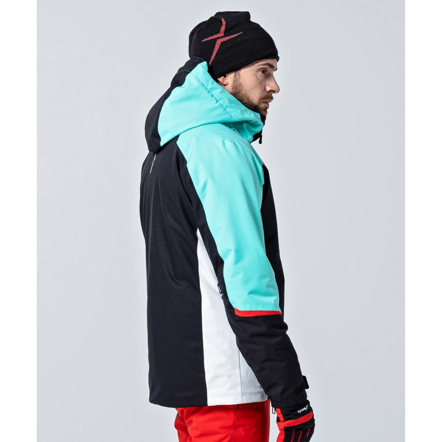 大胆なカラーブロックとトライアングルのカッティングが印象的なスキージャケット。