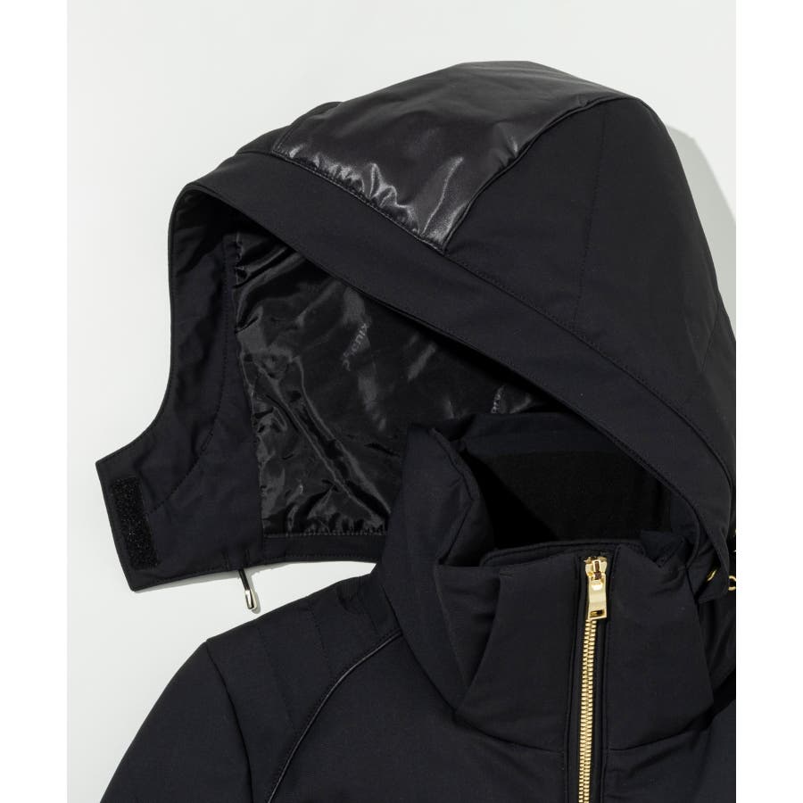 ステッチと胸元の異素材使いが特徴的なデザインが目を引く、レディース用ダウンジャケット。