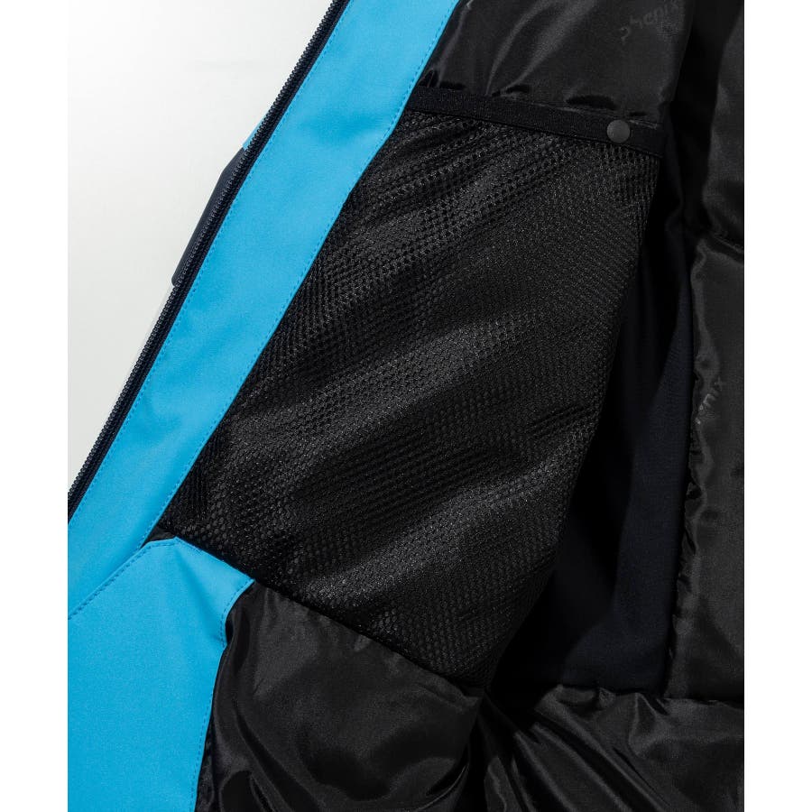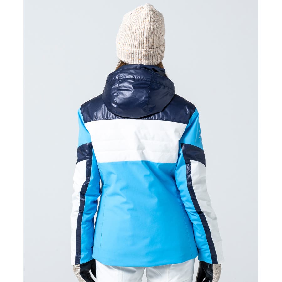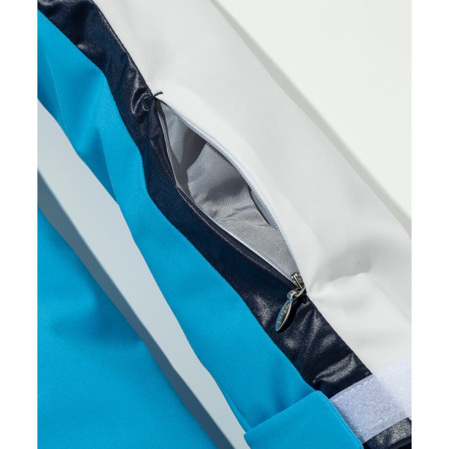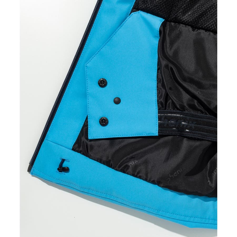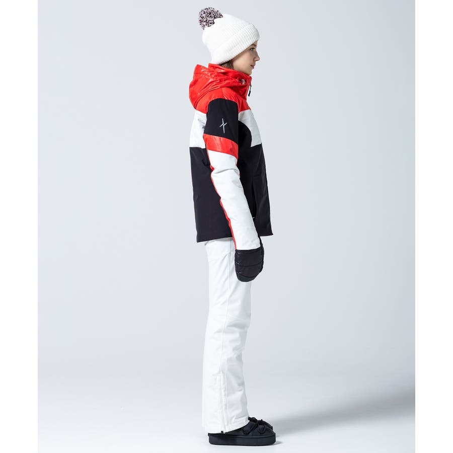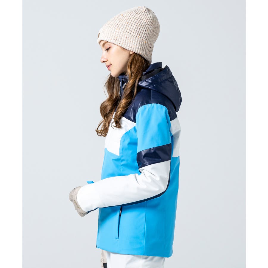 シャイニー素材をアクセントに取り入れた、スポーティーな配色が際立つスキージャケット。