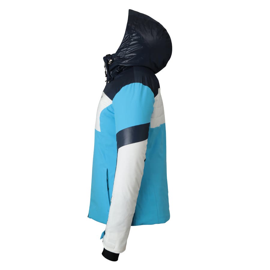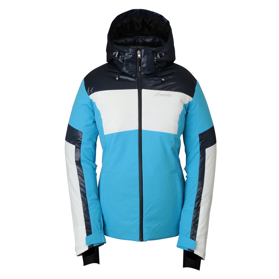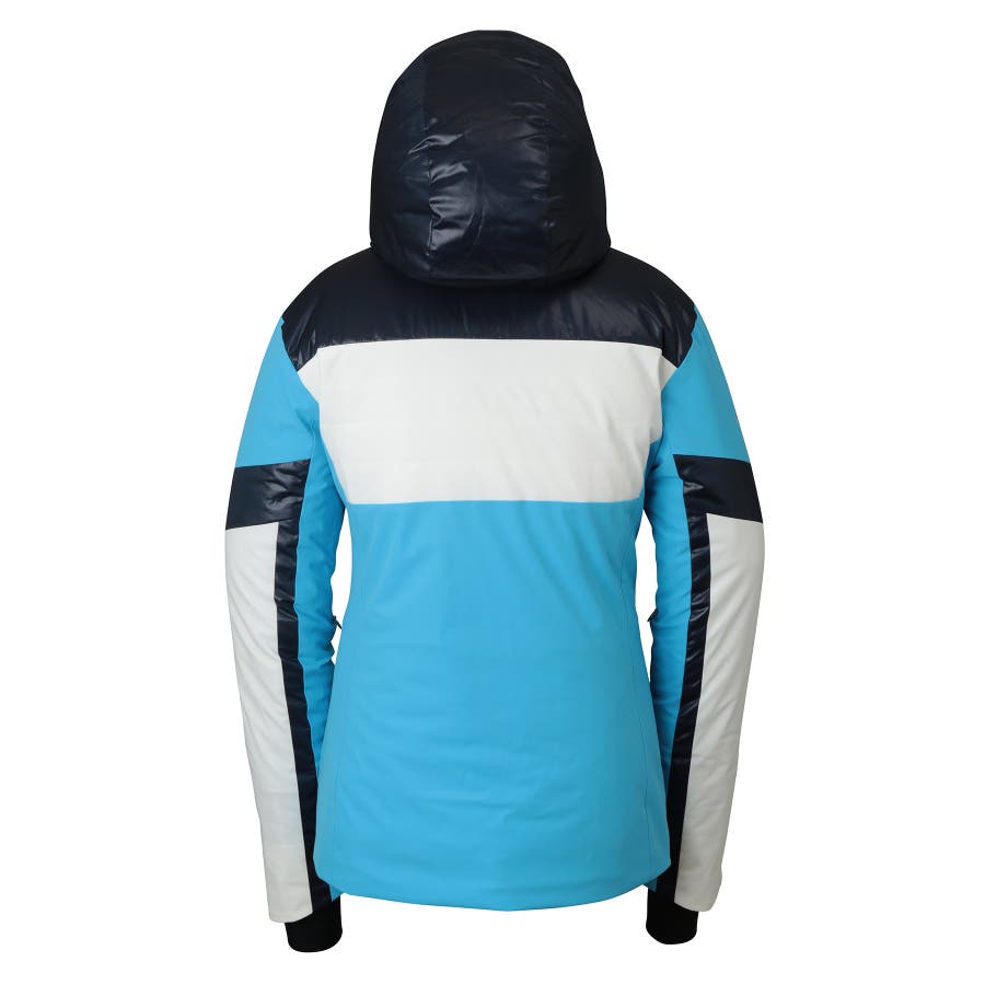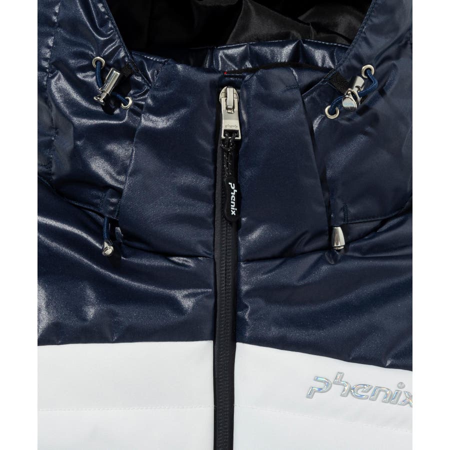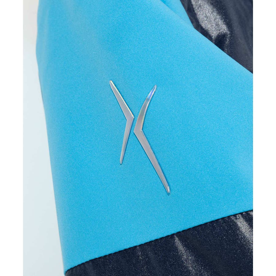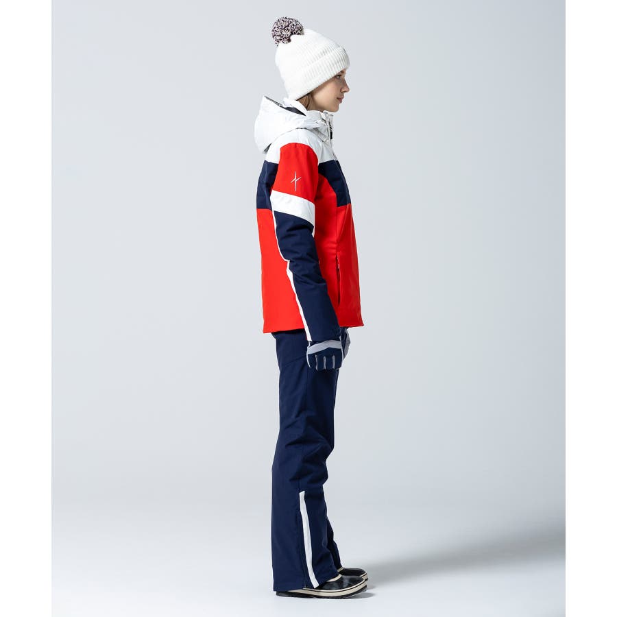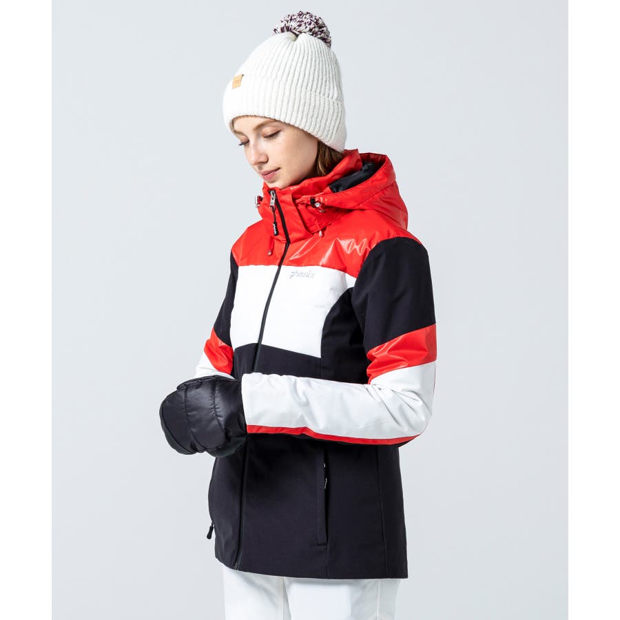シャイニー素材をアクセントに取り入れた、スポーティーな配色が際立つスキージャケット。