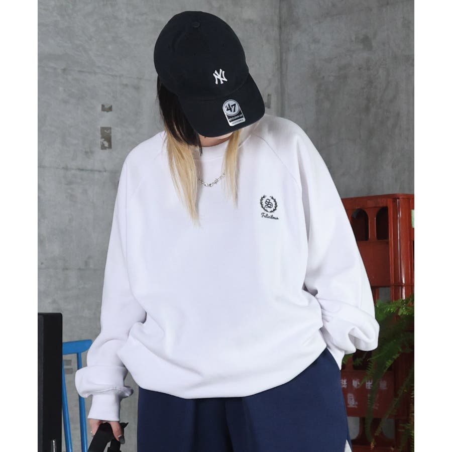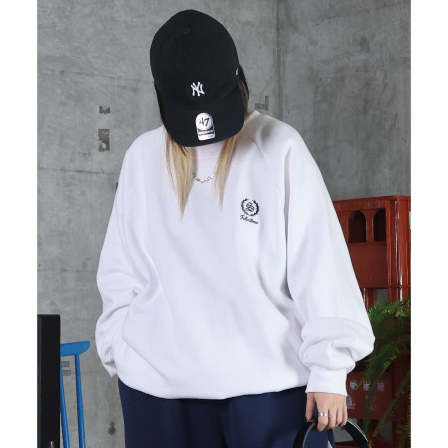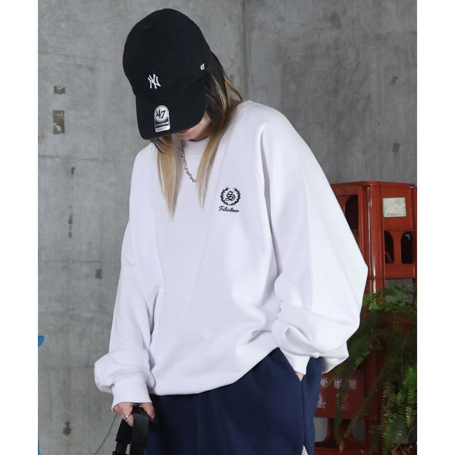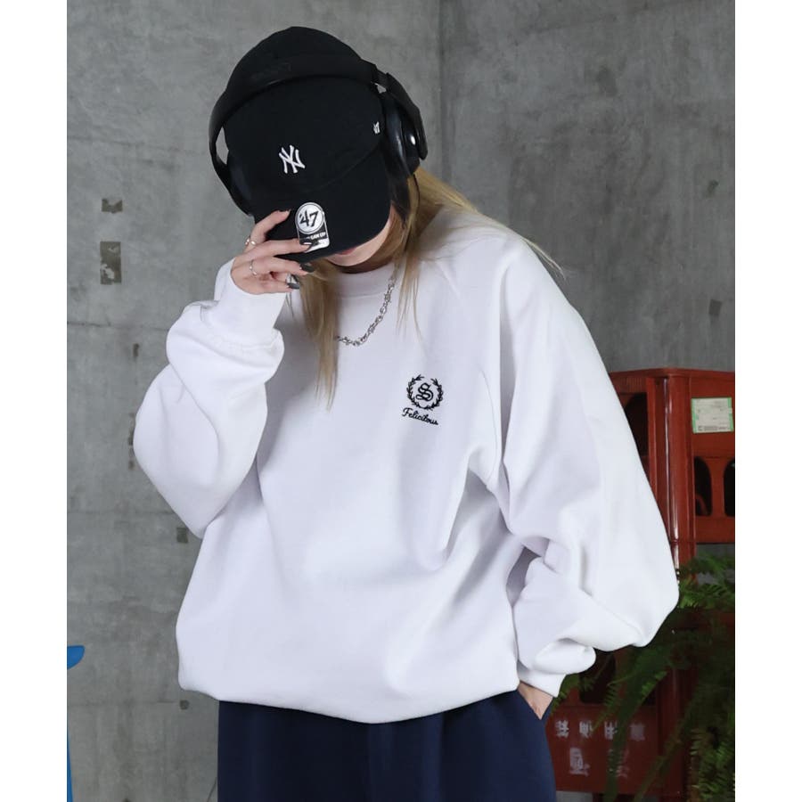 シンプルながらも旬のディテールを凝縮。ワンポイント刺繍と裾ドロストが魅力の裏起毛スウェット。