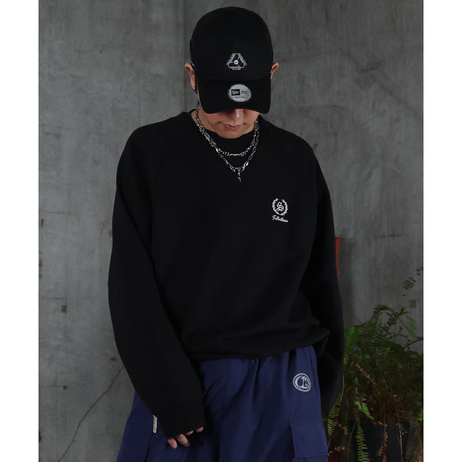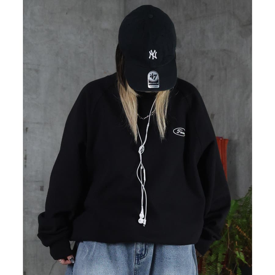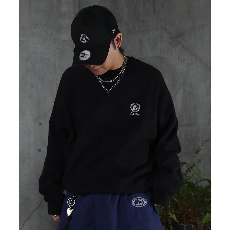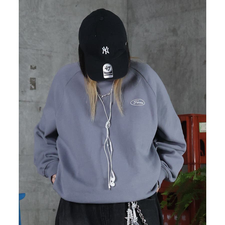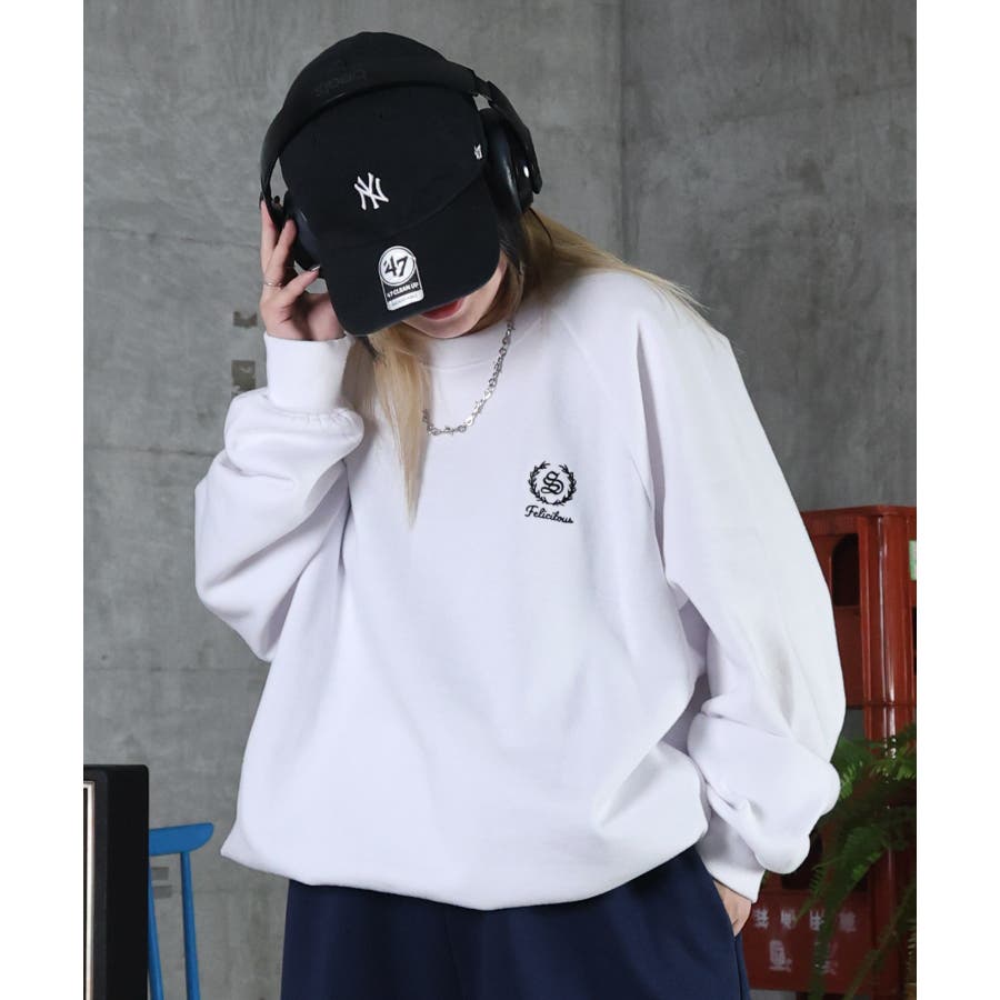 シンプルながらも旬のディテールを凝縮。ワンポイント刺繍と裾ドロストが魅力の裏起毛スウェット。