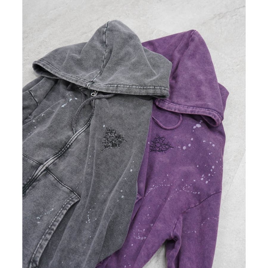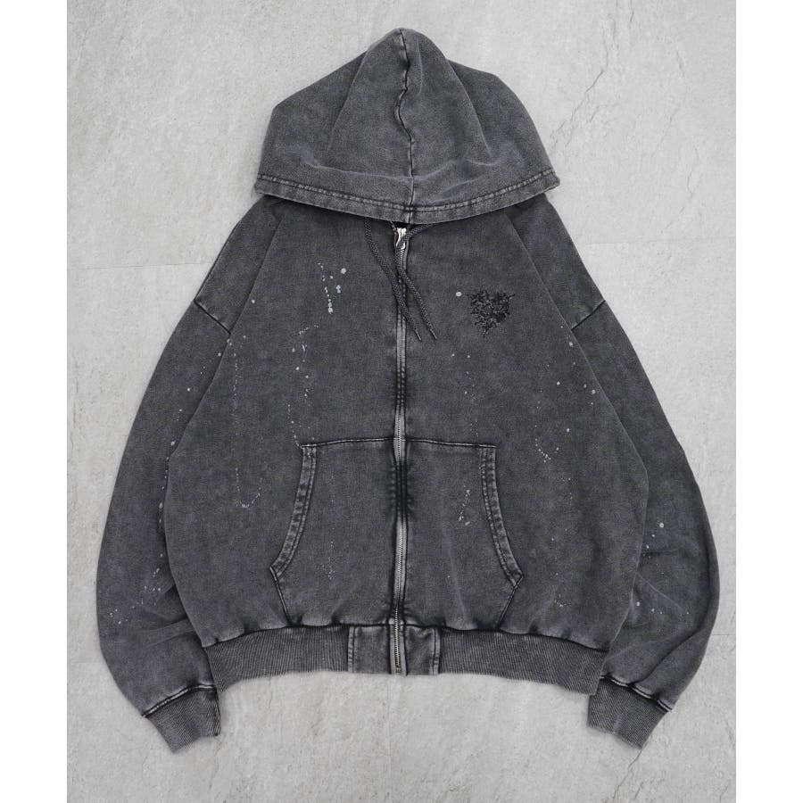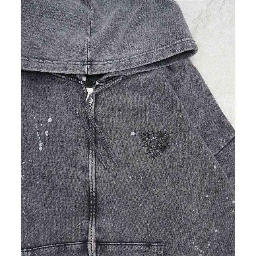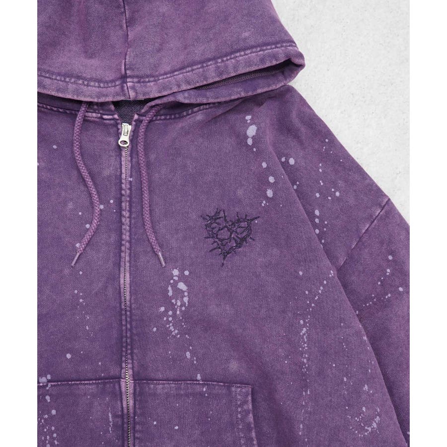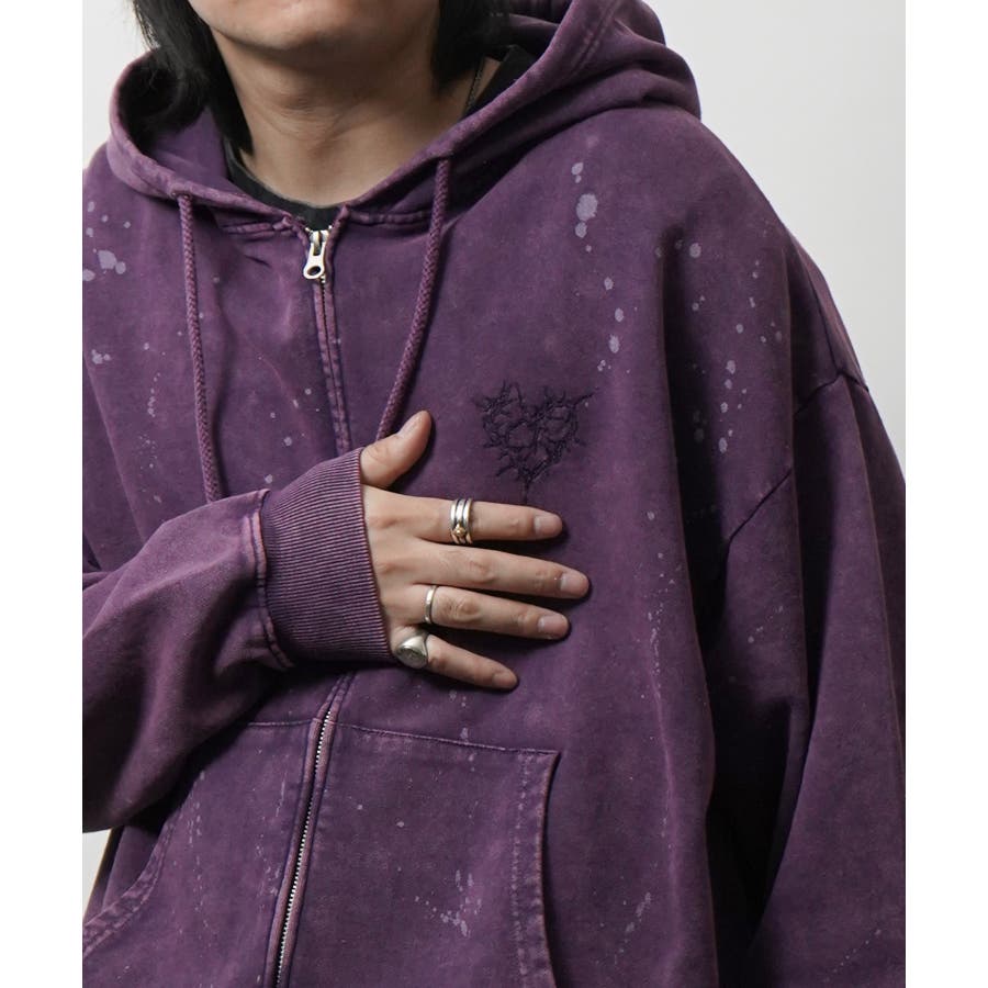 ヴィンテージ風配色とイバラで描いたハート柄が魅力のフルジッププルパーカー。
