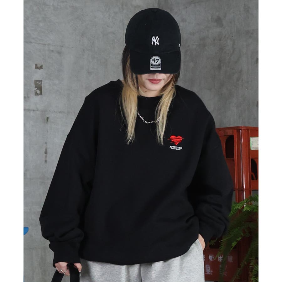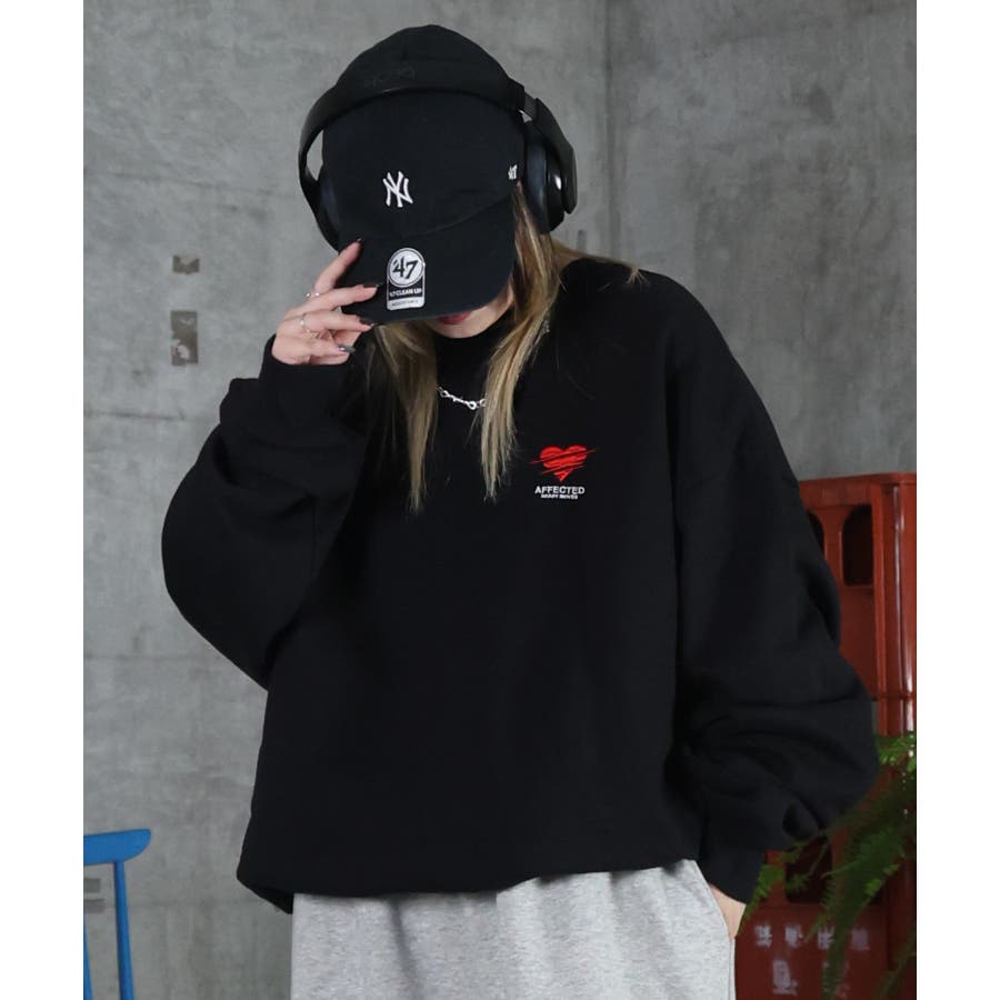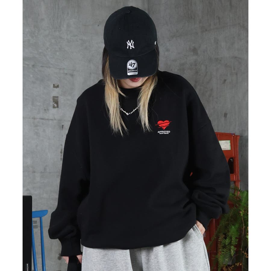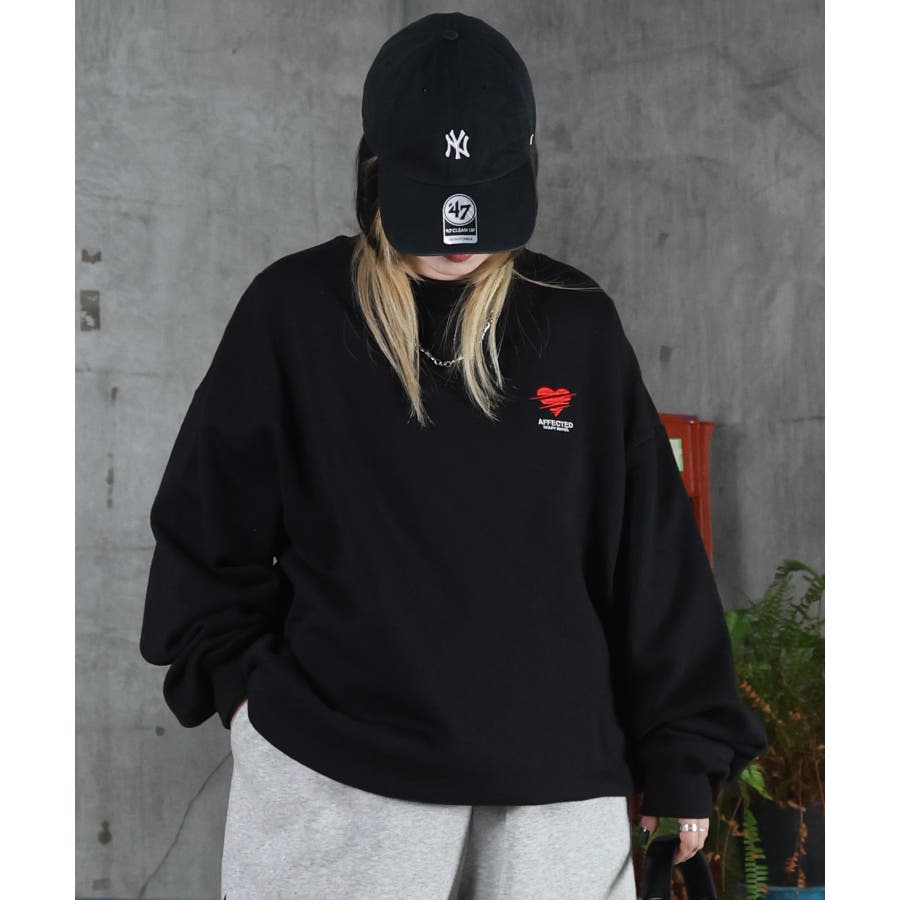 ハートのワンポイント刺繍がアクセントに。裏起毛スウェット。