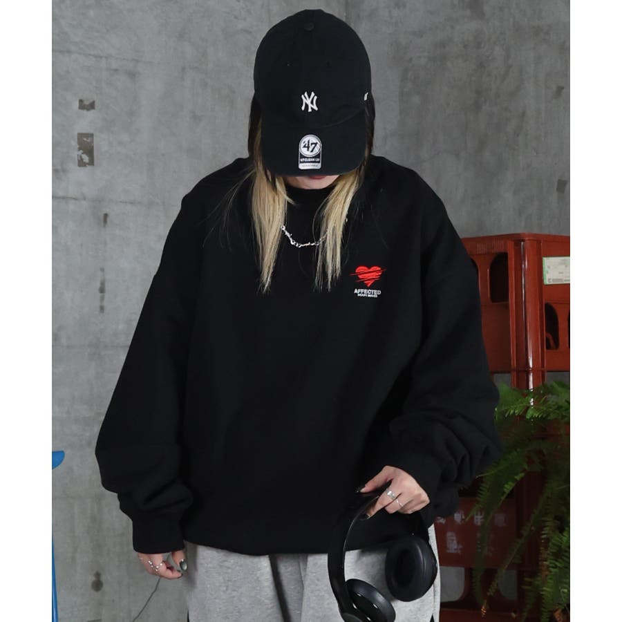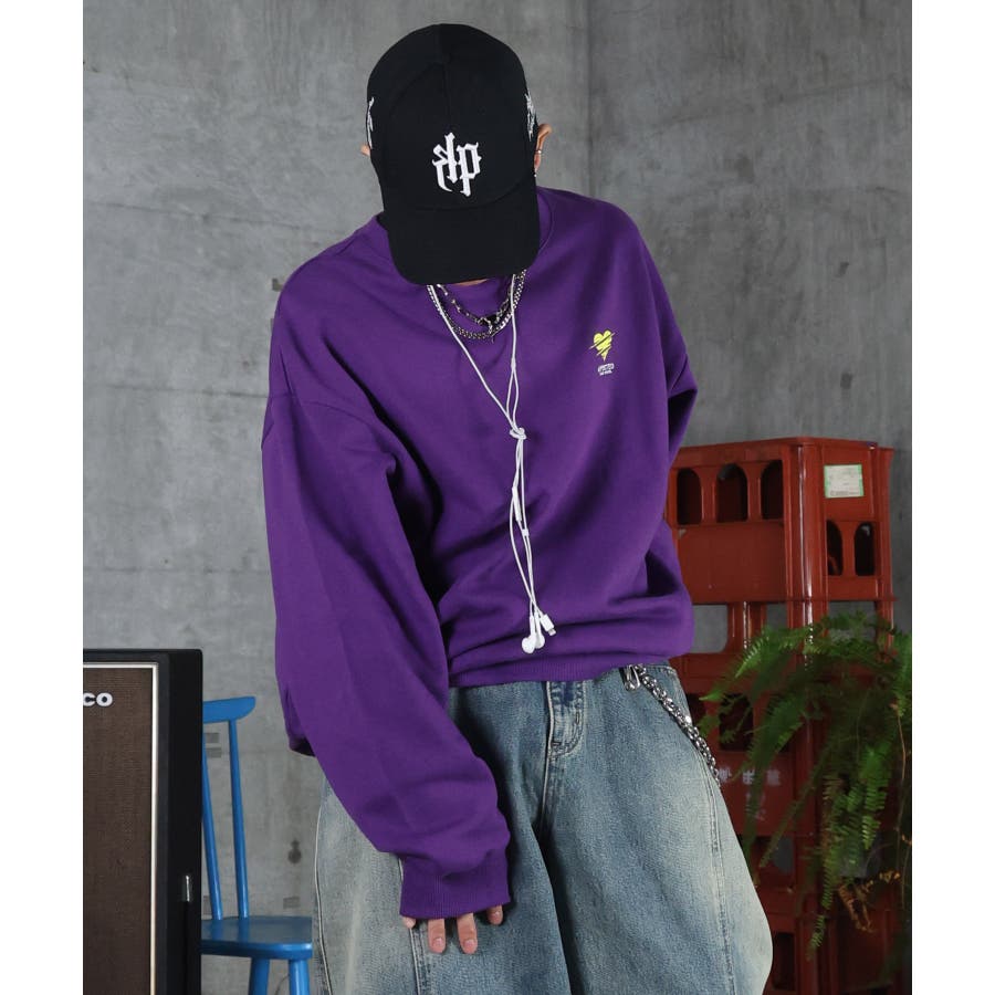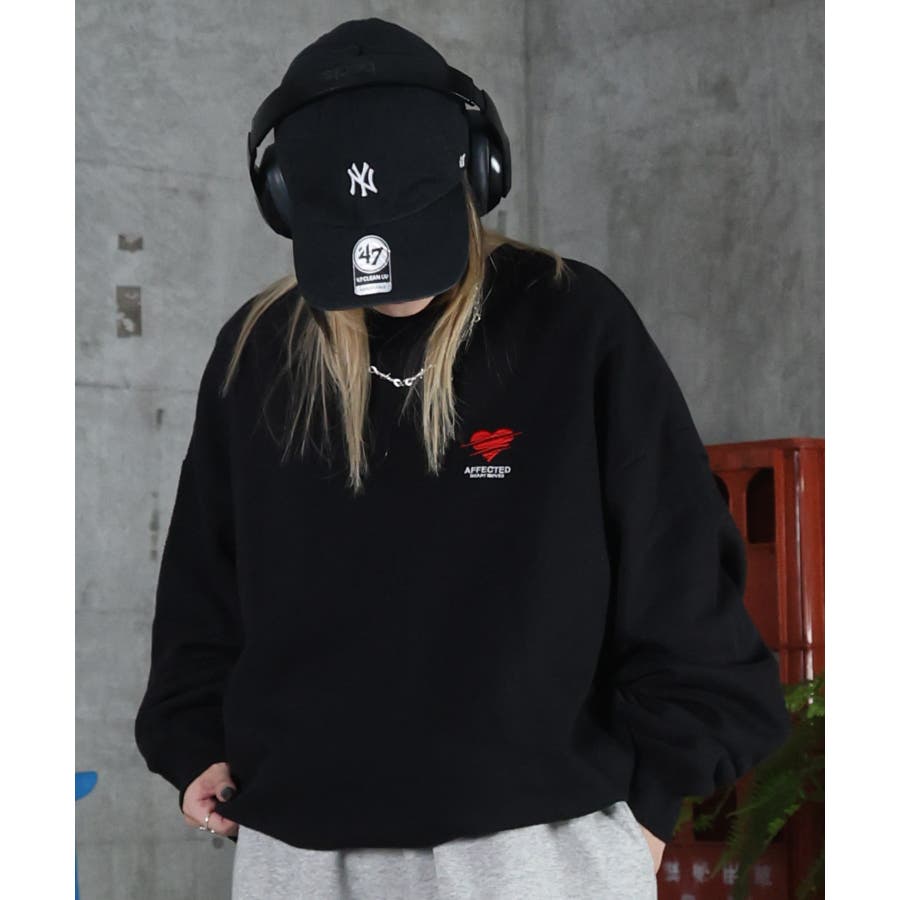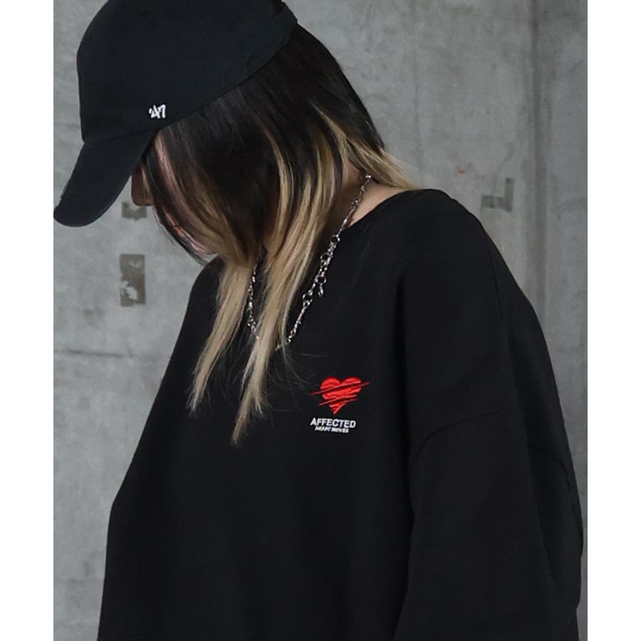 ハートのワンポイント刺繍がアクセントに。裏起毛スウェット。