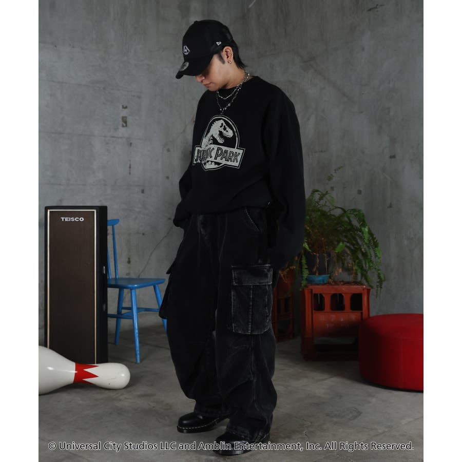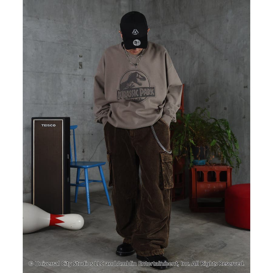 恐竜のシルエットとロゴを組み合わせたアイコニックなデザインは、映画の世界観をそのまま感じさせ、着こなしの主役になります。