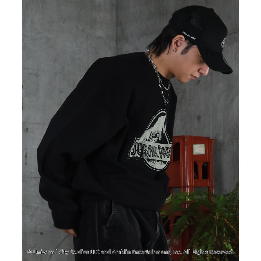 世界中を熱狂させたあのSFアドベンチャー映画『Jurassic Park』の公式ロゴを大胆にあしらったスウェット。