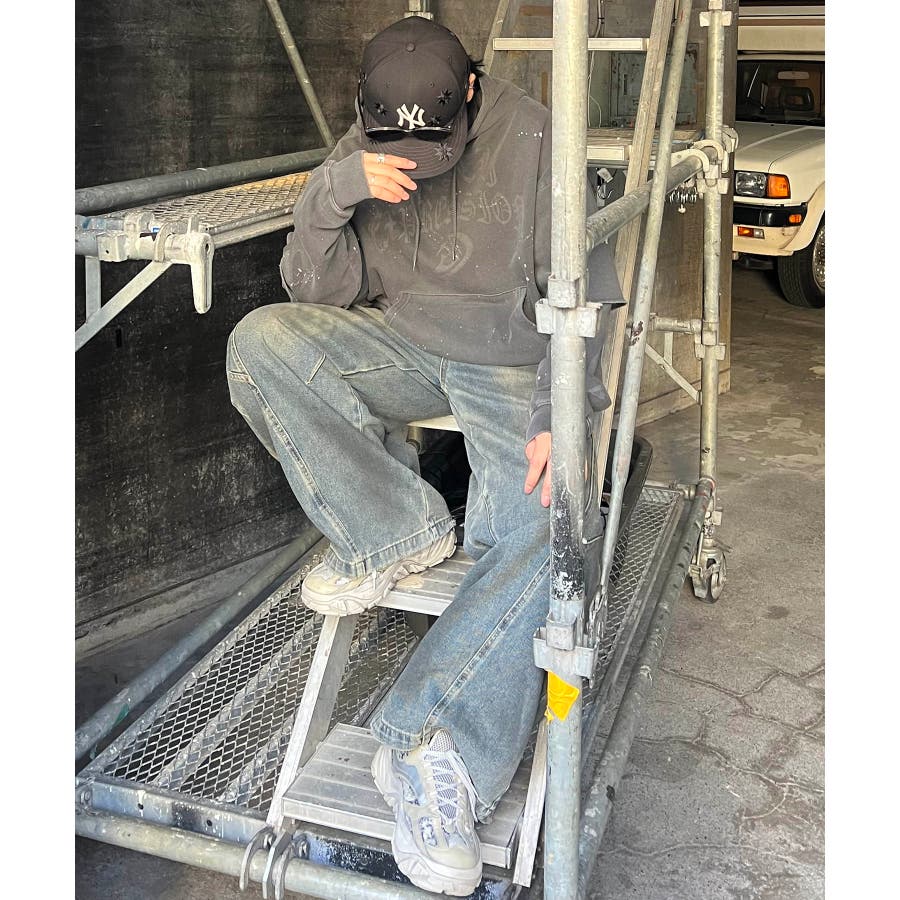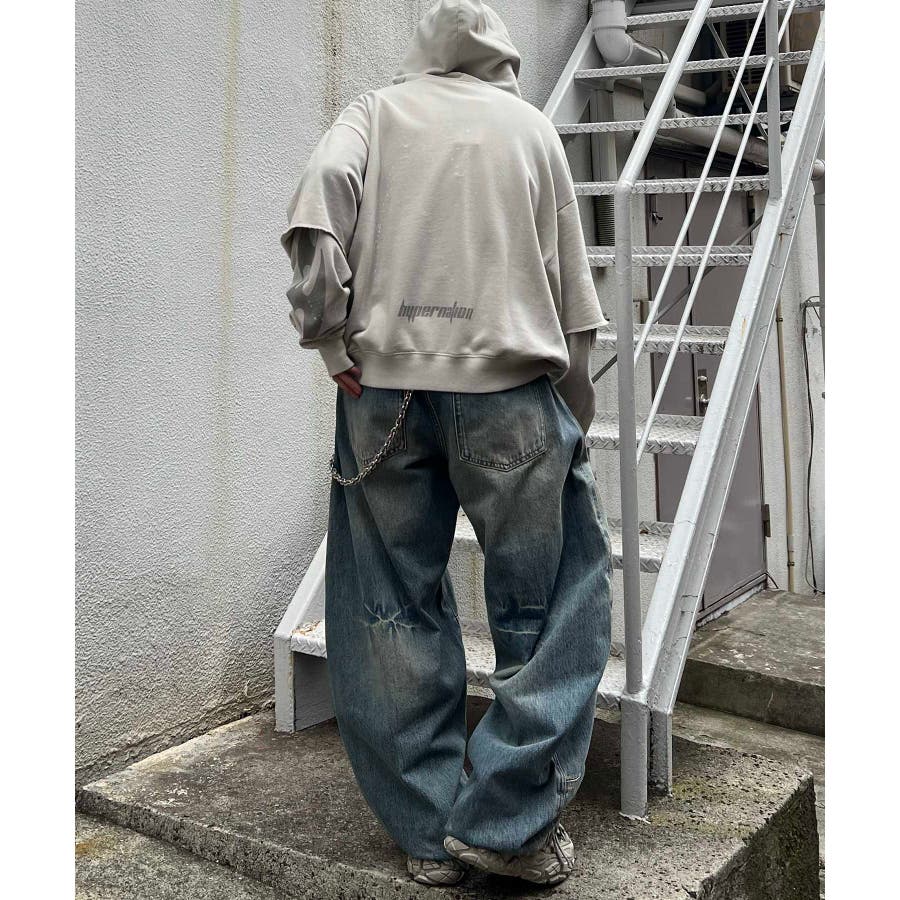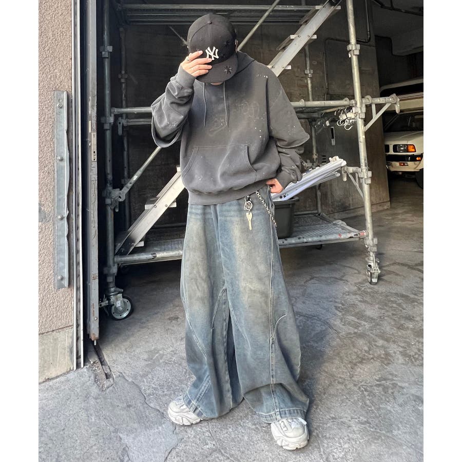 フリンジデニム、オーバーダイデニムやダメージデニムなどと合わせることでトレンドのグランジカジュアルスタイルも。