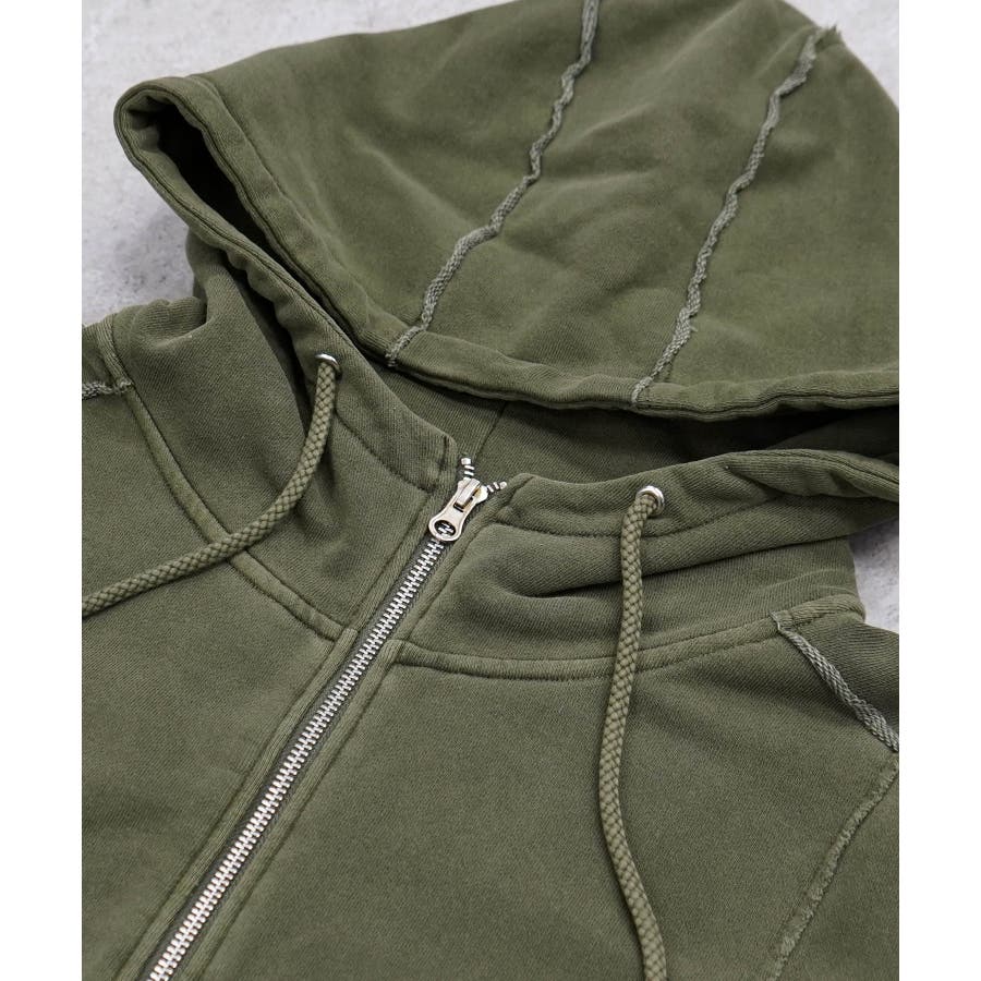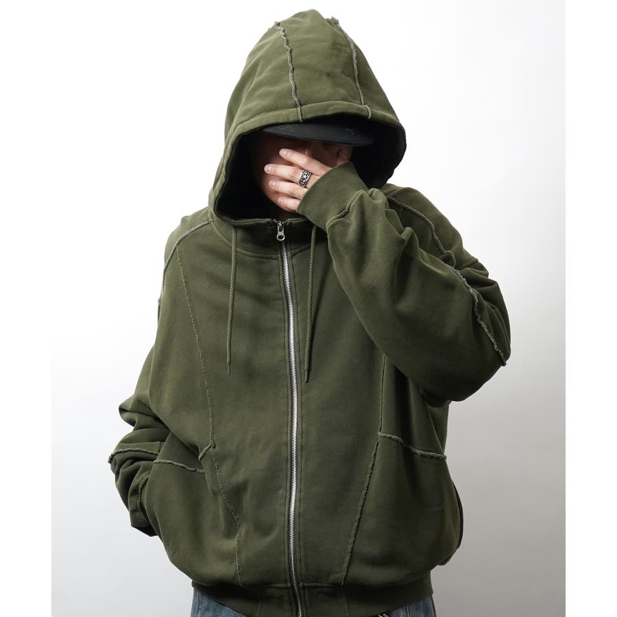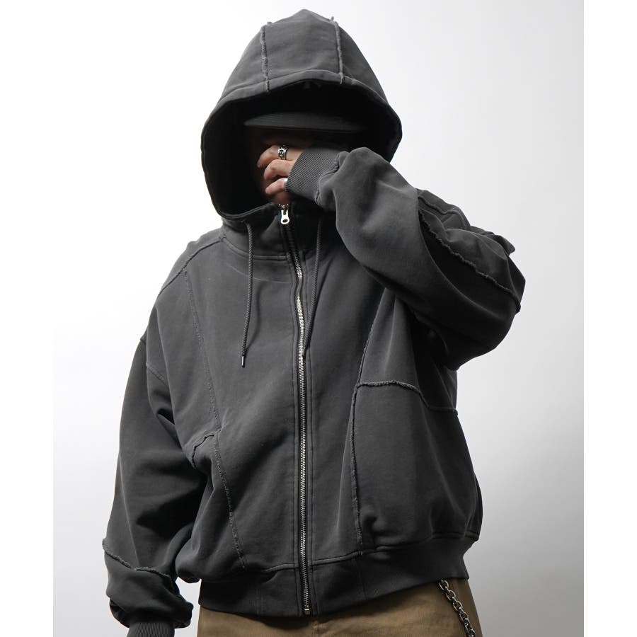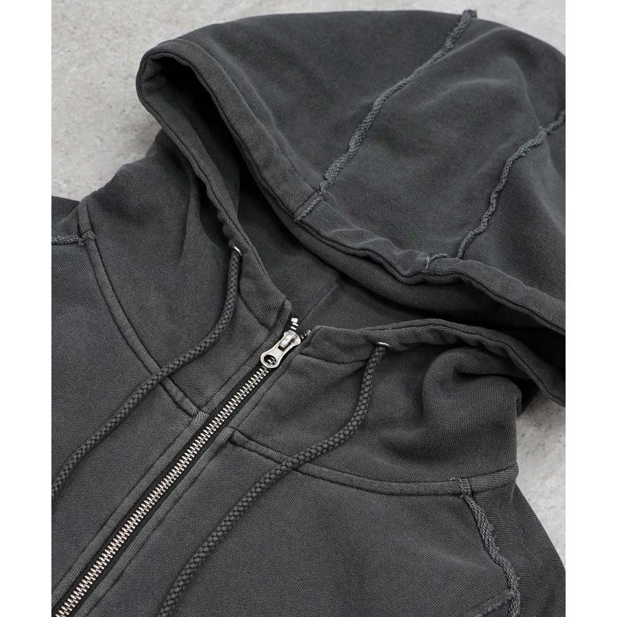 Y2Kストリートの主役。大胆なカットオフ切替が際立つフルジップパーカー。