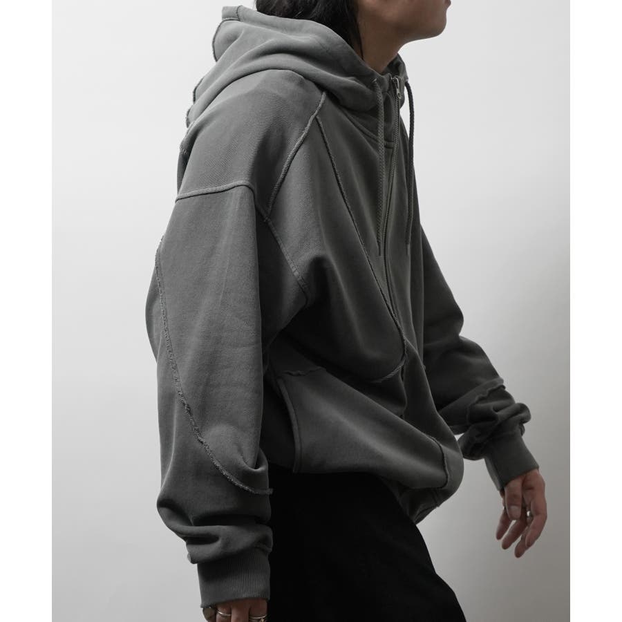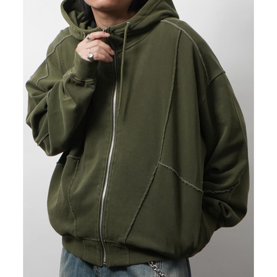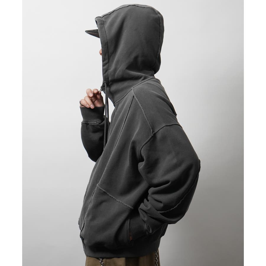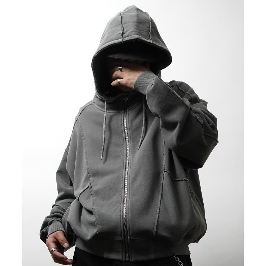 Y2Kストリートの主役。大胆なカットオフ切替が際立つフルジップパーカー。
