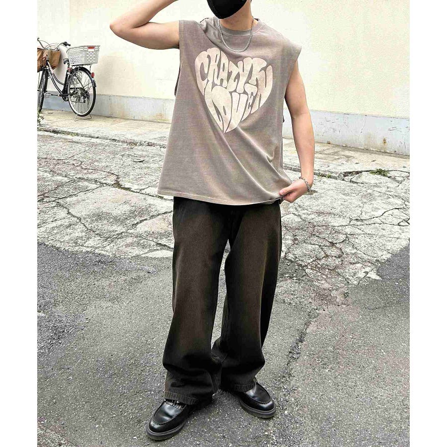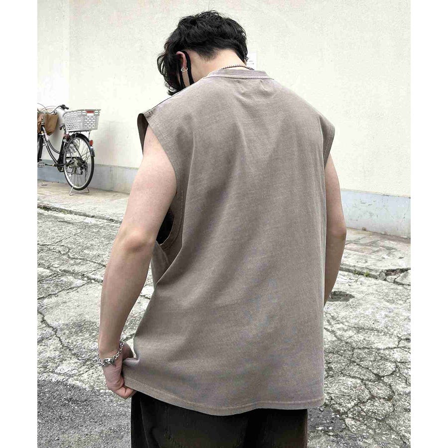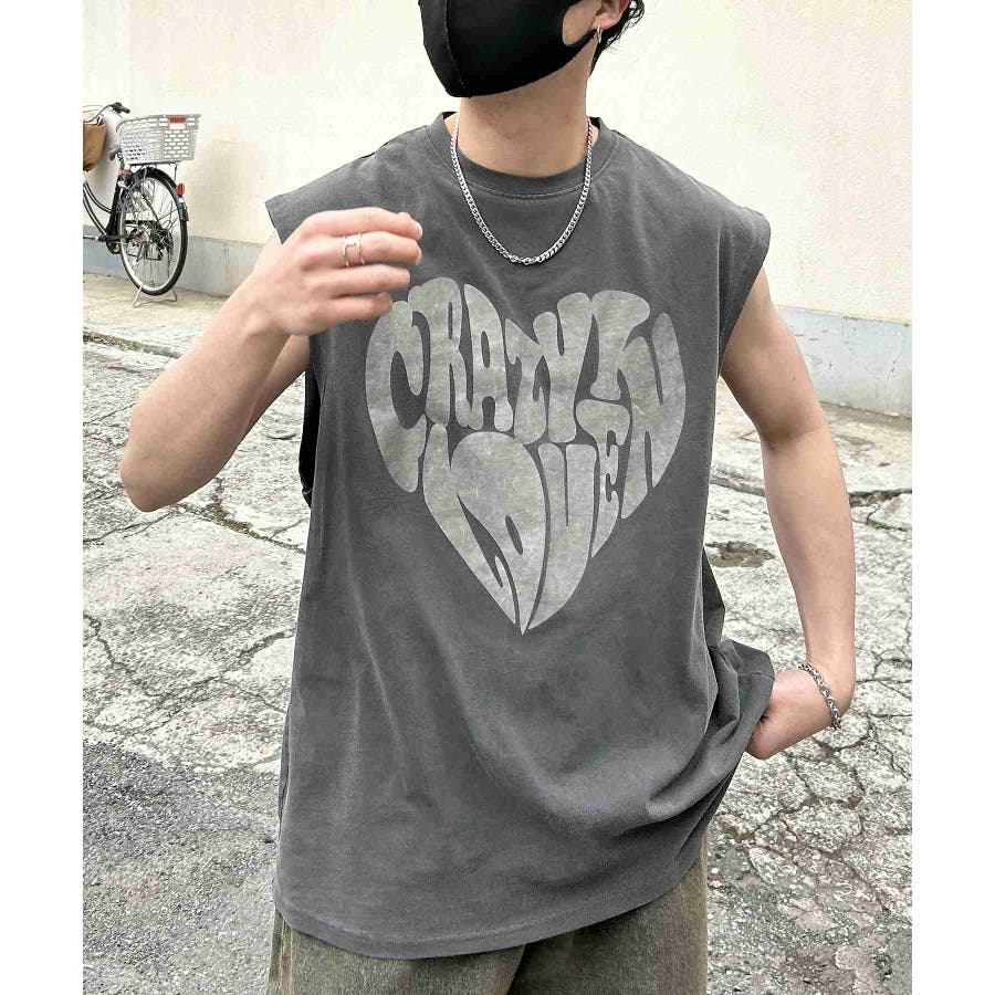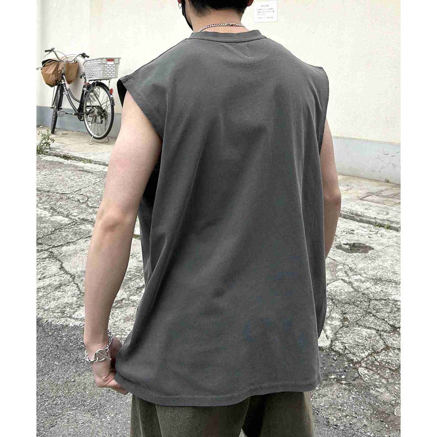 グランジカジュアルを彷彿とさせるヴィンテージライクなプリントノースリーブカットソー。