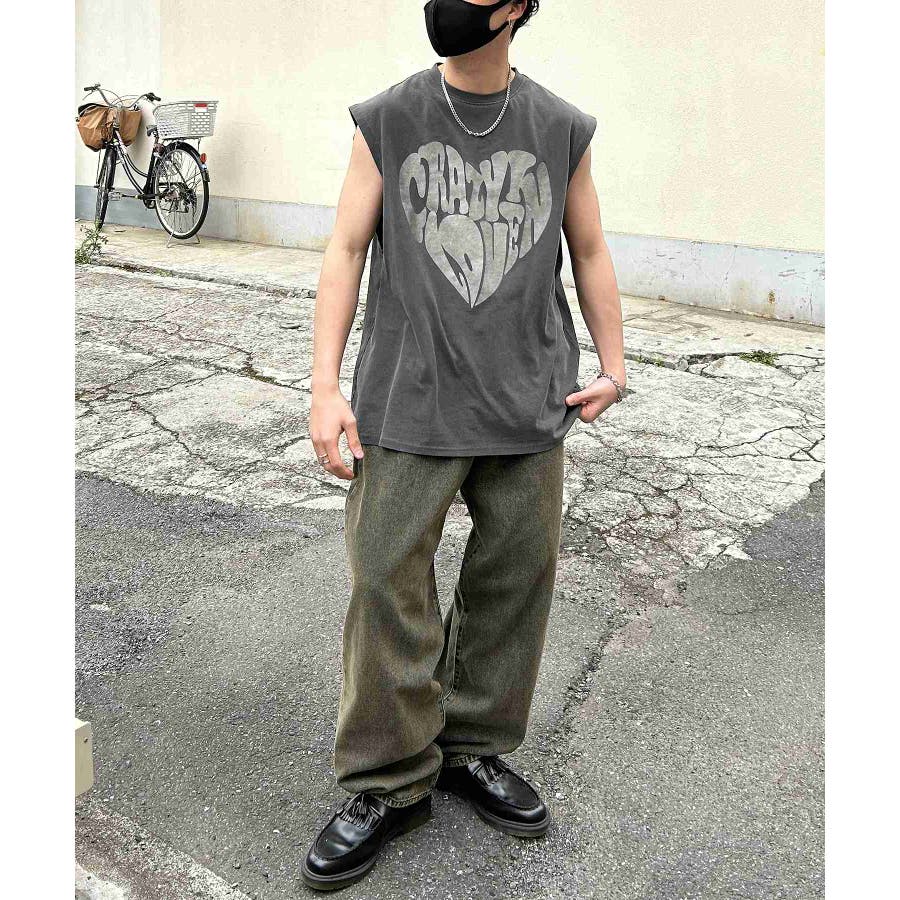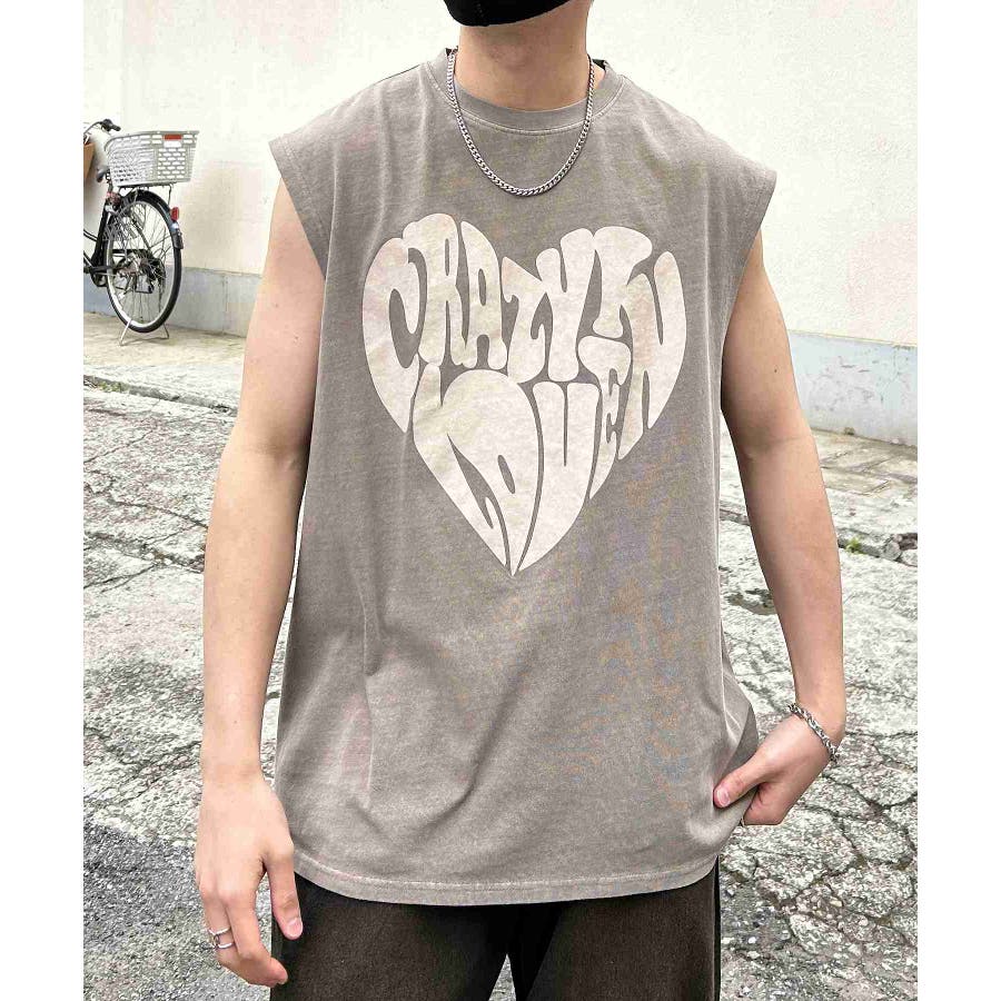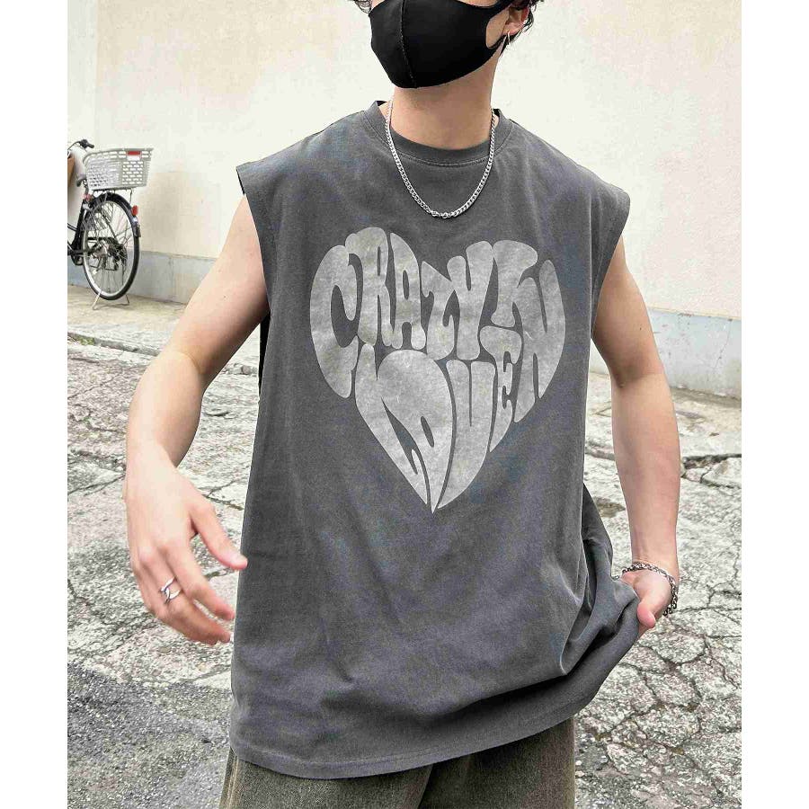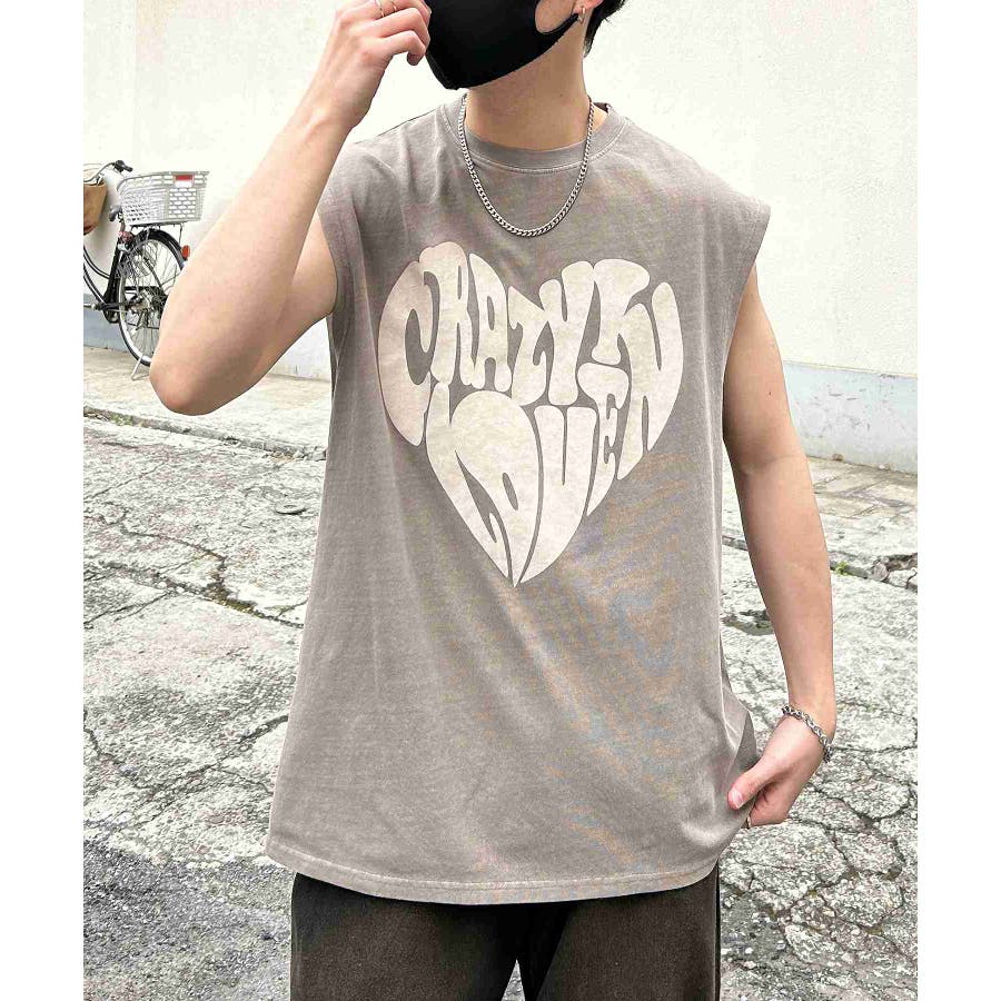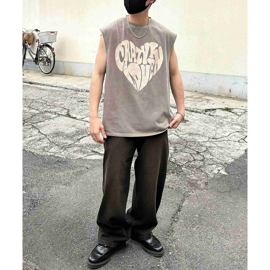 グランジカジュアルを彷彿とさせるヴィンテージライクなプリントノースリーブカットソー。
