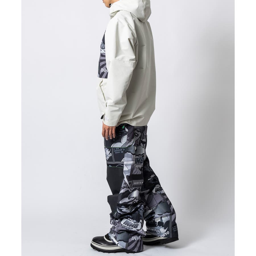 パイピングを効かせたシンプルなシルエットに、Inhabitantの歴代グラフィックを再編集した大胆なデザインを前面に配置。
