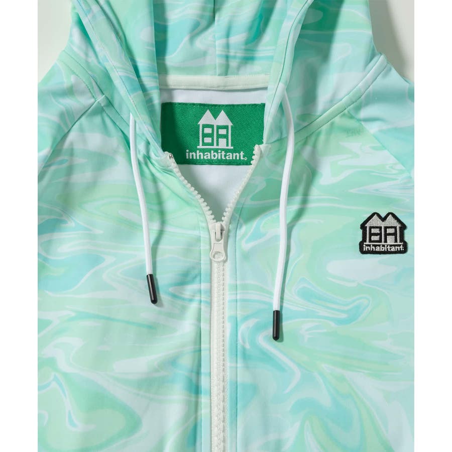 インハビタントオリジナルの水面柄、よく見るとinhabitantと文字がところどころに入っています。