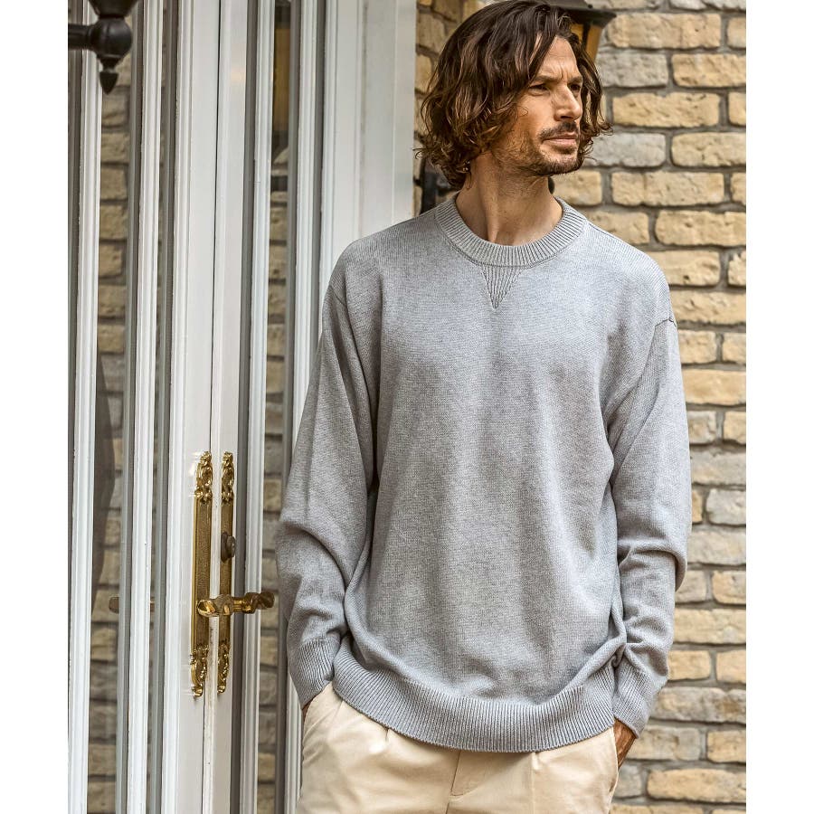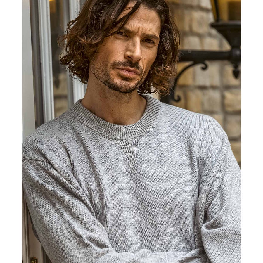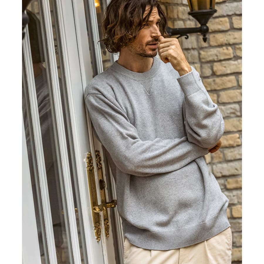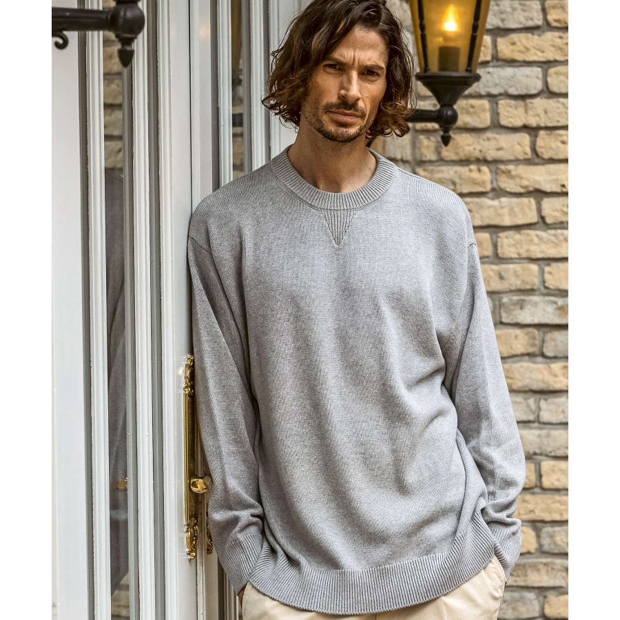 上質なコットンをベースに、贅沢にカシミヤをブレンドしたクルーネックニット。