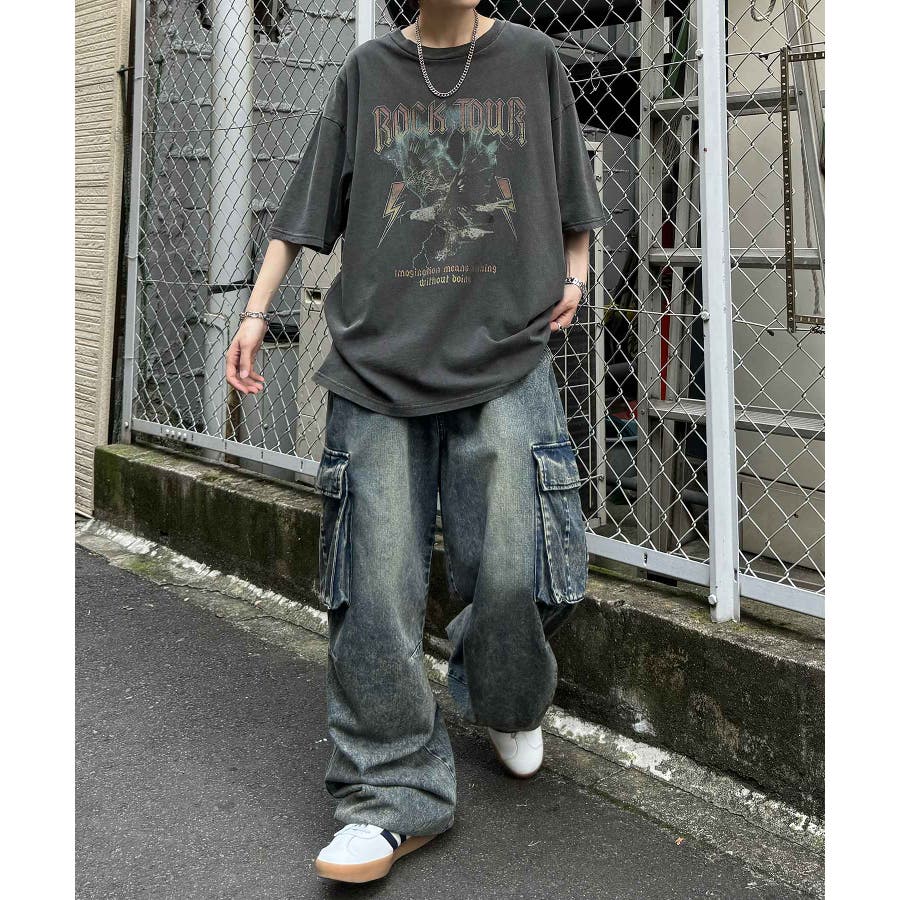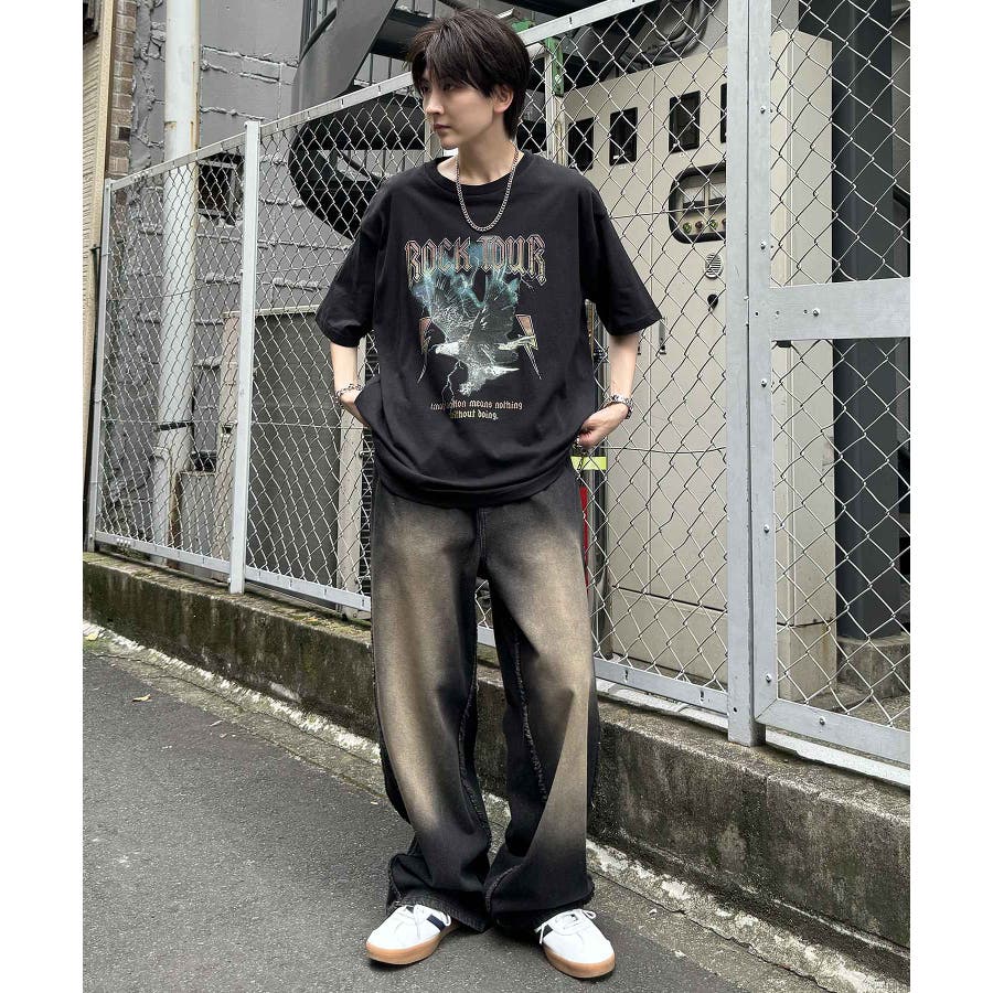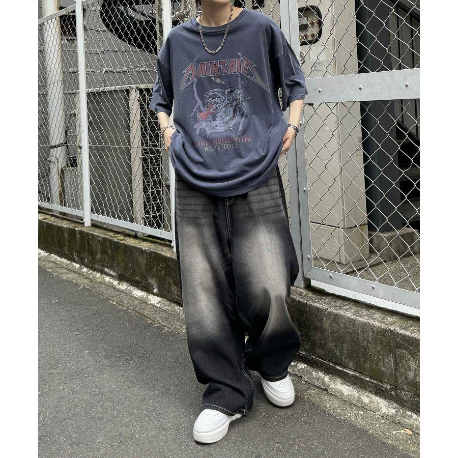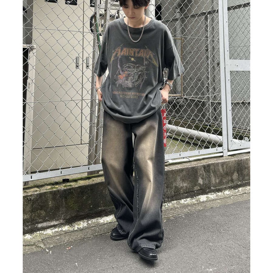 フリンジデニムやオーバーダイデニム、ダメージデニムを合わせたグランジカジュアルスタイルも。